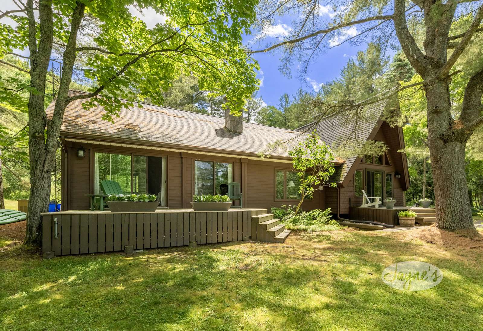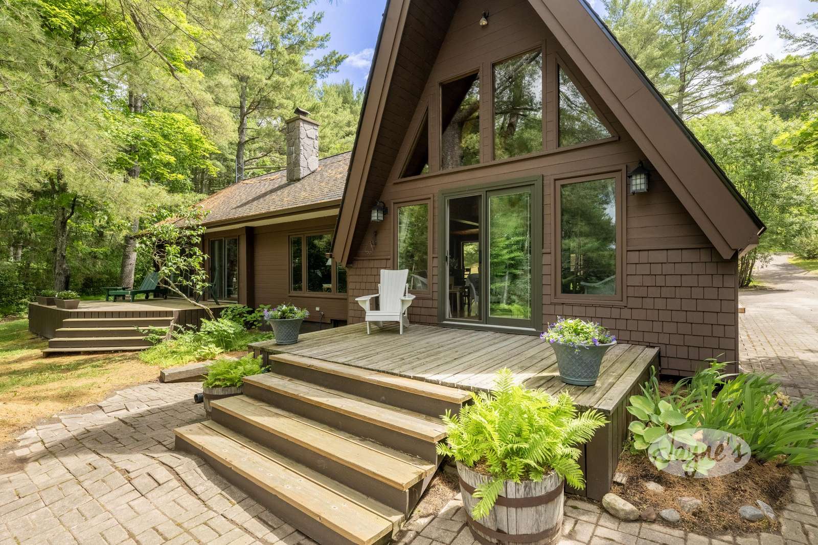AVONDALE - This 100β prime lakefront frontage contains a cozy cottage and bunkie. Privacy awaits as you enter this 1 acre plus property. Great for multi-generational families with level land, no stairs, and lots of land for children to play. Beach and shallow sandy-bottom water at shoreline. Main cottage with 3 bedrooms plus double bed loft and 2 large bathrooms. Multiple outdoor seating areas to enjoy Muskoka's natural environment, lovely weather, all day sun and legendary sunsets. This cottage boasts 4 decks, 3 around the main cottage, one with a dining table to seat 8 and 2 others off the front door and dining room all with Muskoka chairs, a gazebo with a bistro table and chairs overlooking the water and another sitting area at the waterβs edge. The is available docking for two boats (one under a canopy and the other on the side of the dock). There is a small beach at the waterβs edge and the depth at the end of the dock is still shallow. Sand bottom everywhere makes it a great place for kids to play and swim to the floating raft in Avon Bay.
