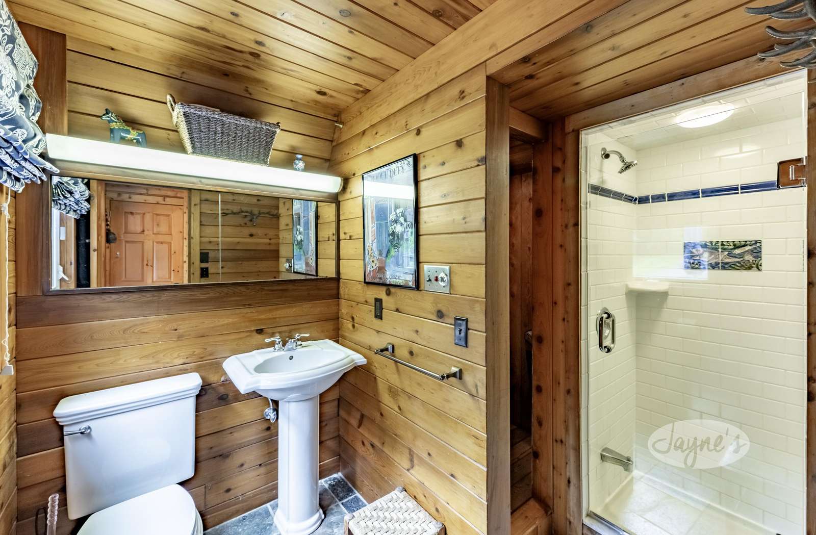 Bathroom 1 - 3-piece bath with standalone shower and sauna