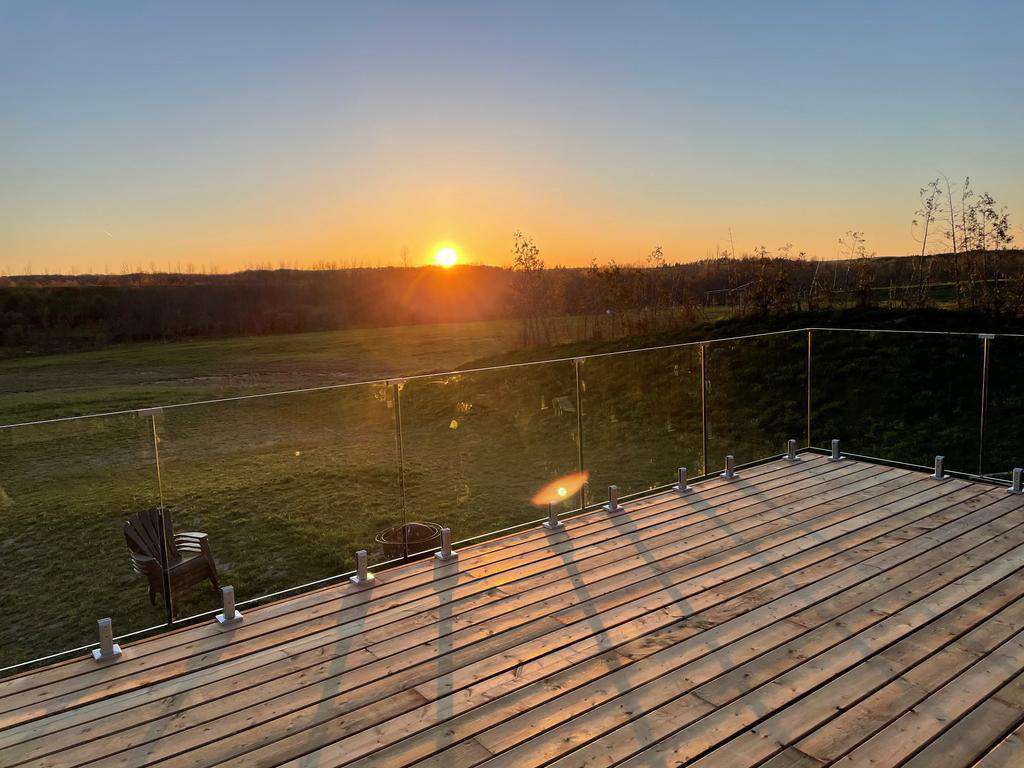 BEAVER VALLEY VIEWPOINT sits high and is 100 feet wide by 400 feet deep and looks onto the Niagara escarpment's rolling hills. It is unique in that it gets both full sunsets and sunrises. Enjoy the glorious outdoor space and star gazing from the brand new hot tub.