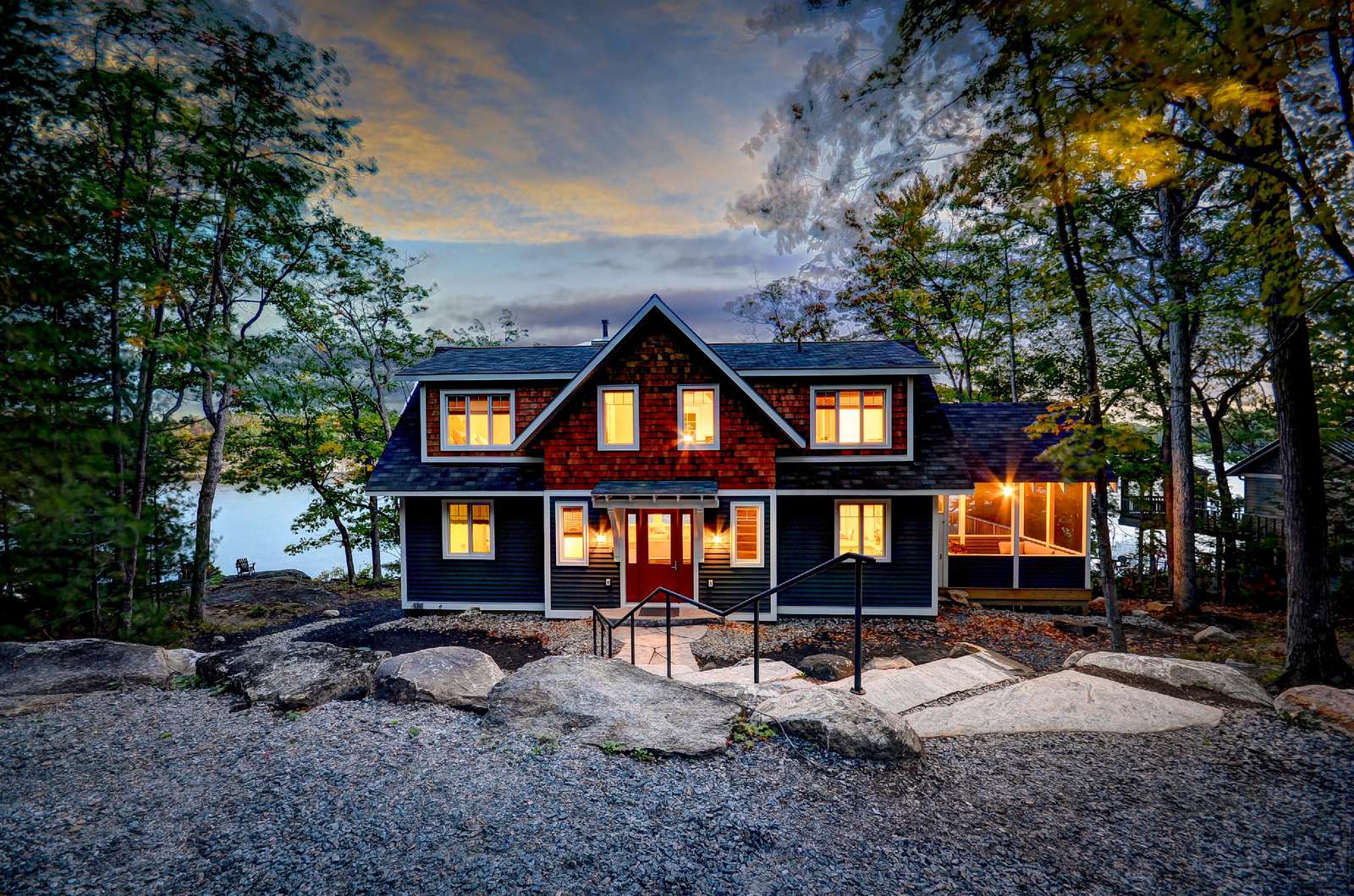 BELLA MUSKOKA is a new build! Walk into picturesque windows overlooking the bay with south views. Within your sight is a charming small island that looks so peaceful and perfectly Muskokan!