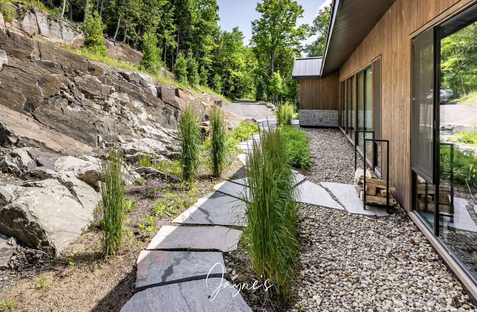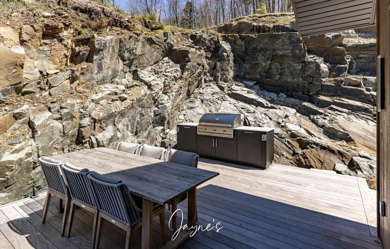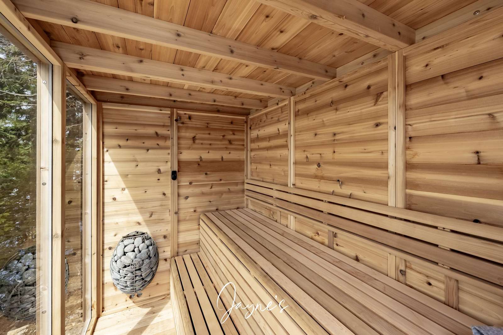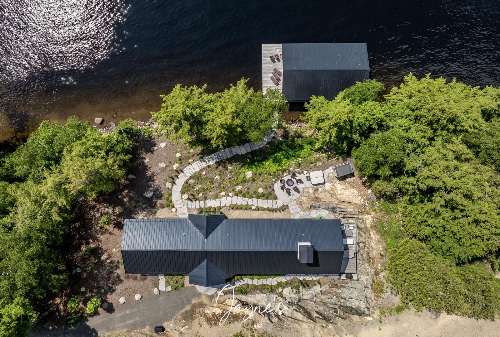 BIG AL'S SUNSET GETAWAY - Arrive to this brand new modern build set within dramatic rock cut amongst mature pines. Off the Muskoka Room, a spectacular outdoor kitchen is nestled in the rock. Featuring a BBQ, outdoor dining table and a lounge area with glass railings and stairs for easy access down to the lake. Down below, a hot tub has room for 8 beside an electric sauna and outdoor cold shower. Granite stone stairs cascade down to the waterfront where a spacious dock offers an afternoon of fun! The boathouse features 2 garage doors that reveal a seating and dining area. As sun the begins to set, lighting illuminates the entire property to mimic a moonlight effect. A fire pit adorned with Muskoka Chairs is the best spot to enjoy a s'more as stars begin to illuminate the sky!