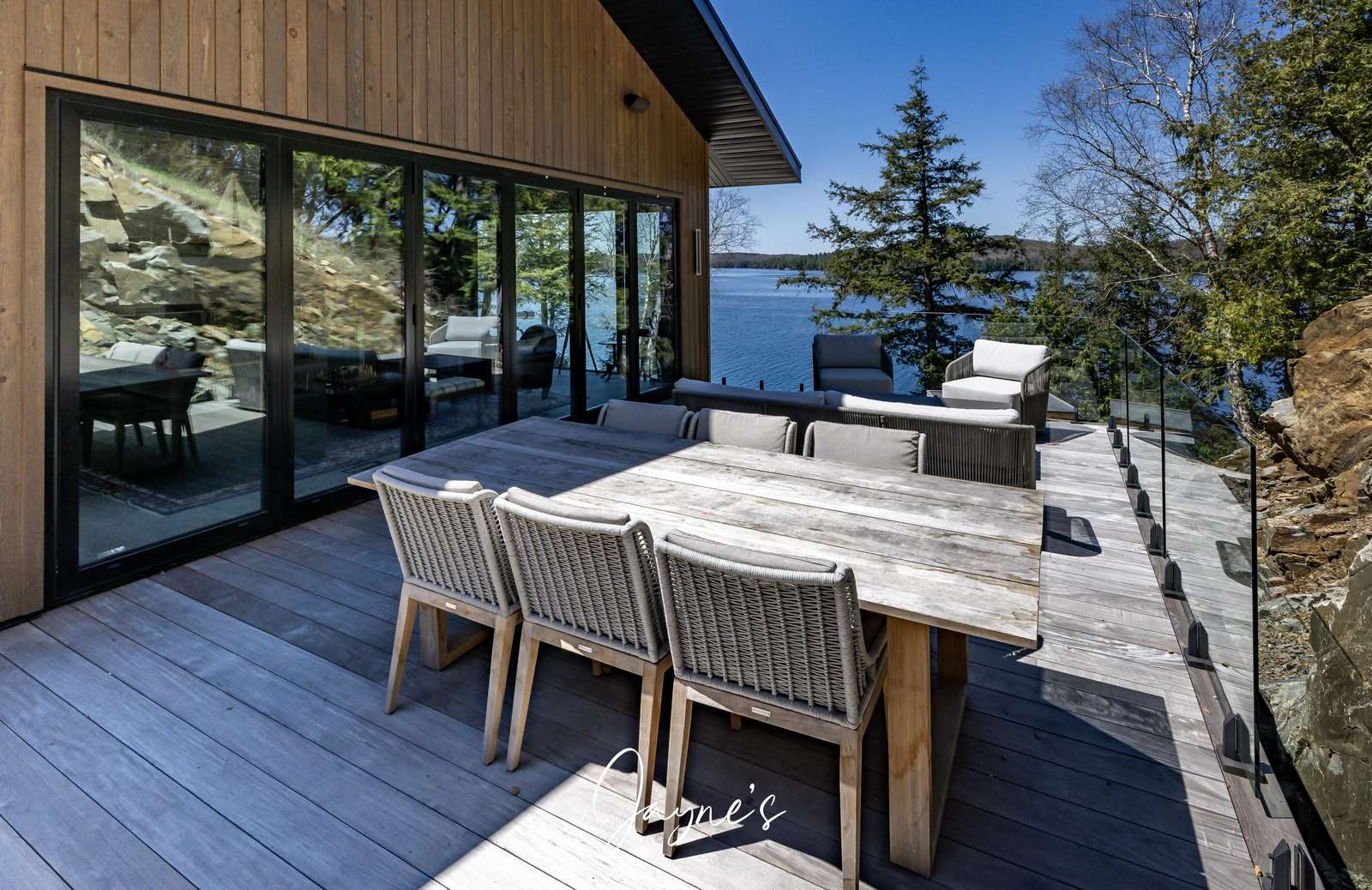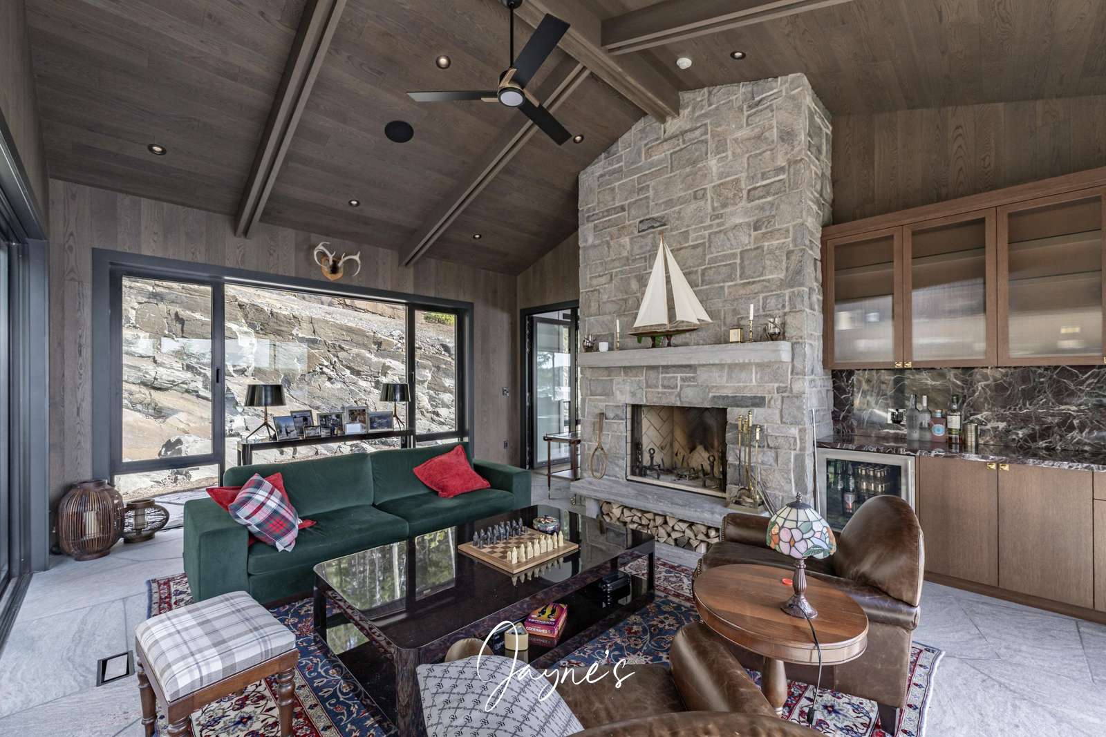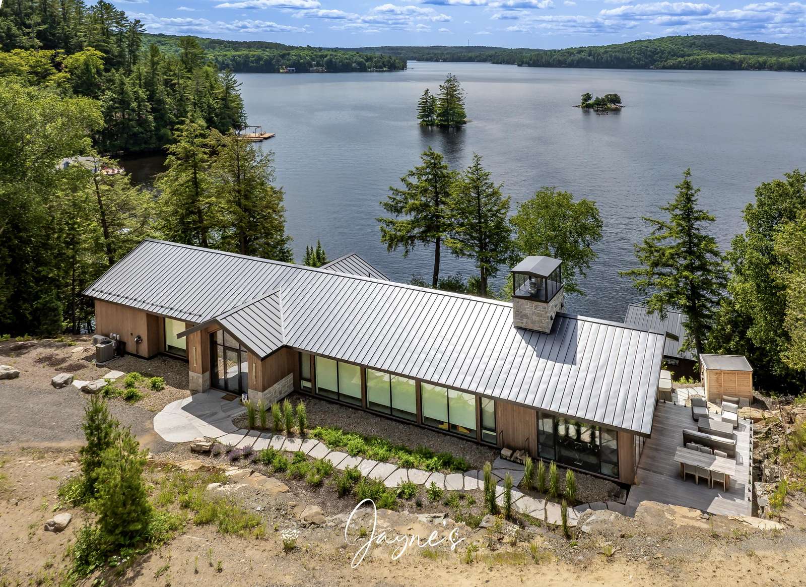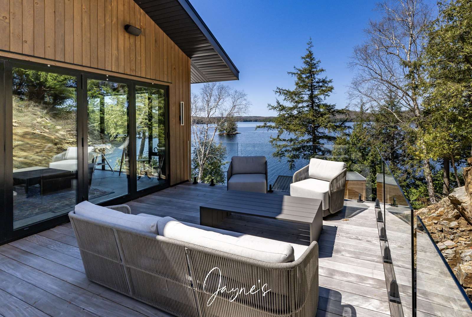 The most remarkable panoramic view on Lake of Bays! This 6000 sqft new build, boasts 5bed 5baths, South West exposure, a hot tub, sauna, outdoor shower, outdoor kitchen set amongst granite rock - and so much more!