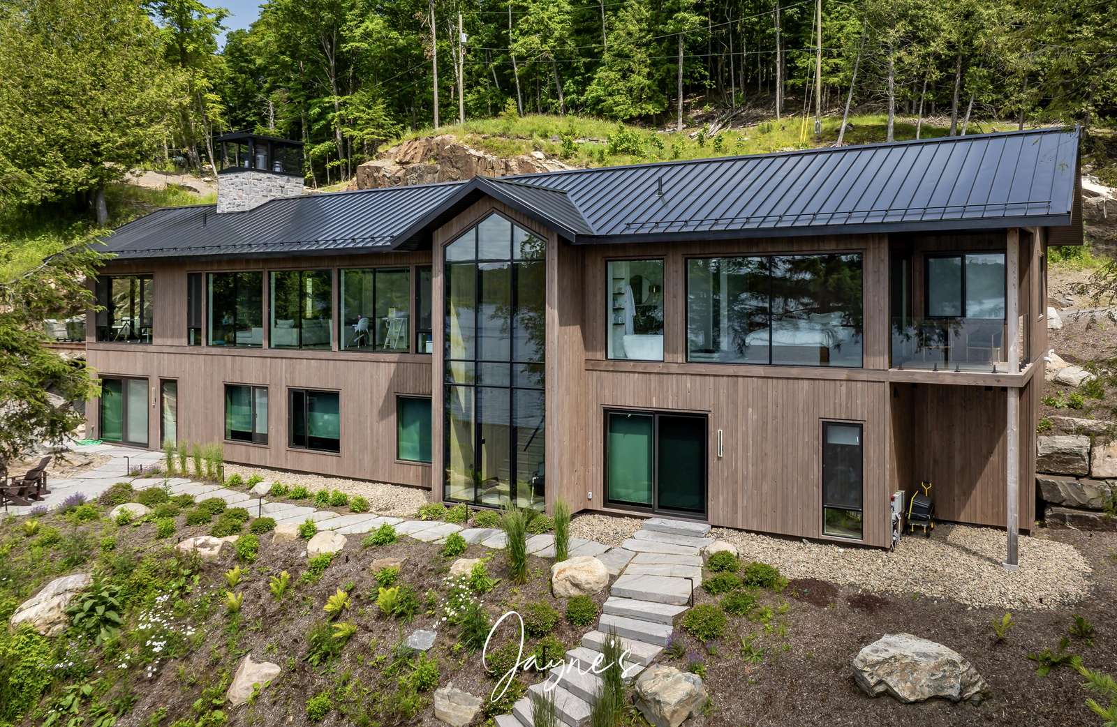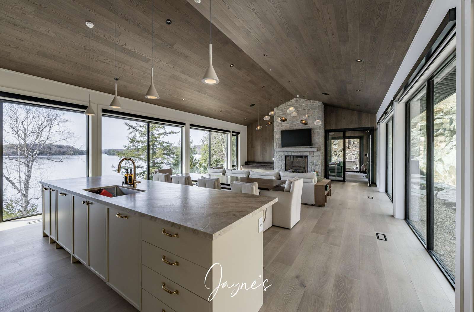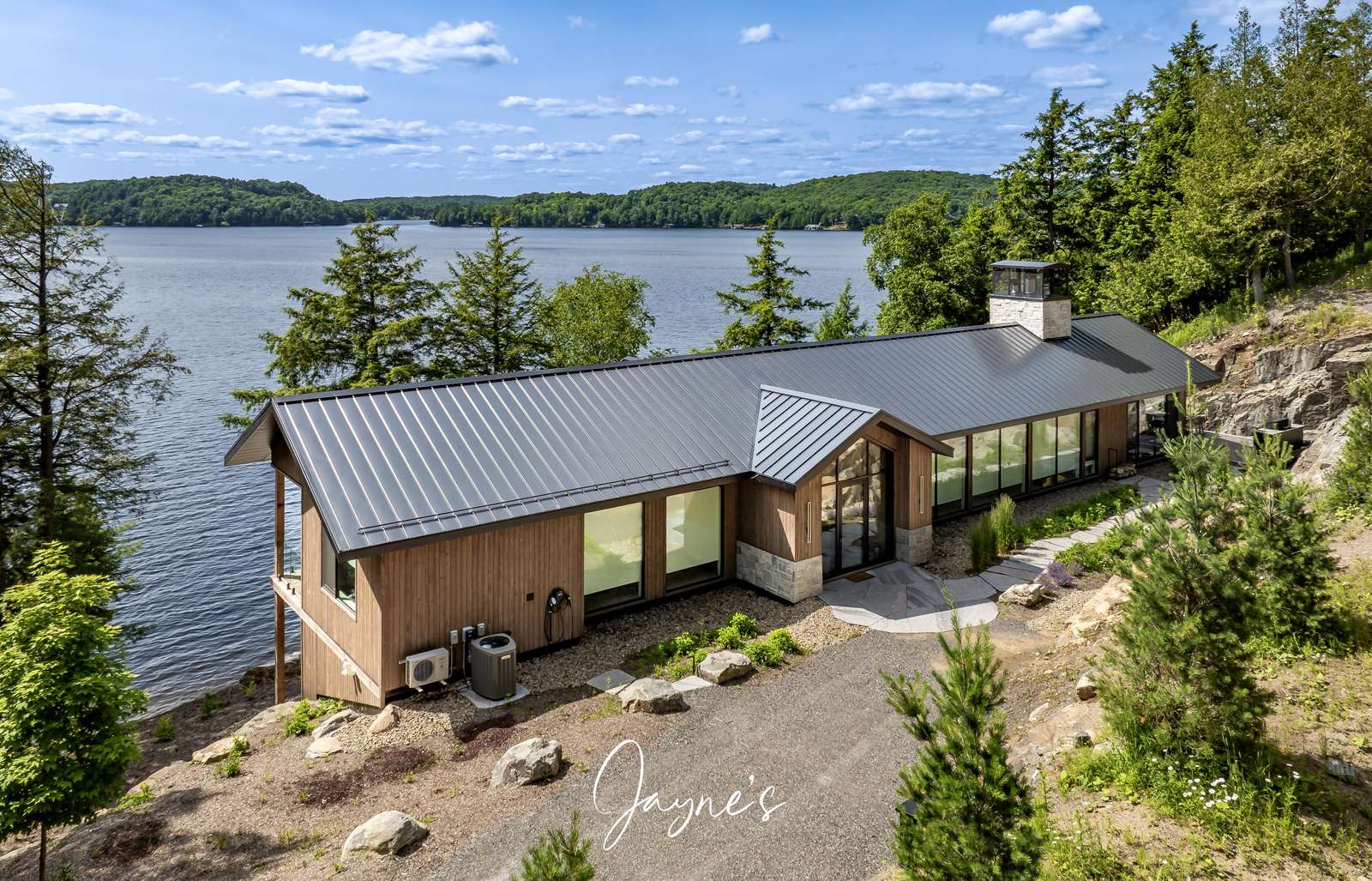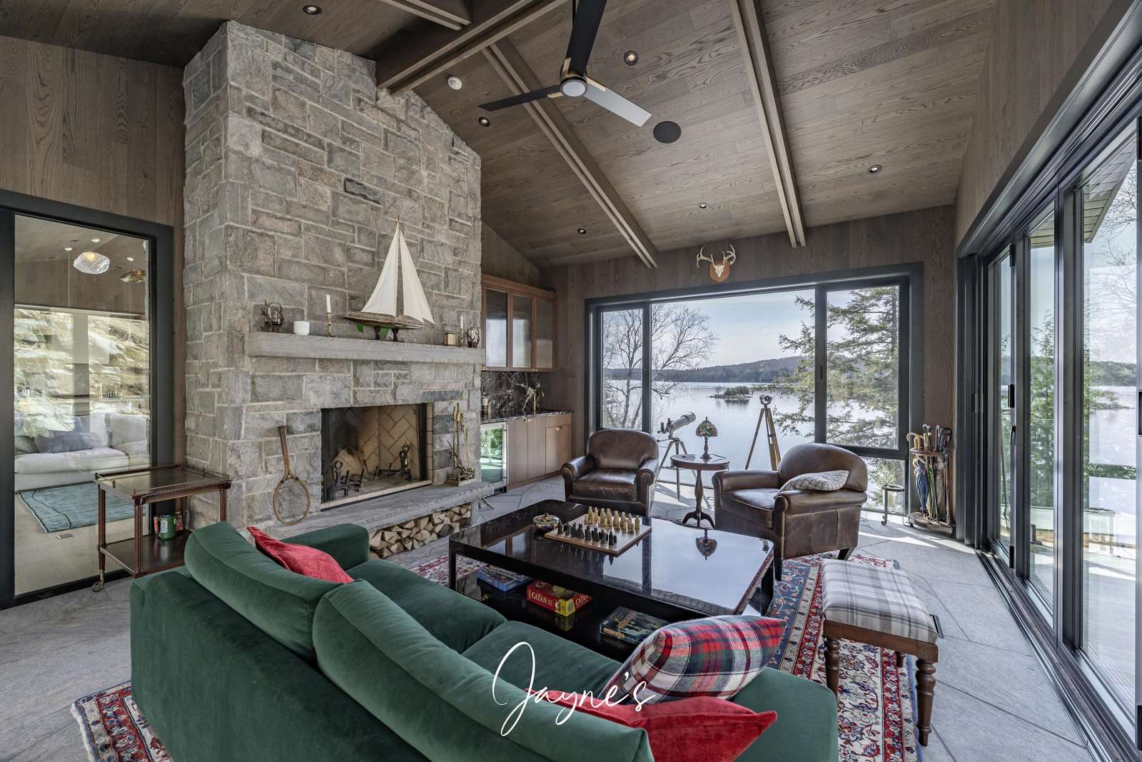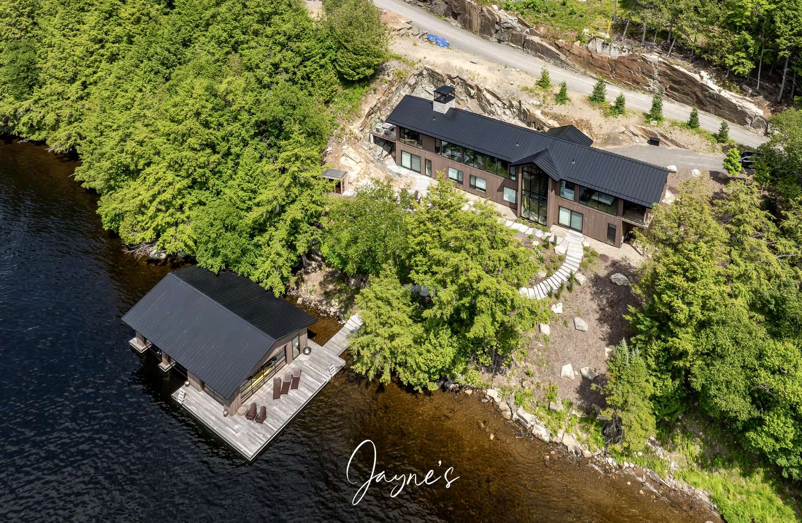 The most remarkable panoramic view on Lake of Bays! This 6000 sqft new build, boasts 5bed 5baths, South West exposure, a hot tub, sauna, outdoor shower, outdoor kitchen set amongst granite rock - and so much more!