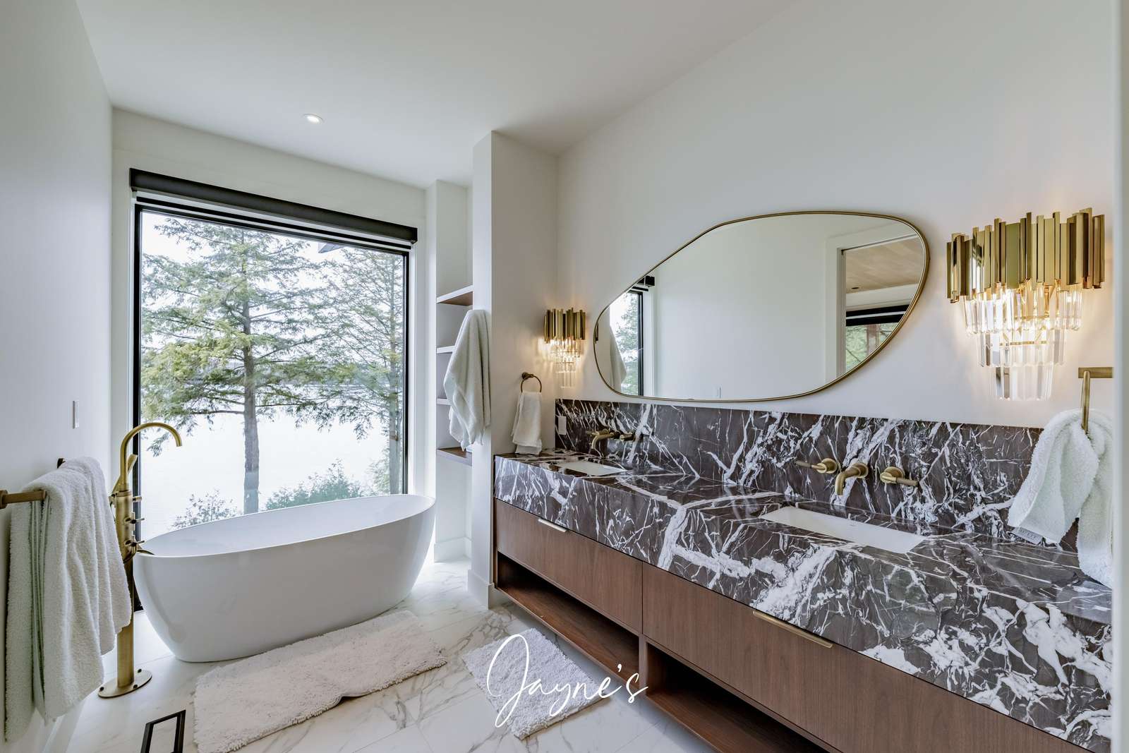 Bathroom 2 - 5-piece primary ensuite with double vanity, stand-alone shower, tub and water closet.