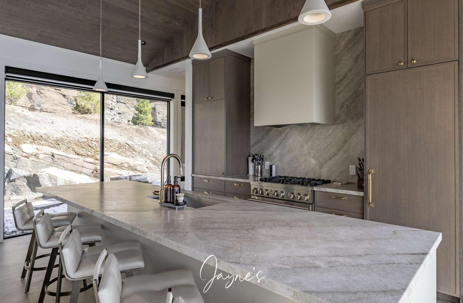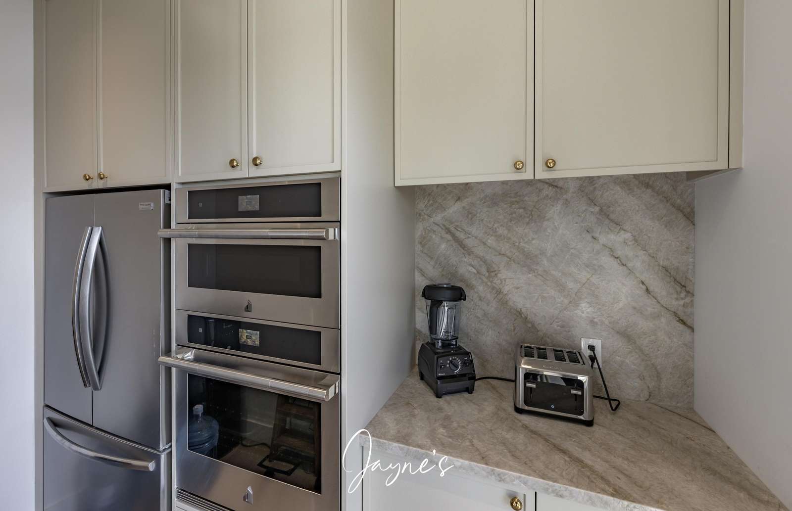 State-of-the-art kitchen boasting granite countertops and high-end appliances (6 burner gas top, 2 fridges, dishwasher, an ice machine and espresso machine). A beautiful island is adorned with 4 stools that offer a great vantage point of the view. Around the corner, a butlers pantry offers wall ovens, a microwave and a second fridge/freezer!