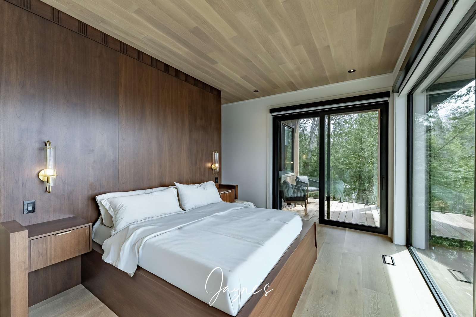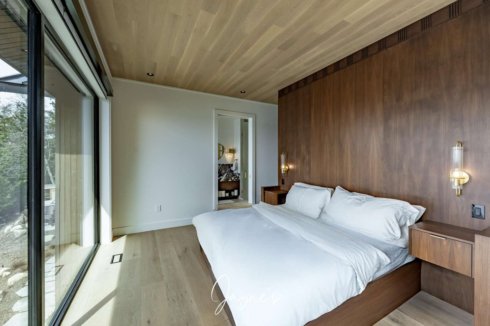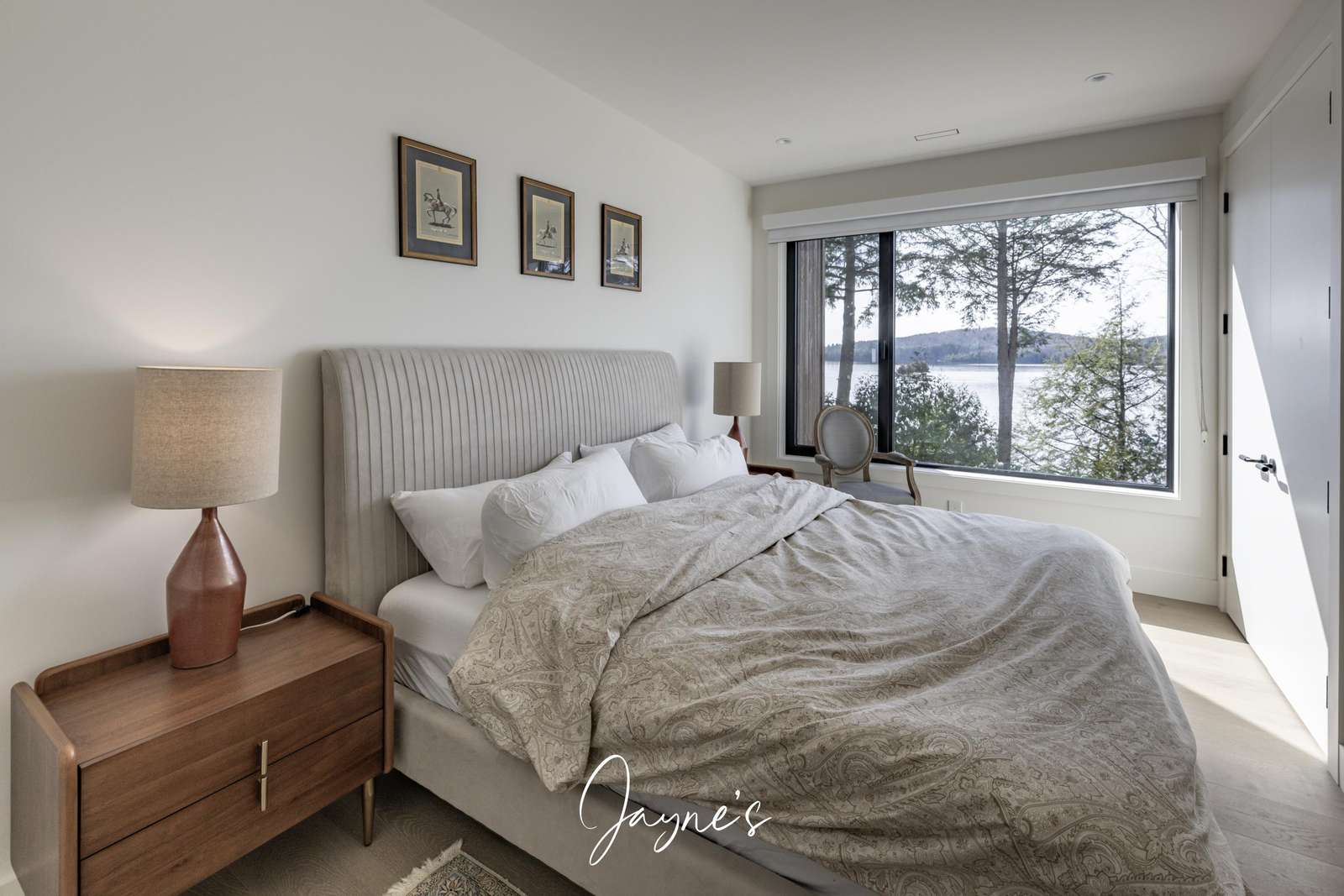 Bedroom 1 - King (Primary) with ensuite, walkout to deck and breathtaking view of the lake