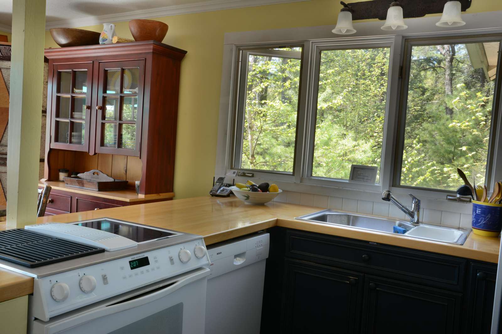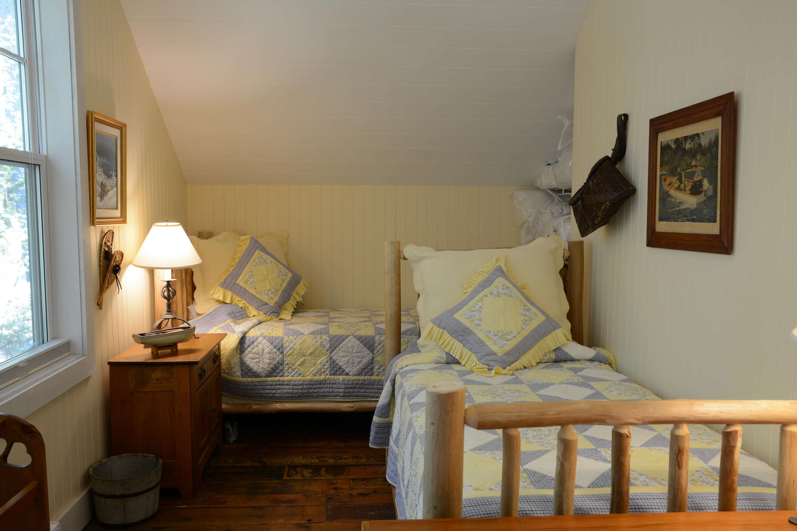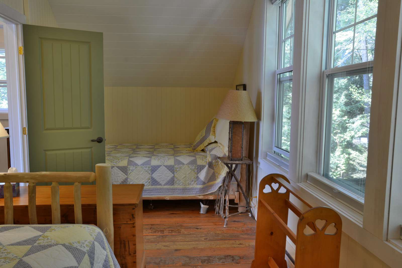The second level has two air-conditioned spacious bedrooms. The Primary has a Queen bed and walkout to a small deck - wake up to a beautiful view overlooking the water and, when the moon is out, go to bed with moonbeams reflecting off the lake. The Family Bedroom has 2 twin beds with matching Provence-style quilts. The upper bathroom has a shower. There is also a laundry closet (washer and dryer) on the 2nd floor.
