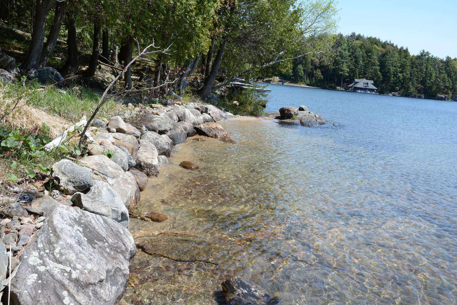 South-west views of gorgeous section of Lake Joseph. Beautifully-maintained and decorated. A bit of a French Provence-type touch, with an elegant lower suite built into the rock. Shallow sandy swimming plus deeper water for boating. Has it all!