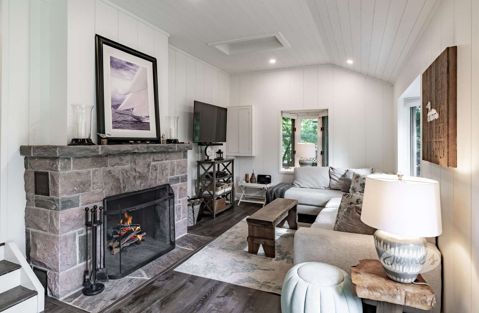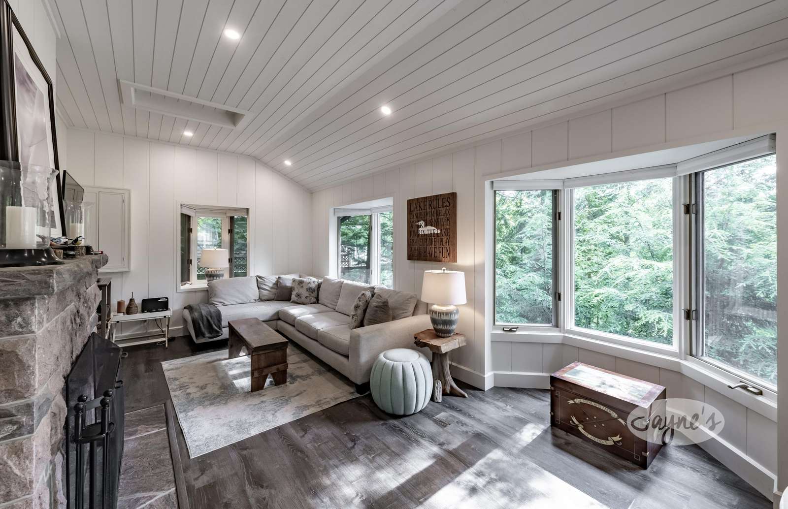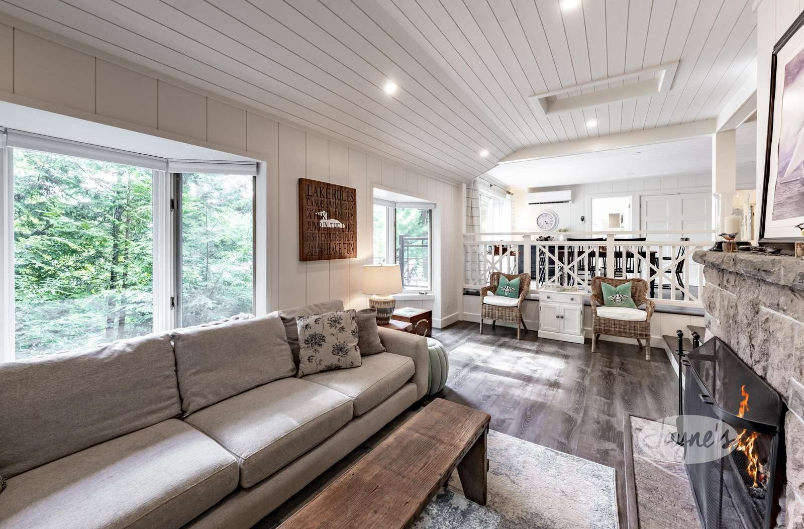 Enjoy the outdoors at Bird's Nest! Recently renovated in 2024, this bright & clean 4 bdrm cottage on Lake Joe is the full package! Bird's Nest features an amazing glass railing deck, boat port + bunkie ! All Day Sun! A/C! Fire pit!