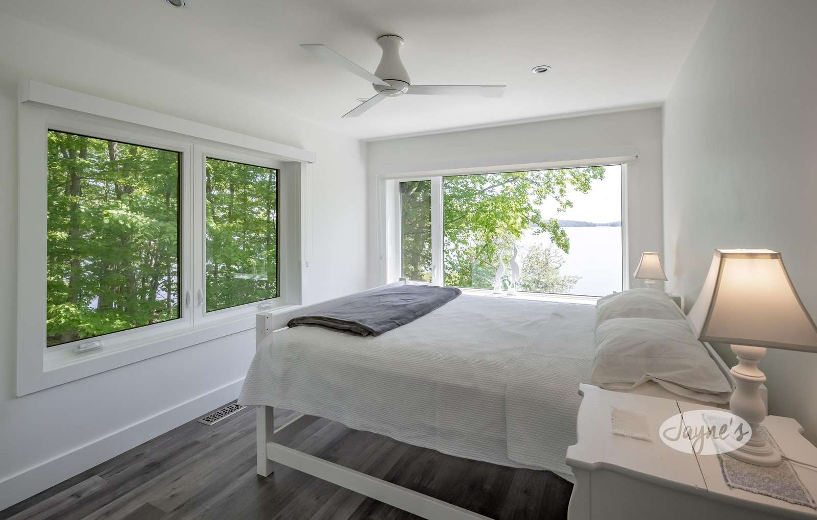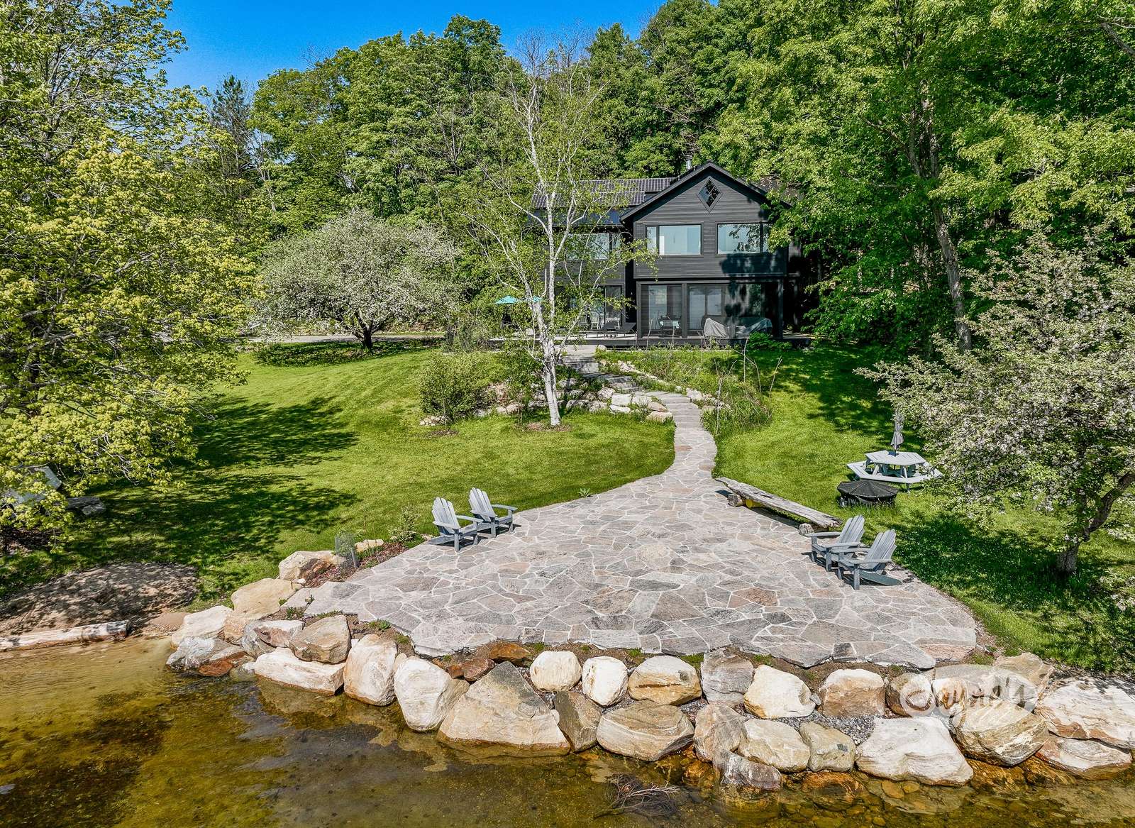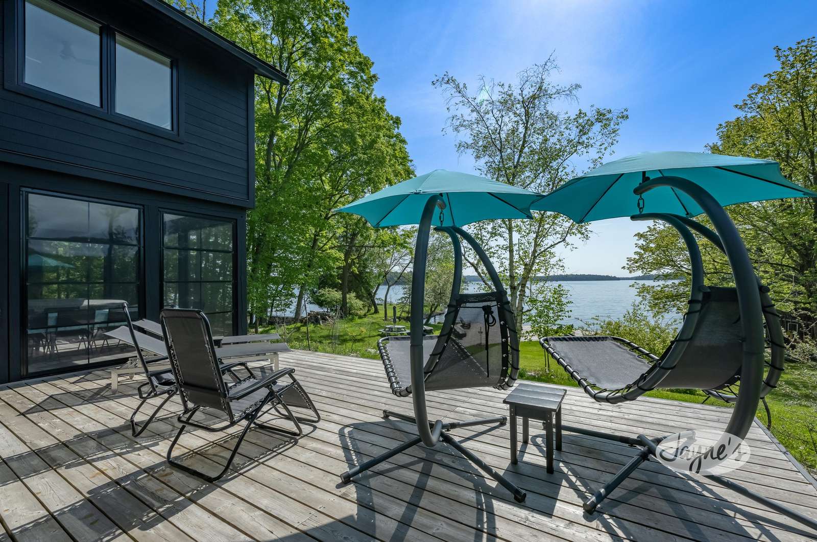BLACK BIRCH LODGE, spend every second of your time at Black Birch Lodge by the beach! Beautiful views of Lake Rosseau. This brand new waterfront property boasts a shallow sandy beach within a few short steps of the cottage. Enjoy afternoons on the cottage deck equipped with two hanging hammock chairs or on the stone patio area near the waterfront. With ample level land near the water, Black Birch Lodge offers the perfect space for summer activities!