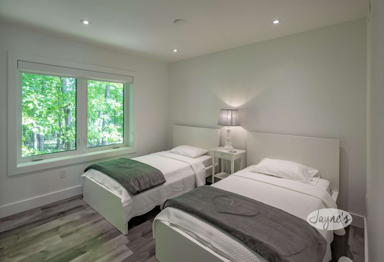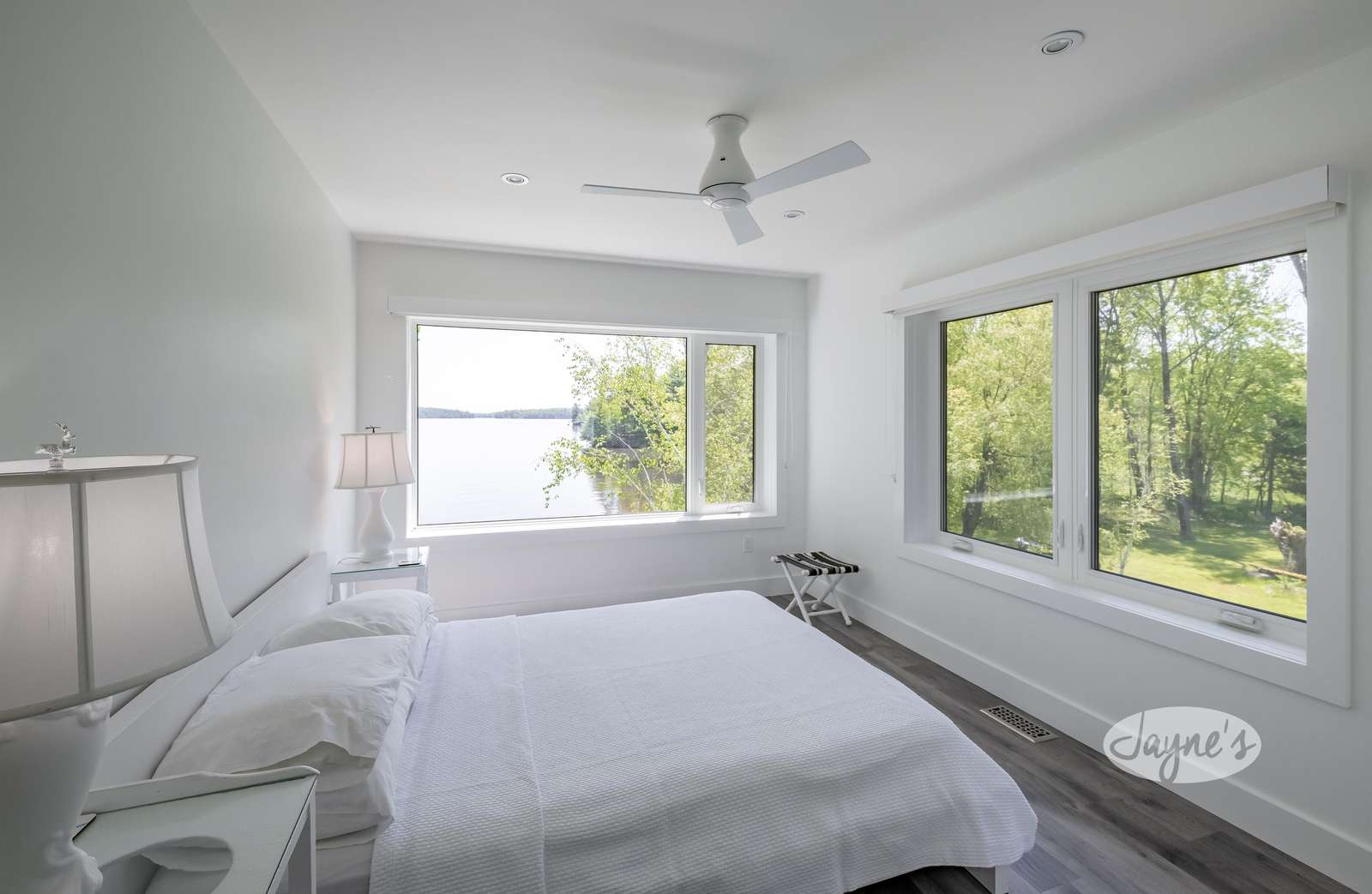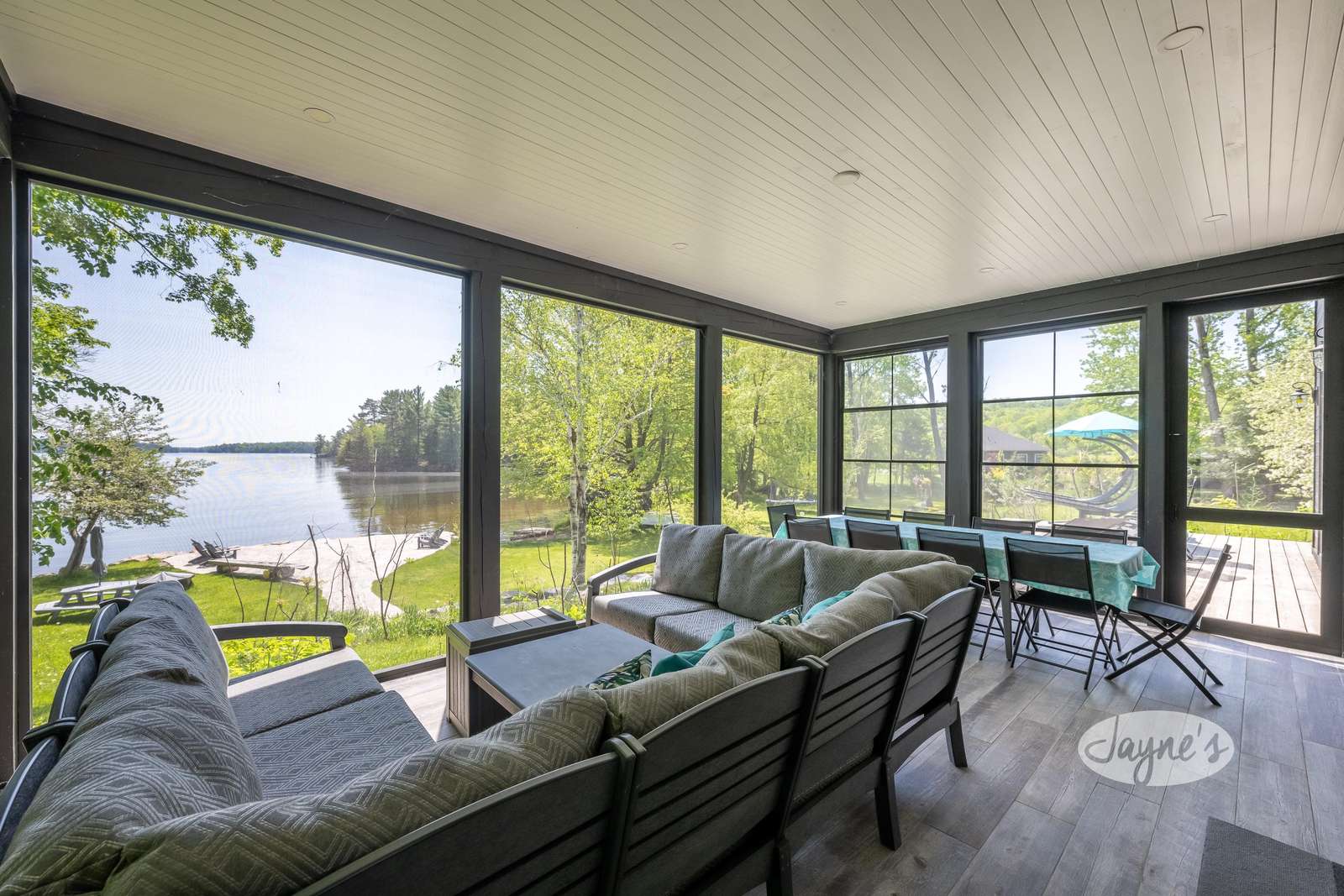 BLACK BIRCH LODGE, spend every second of your time at Black Birch Lodge by the beach! Beautiful views of Lake Rosseau. This brand new waterfront property boasts a shallow sandy beach within a few short steps of the cottage. Enjoy afternoons on the cottage deck equipped with two hanging hammock chairs or on the stone patio area near the waterfront. With ample level land near the water, Black Birch Lodge offers the perfect space for summer activities!