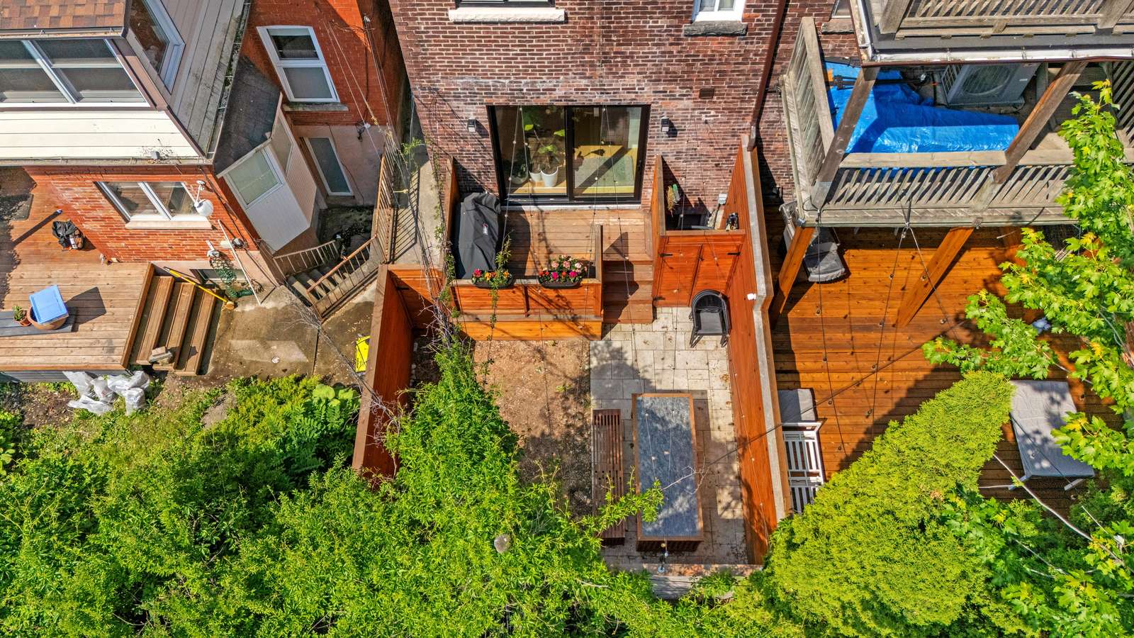 BMO PIED A TERRE This modern residence seamlessly integrates sleek design with the warmth of brick accents, creating an inviting atmosphere. Upon entering, one is greeted by a spacious living area enhanced by a contemporary fireplace and a large television. Adjacent to this space lies the chef's kitchen, which boasts ample room for culinary endeavors and features direct access to the backyard. This outdoor oasis is thoughtfully designed for leisure and social gatherings, complete with dedicated entertainment space and a barbecue area. Descending to the basement reveals a generous recreation room, perfect for both unwinding and children's play. The second floor accommodates three well-proportioned bedrooms with the third, meticulously designed to be used as dual office/sleeping space. Remarkably, the entire third floor is devoted to a luxurious primary suite, complete with a spa-like ambiance, featuring a steam shower and a sumptuous soaker tubβensuring a retreat for relaxation and rejuvenation.