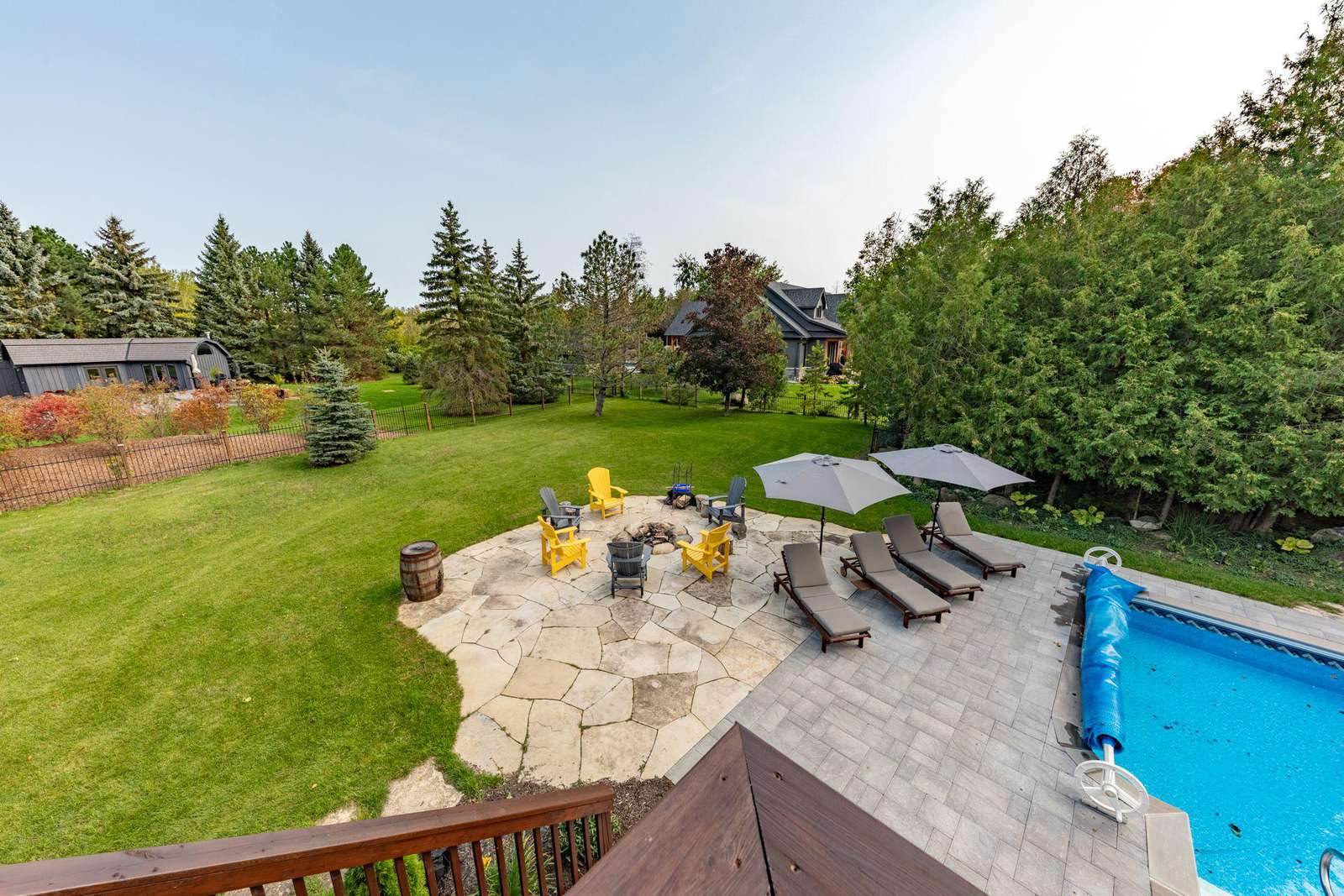 Located near Collingwood, Buckingham Cabin is a dreamy getaway with a pool, hot tub & coach house. Minutes to Blue Mountain & Osler Bluff Ski Club, it boasts a breathtaking great room with soaring cathedral ceilings and large wood burning fireplace.