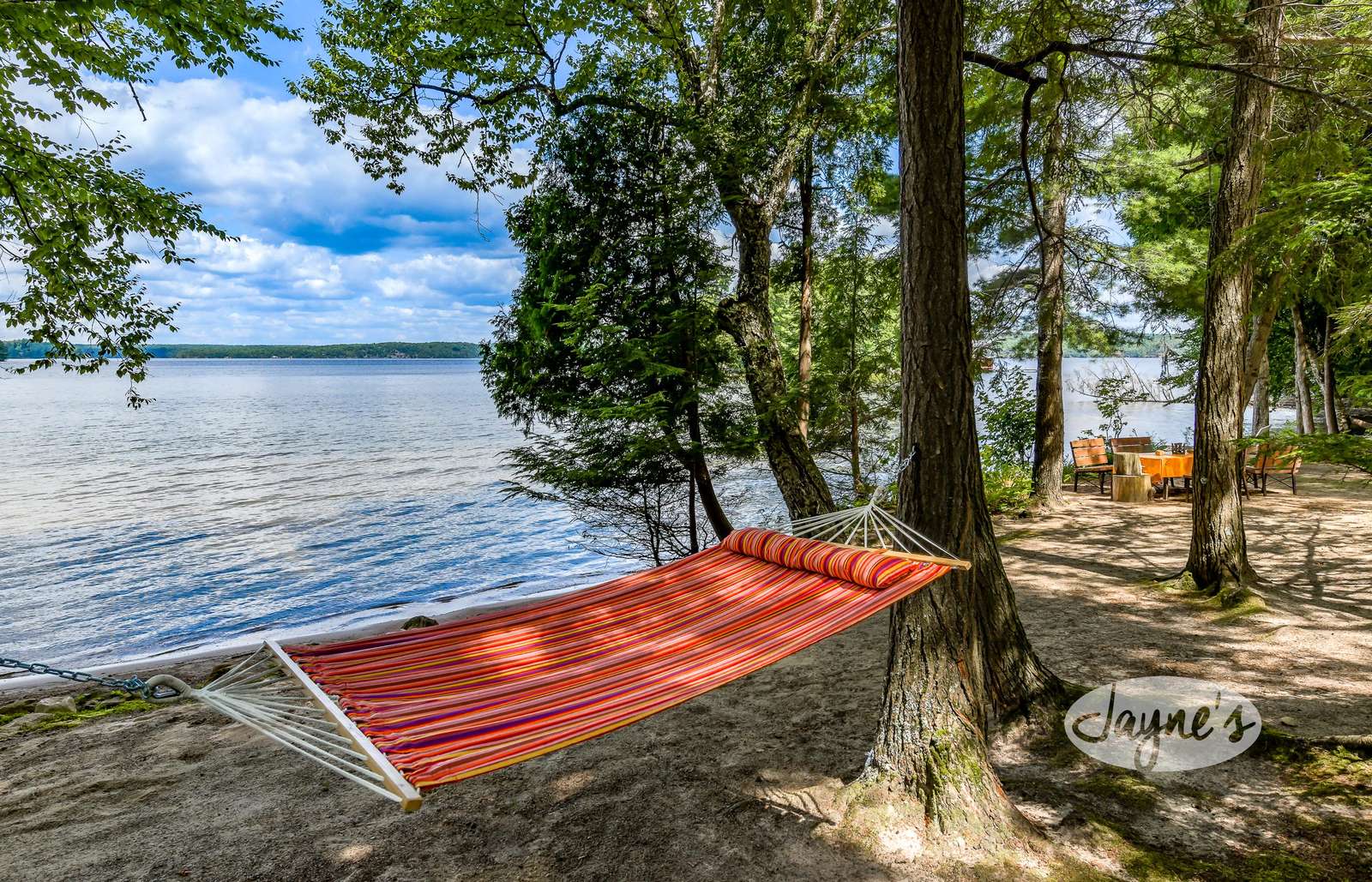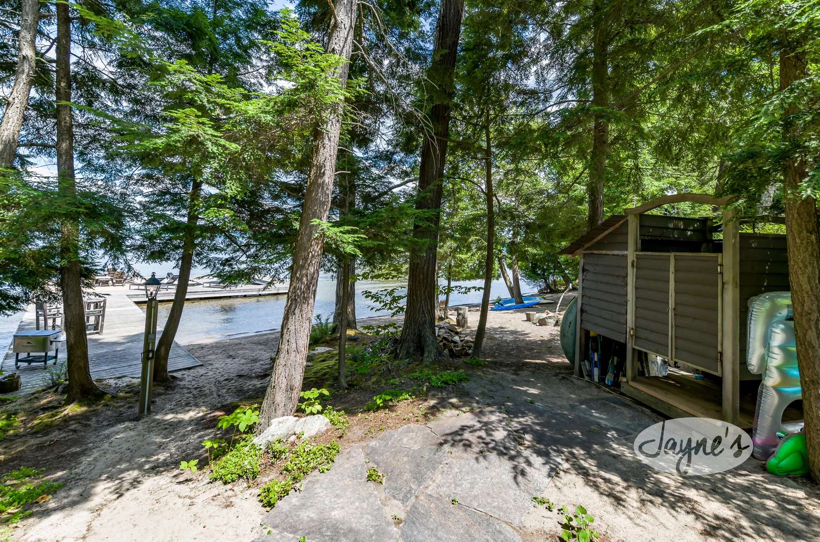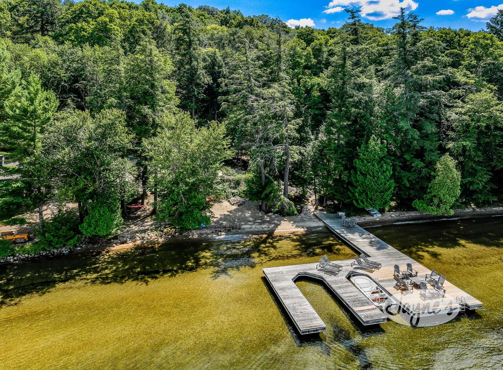 CAMP MUSKOKA, where you will have all-round privacy, as the property is surrounded by trees on either side with no neighbours in view. The property includes a sandy beach and 400 feet of frontage. The northern exposure ensures an excellent view of sunrises and sunsets. The cottage is also equipped with a private beach volleyball court as well as huge open docks with plenty of seating and lounging.