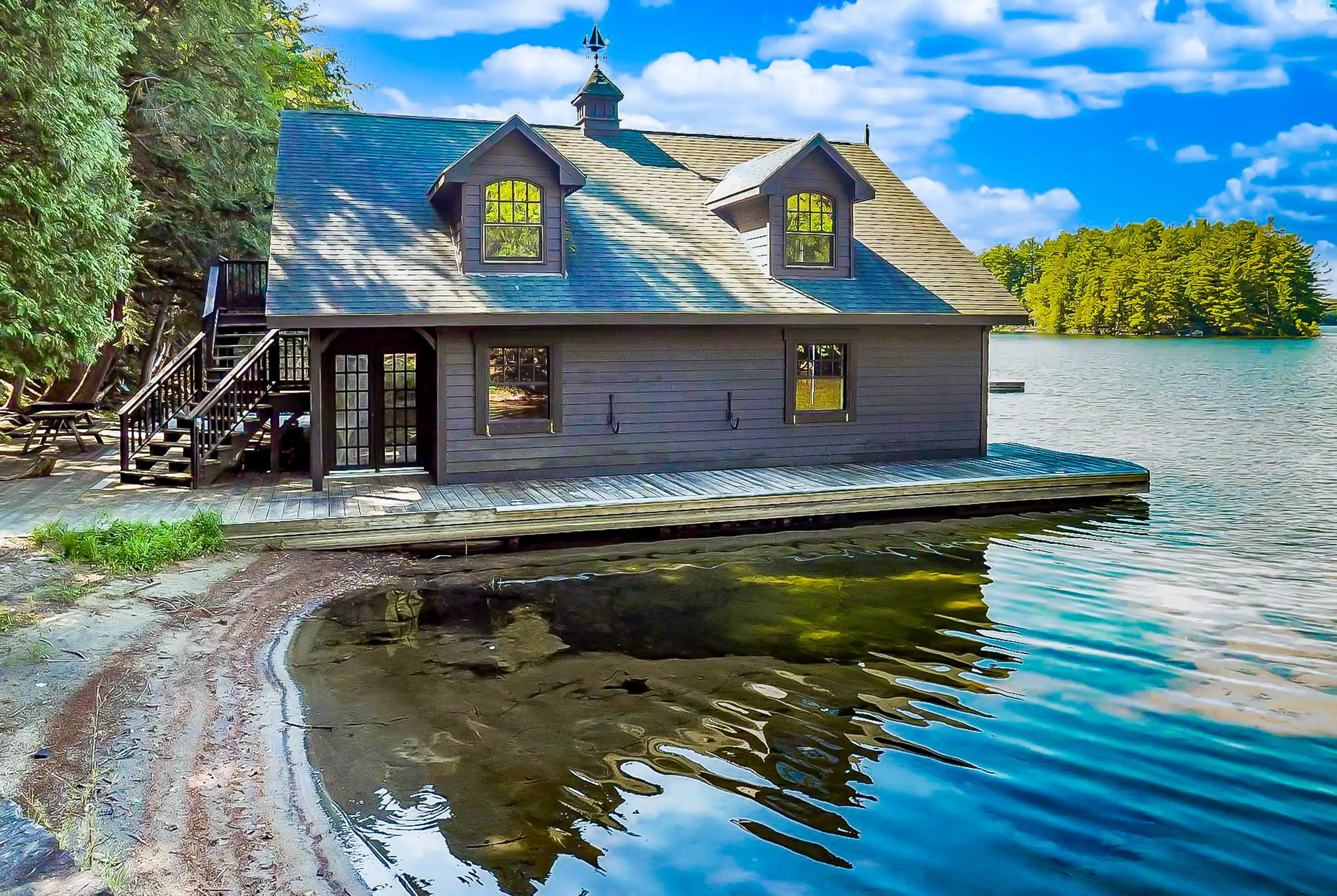 Recently updated 6 bdrm, 3 bath main cottage + boathouse off the private shores of Little Lake Joe. Sunsets, AC, hot tub, sand beach, boathouse accommodations, floating dock + lots of water toys! Something for everyone at this Lake Joseph beauty!
