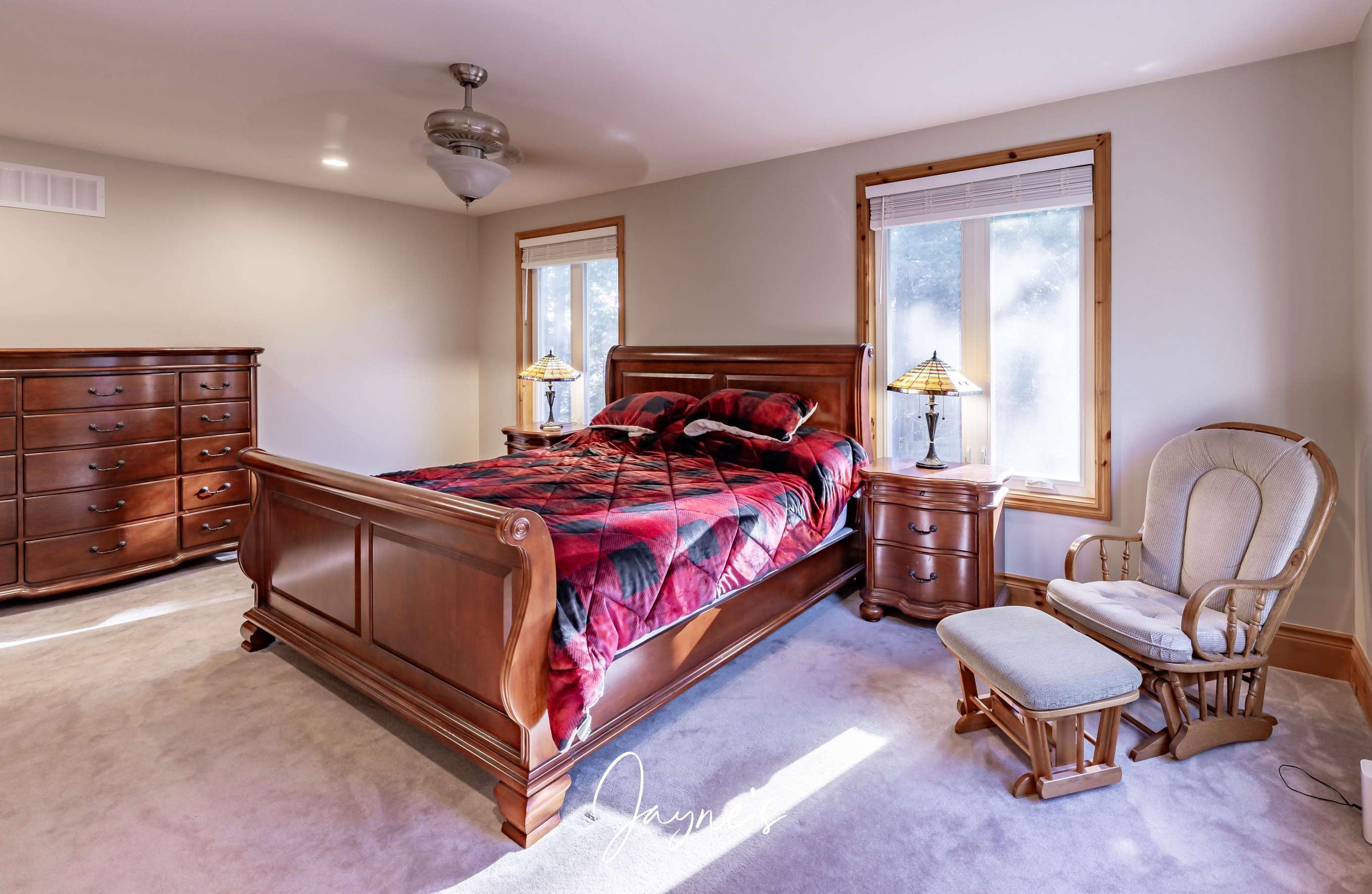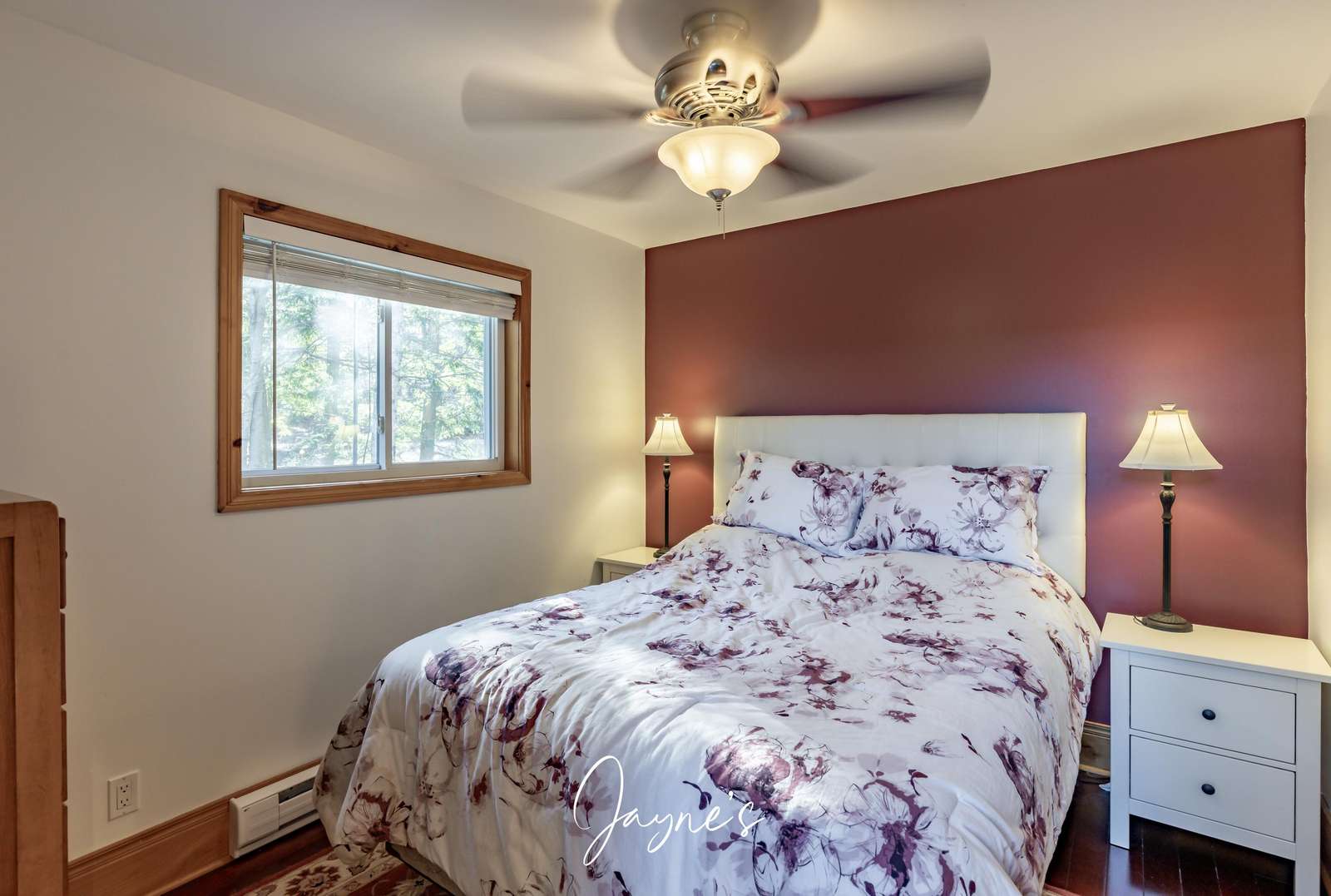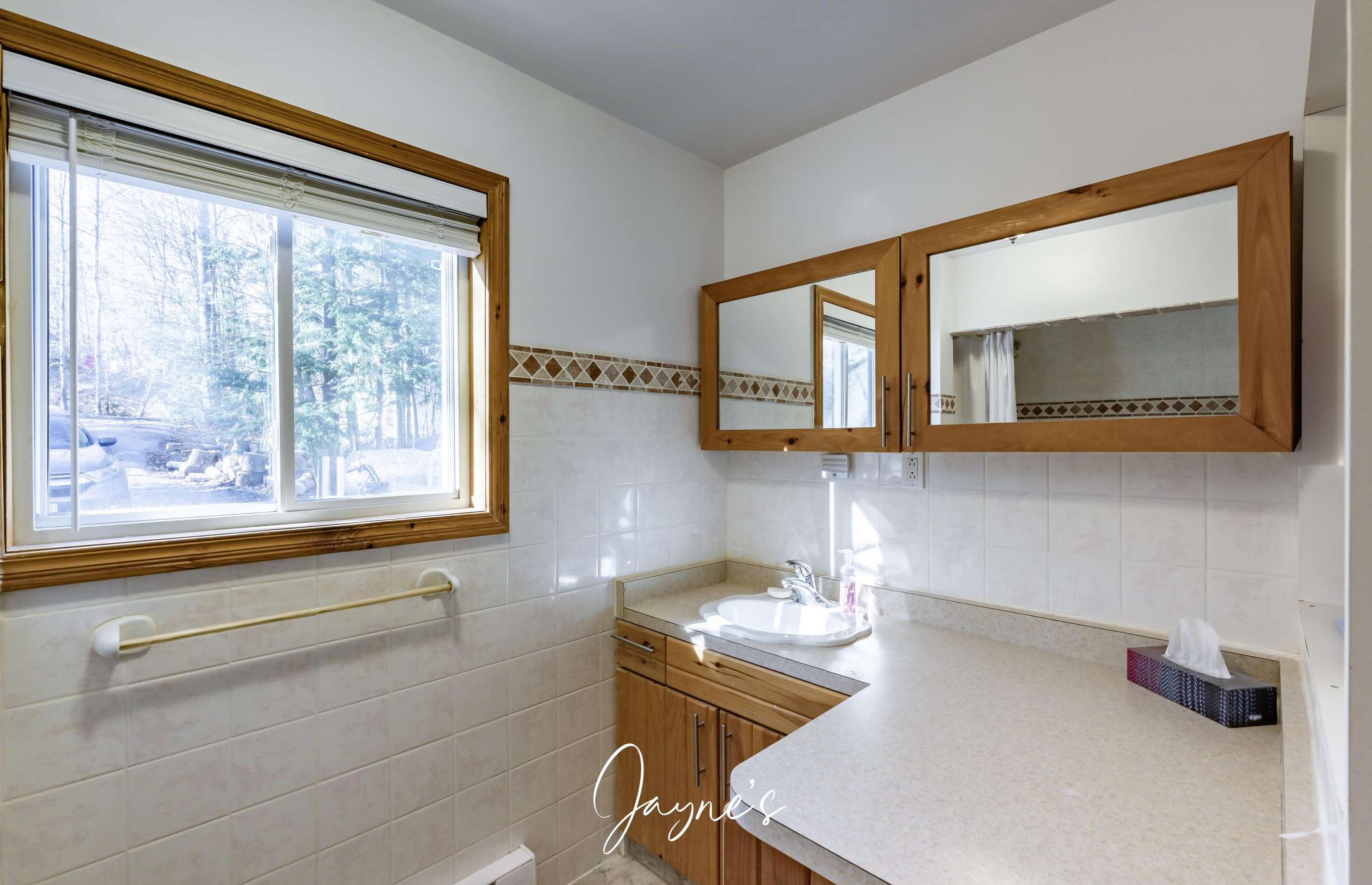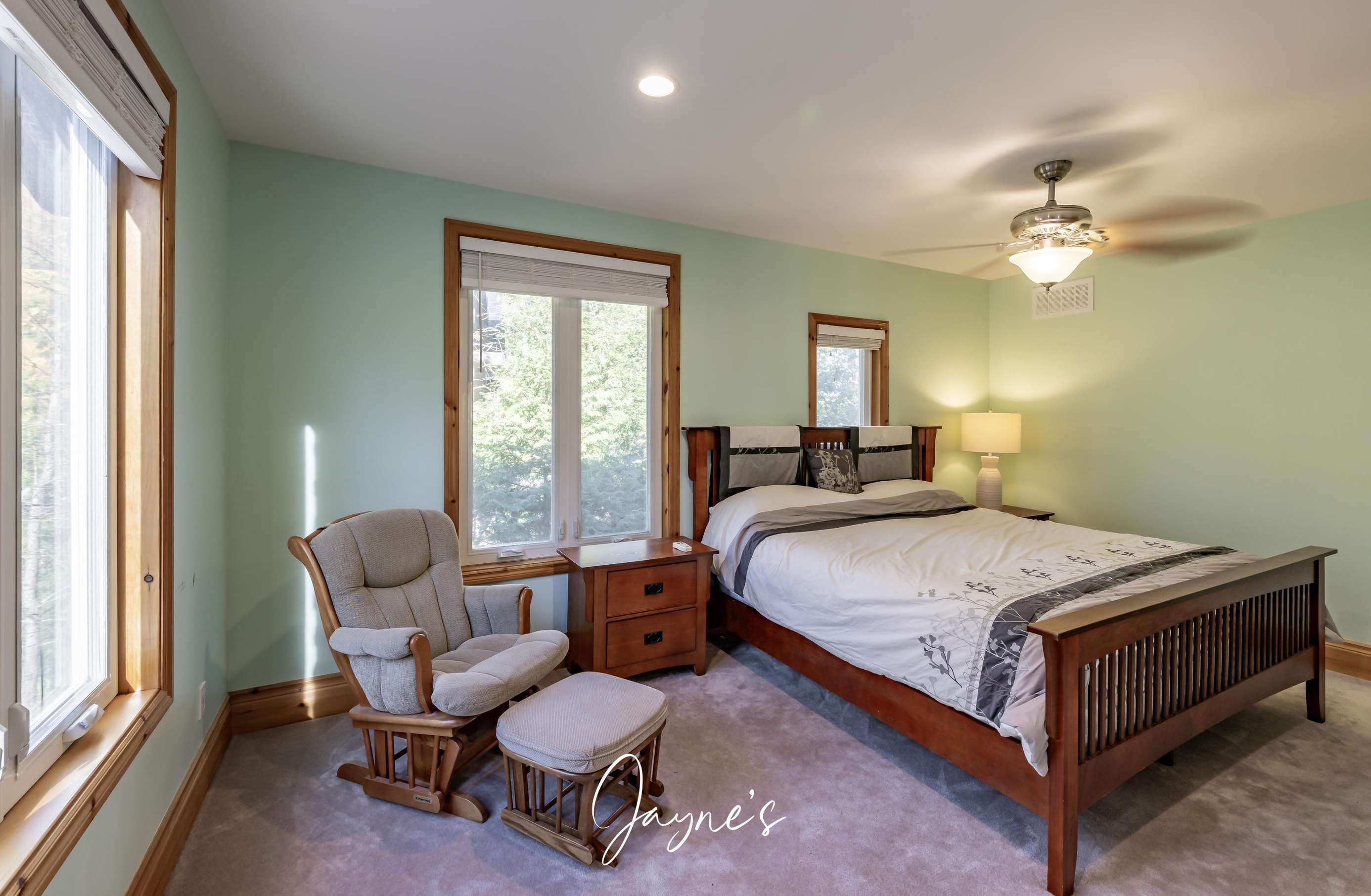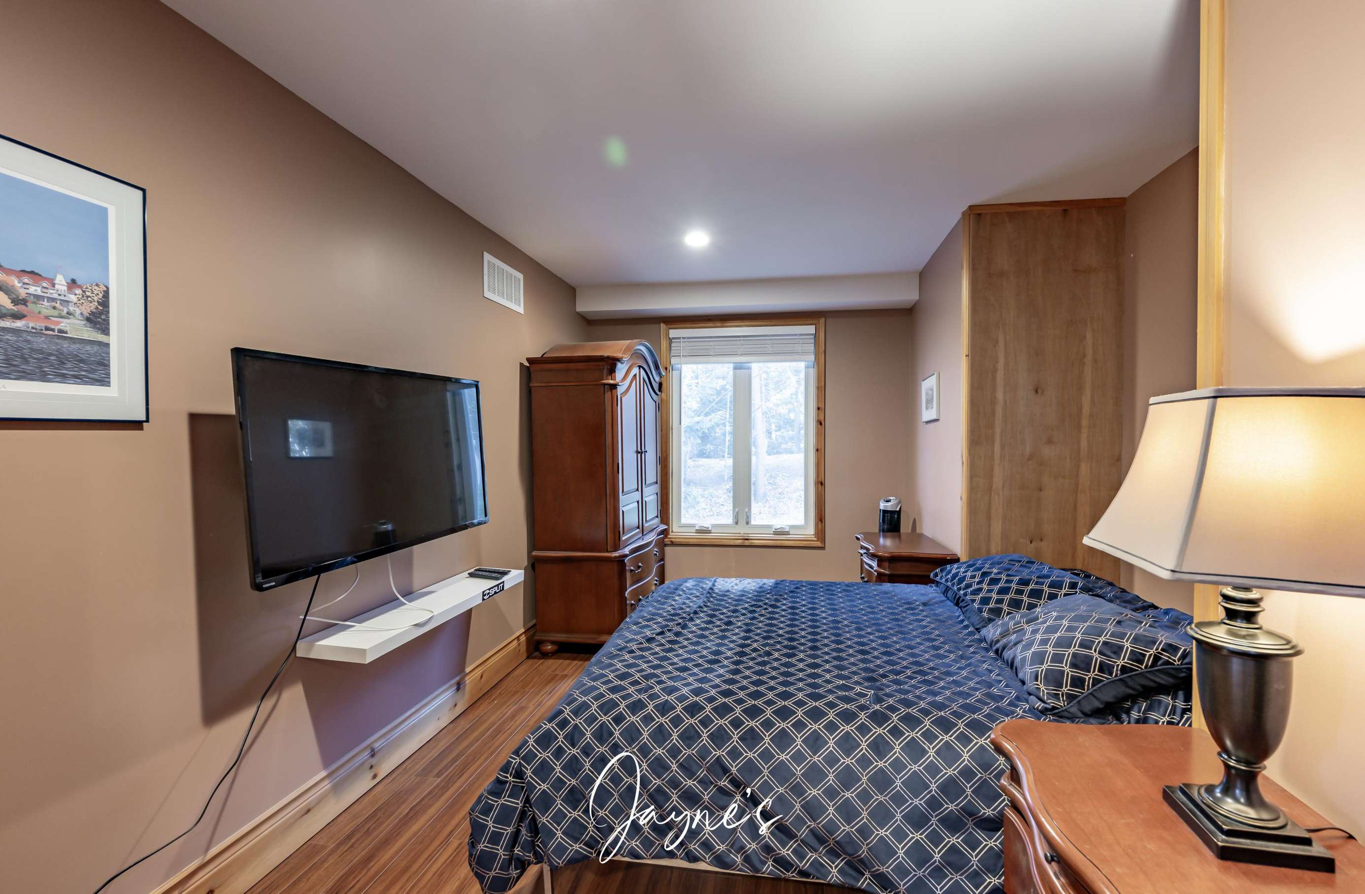 COMFORT ZONE - This exquisite four-bedroom, three-bathroom main cottage features a thoughtfully designed open concept layout that seamlessly integrates living spaces while enhancing the sense of spaciousness. The inviting loft area serves as an ideal retreat for relaxation or recreational activities. An expansive upper deck provides breathtaking views, while the charming patio is complemented by a luxurious hot tub, perfect for unwinding after a day of outdoor adventures. A brief stroll leads to the waterfront, where residents can indulge in various water sports and utilize the convenient boat lift for docking. Additionally, the two-storey bunkie offers a multifunctional space, complete with a kitchenette, a cozy living area equipped with a fireplace, a bedroom, and a loft area, making it an excellent accommodation for guests. For further enjoyment, a well-appointed rec room resides below, ensuring ample opportunities for entertainment and leisure.