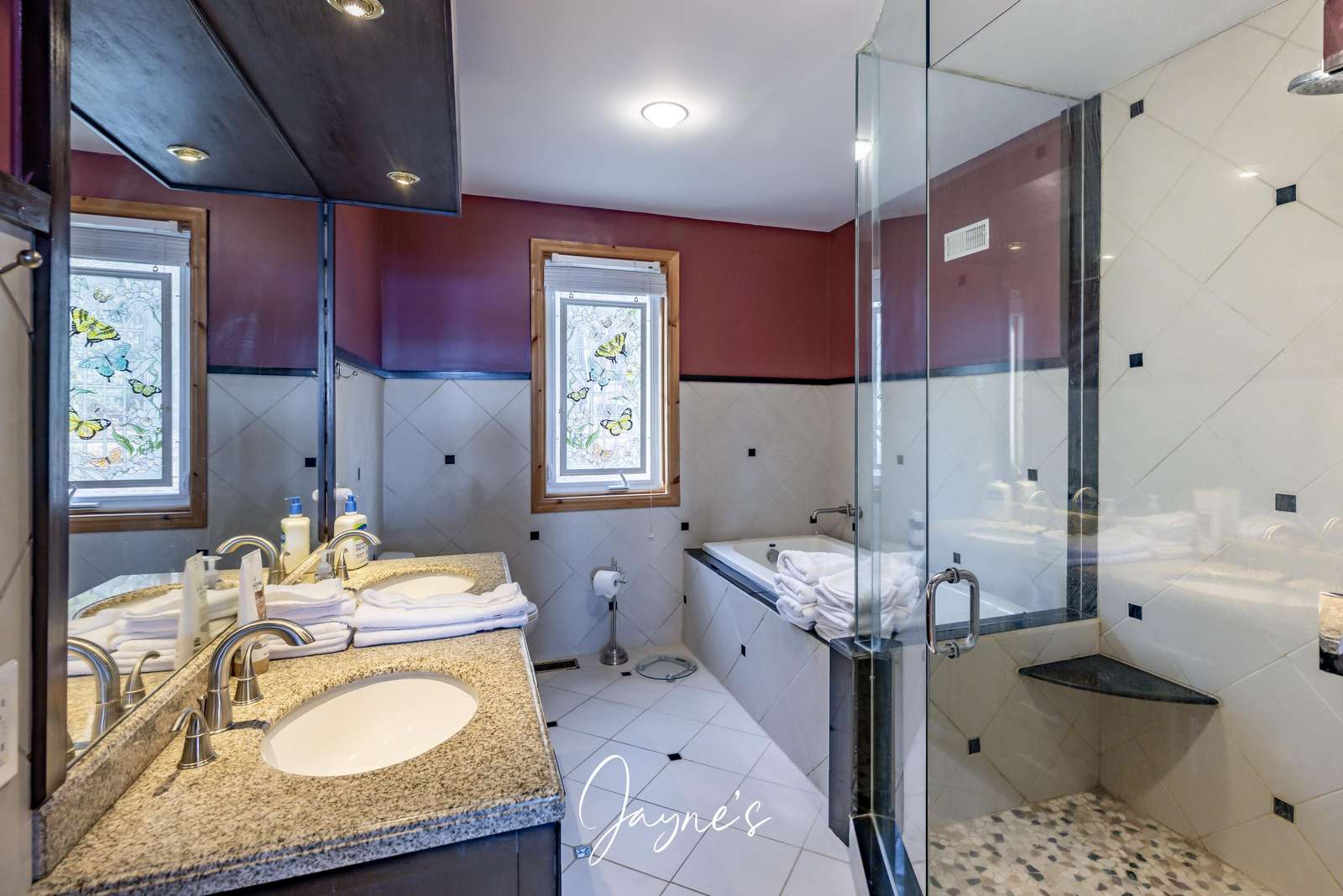 Bathroom 3 - 5-piece ensuite (shared) with stand alone shower, tub and double vanity