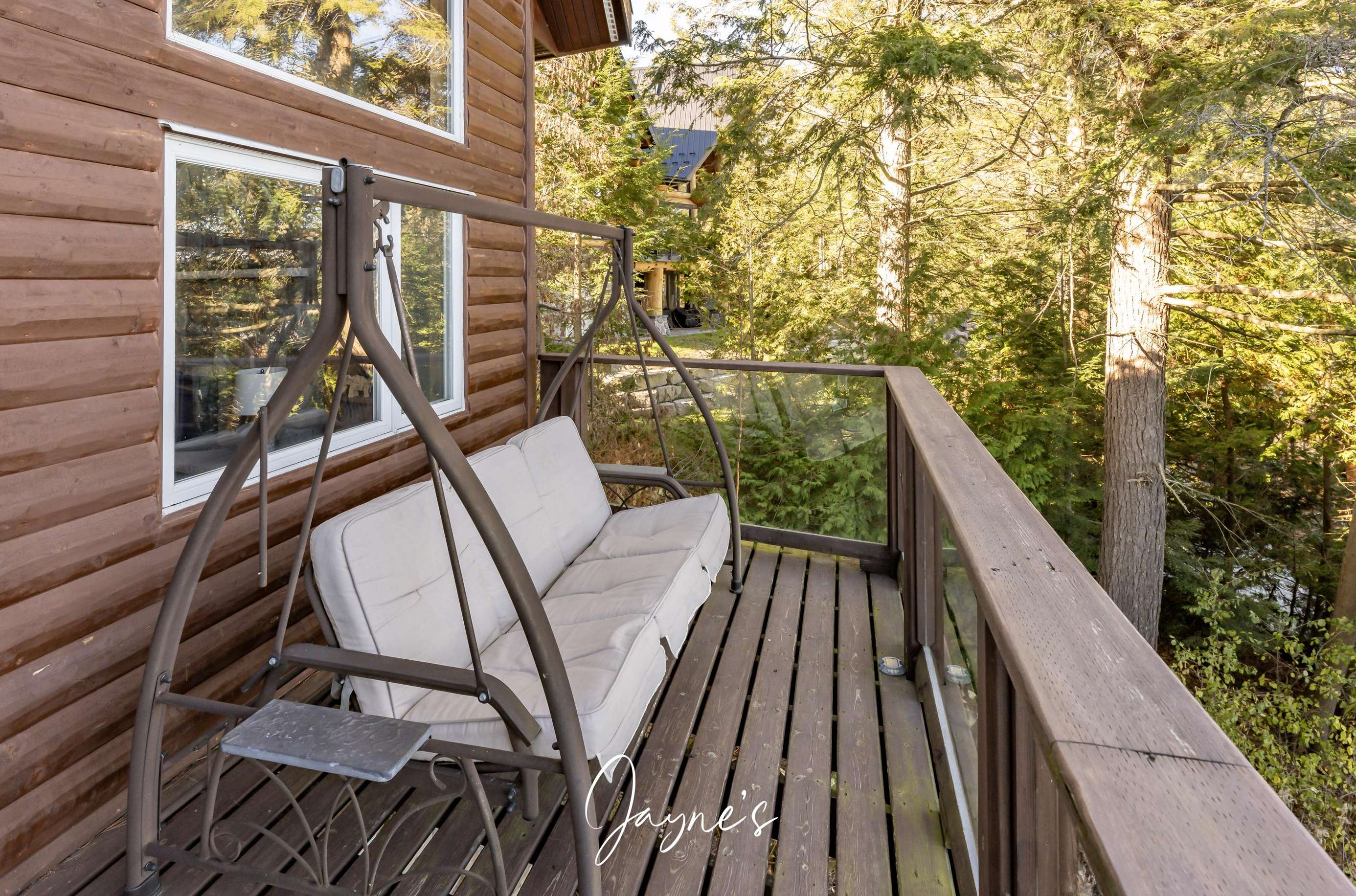 Spacious with 2 3-seater sofas, chair with ottoman, wood fireplace and walkout to deck