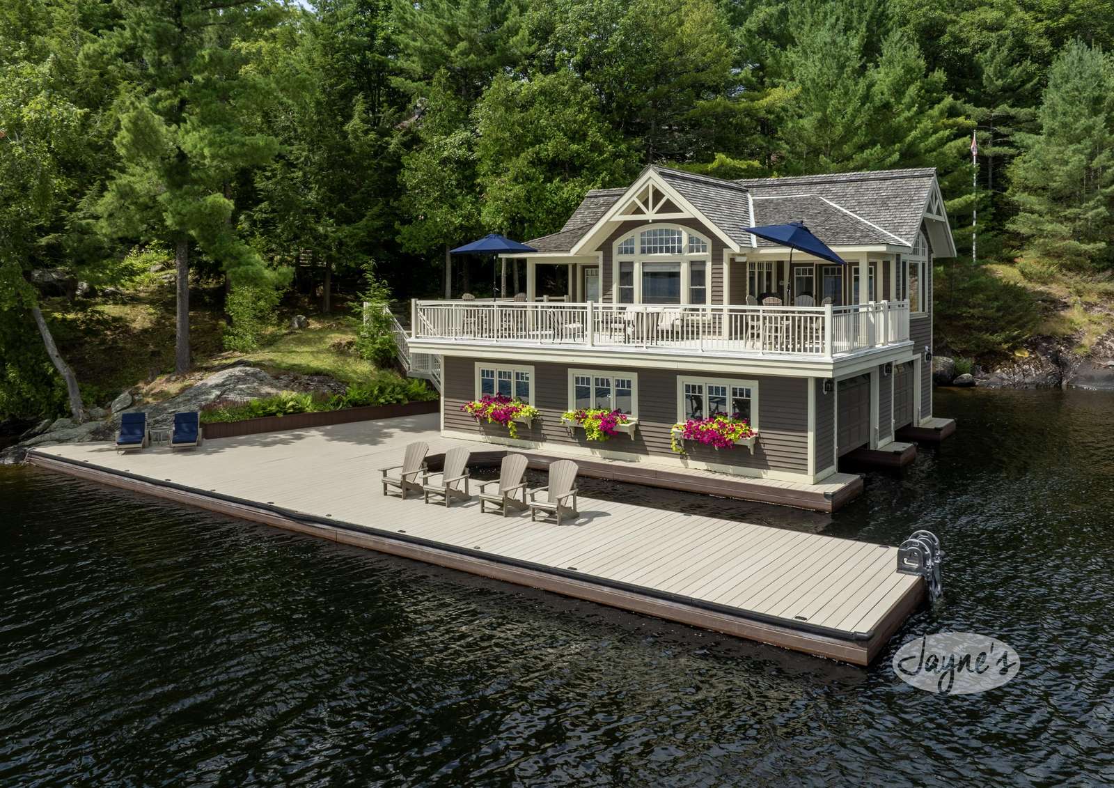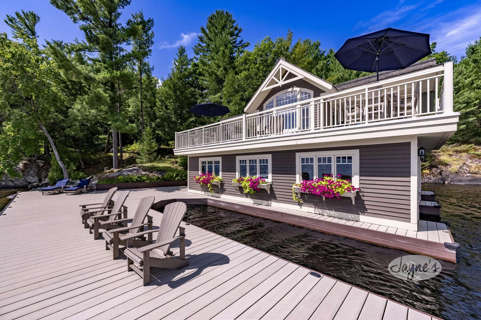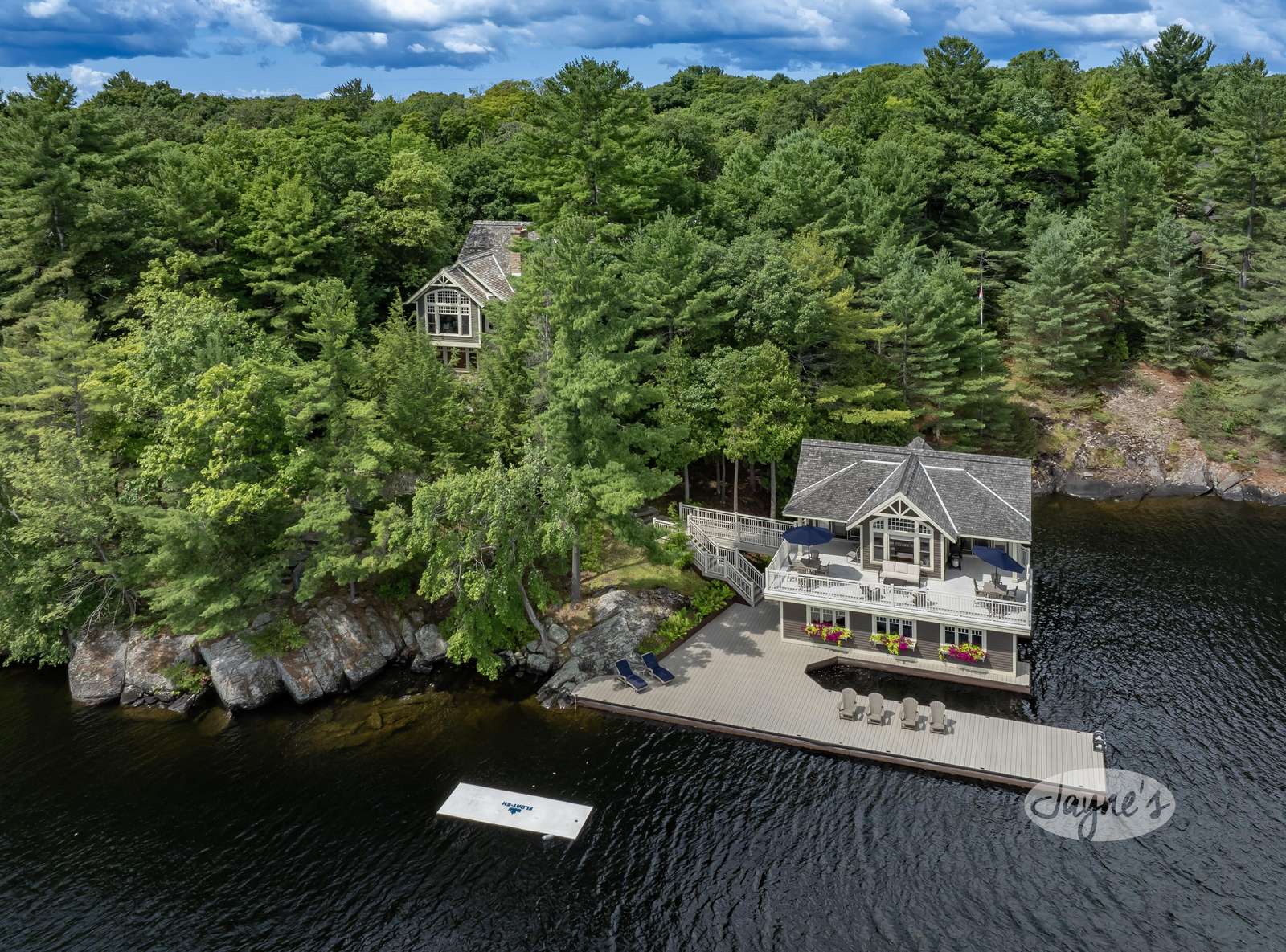 DAYS LIKE THIS is a very private location, beautifully-landscaped, yet there is a natural Muskoka environment feel. With dramatic rock outcroppings, towering trees, a shoreline that has sand pockets and a Canadian shield sloping granite rock into the shore. This is a large, gracious residence with top quality finishes and details. Includes hot tub and firepit and gorgeous views of Lake Muskoka. Additionally, 2 slip boathouse with living accommodations, 3rd external slip, deep water and shallow cove.