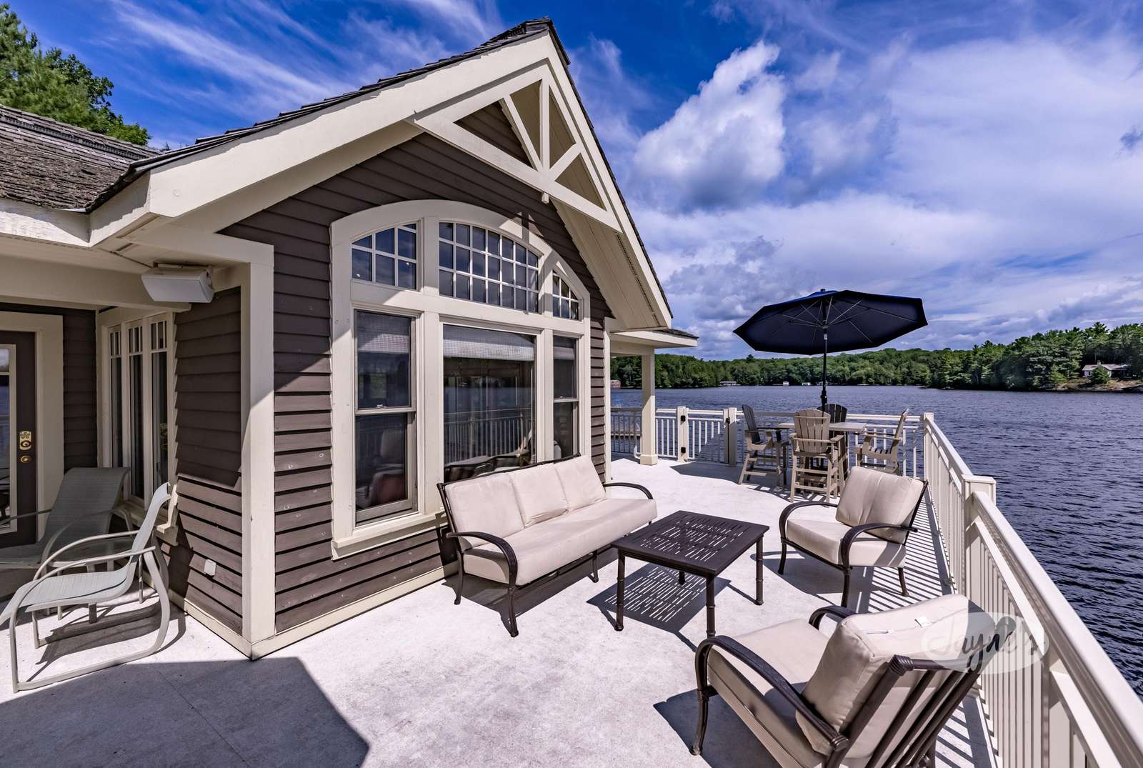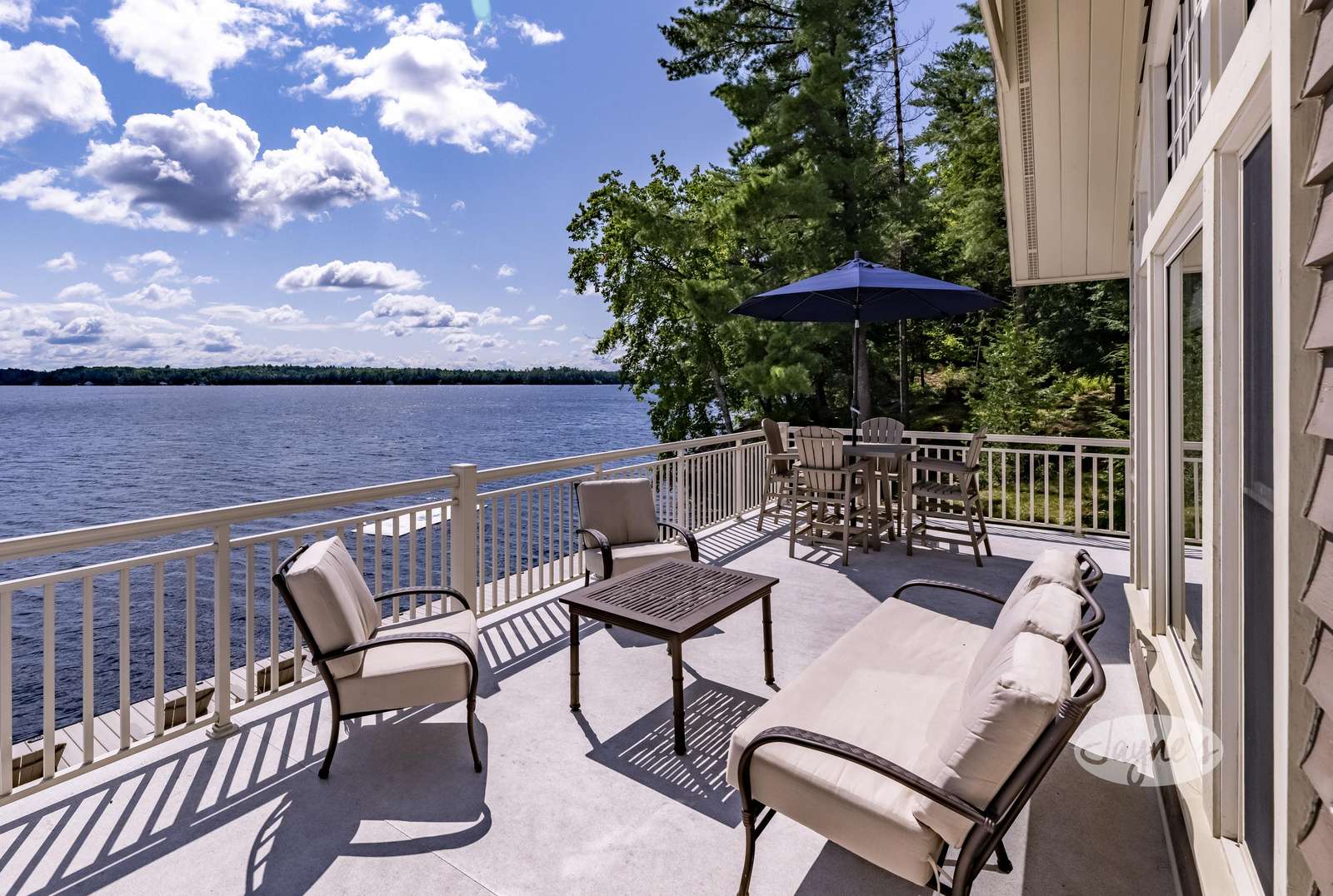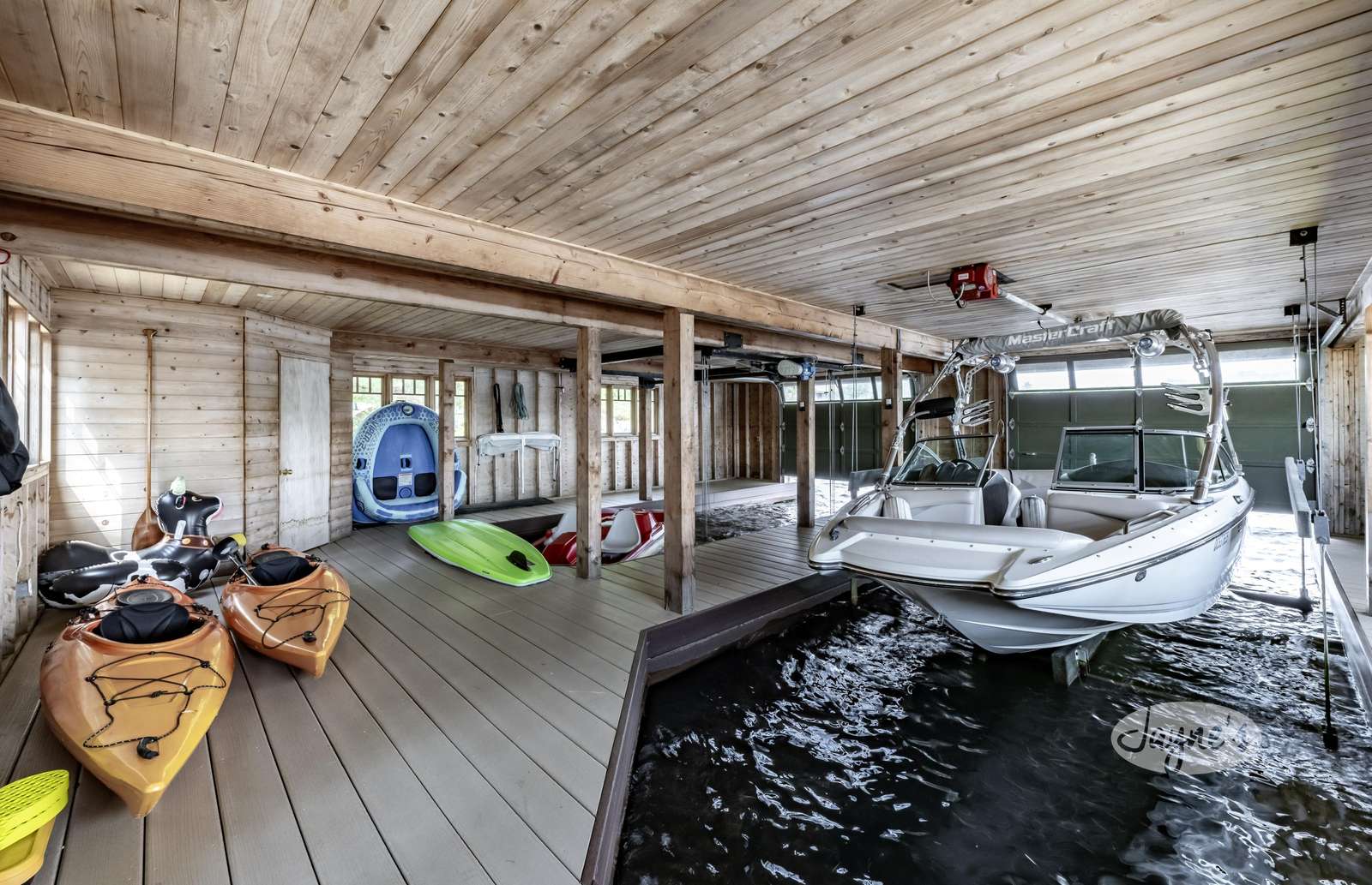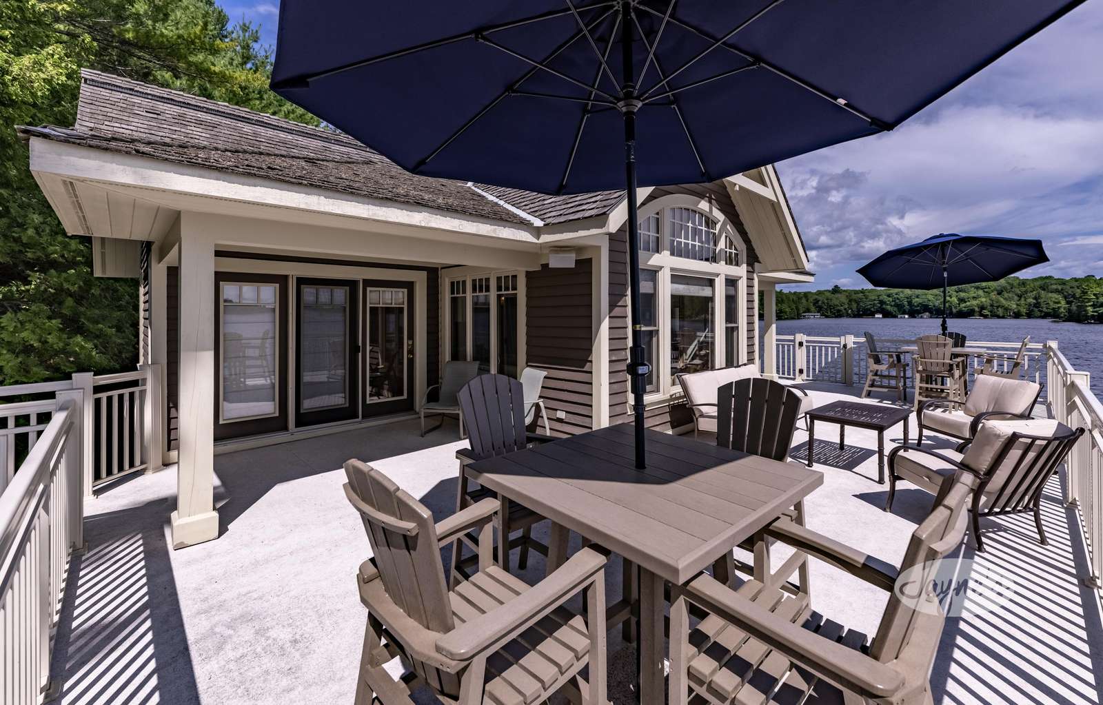 Large boathouse deck and dock below