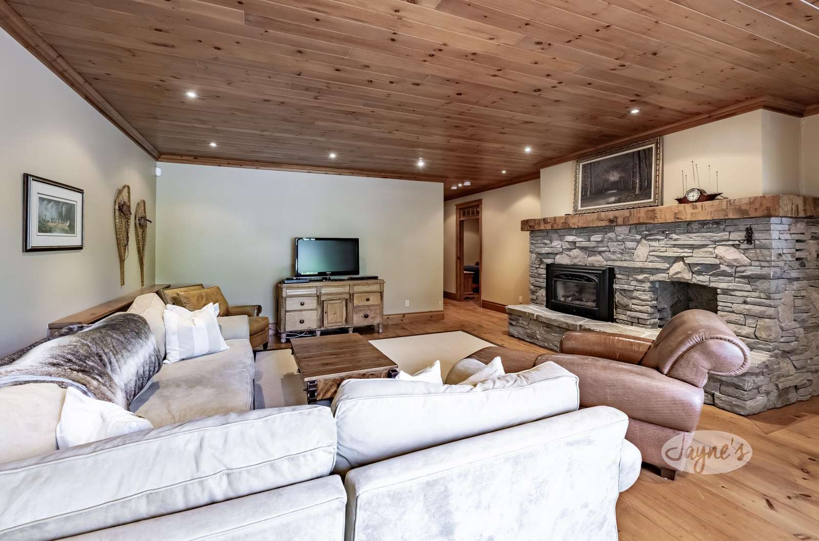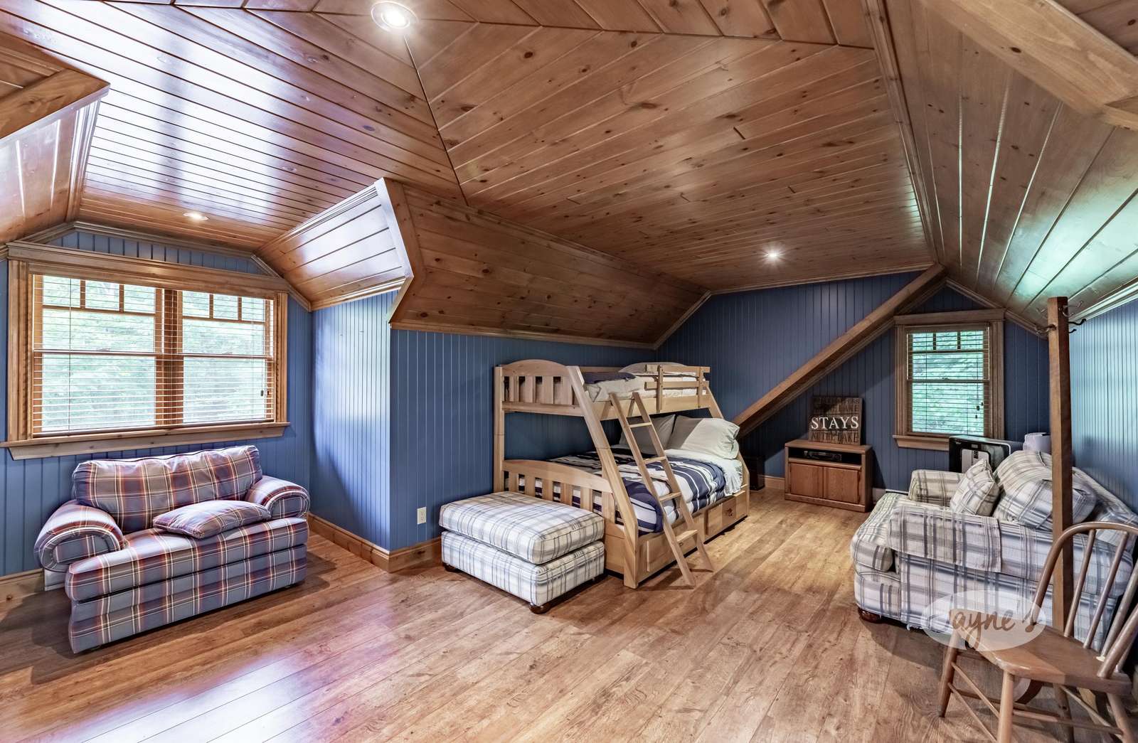 Lower level has another Bunk Bedroom with ensuite and Queen bedroom with ensuite and lower level entertainment room with flat screen TV.