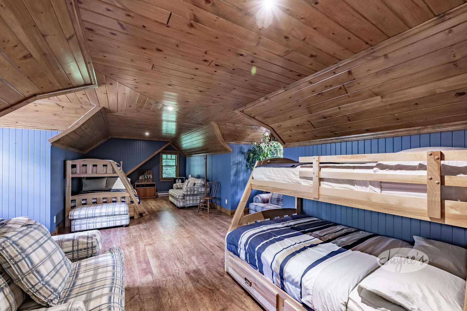 Loft above Garage has 2 Bunk Beds.
