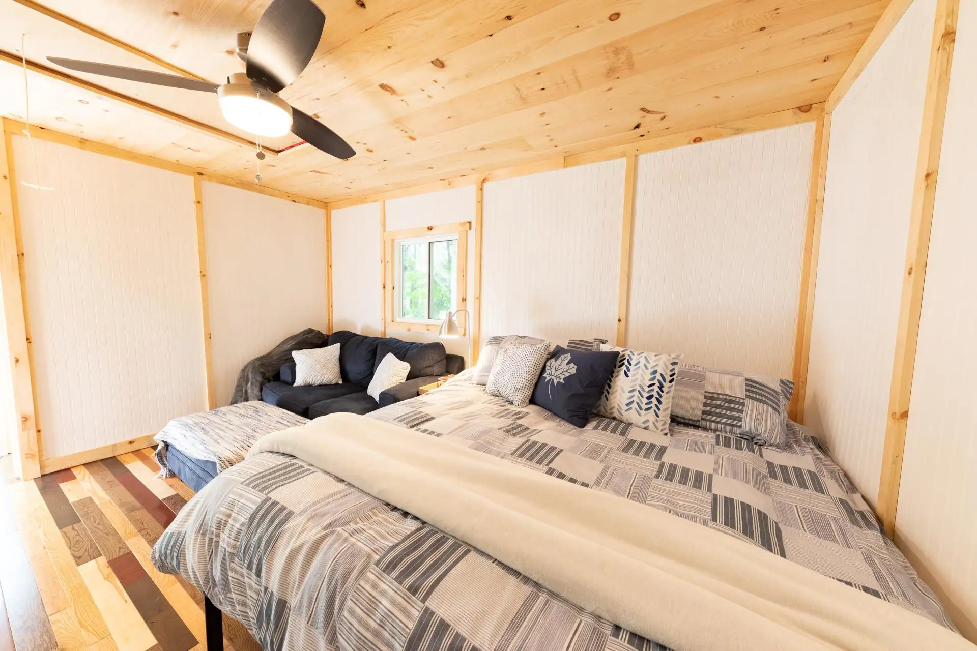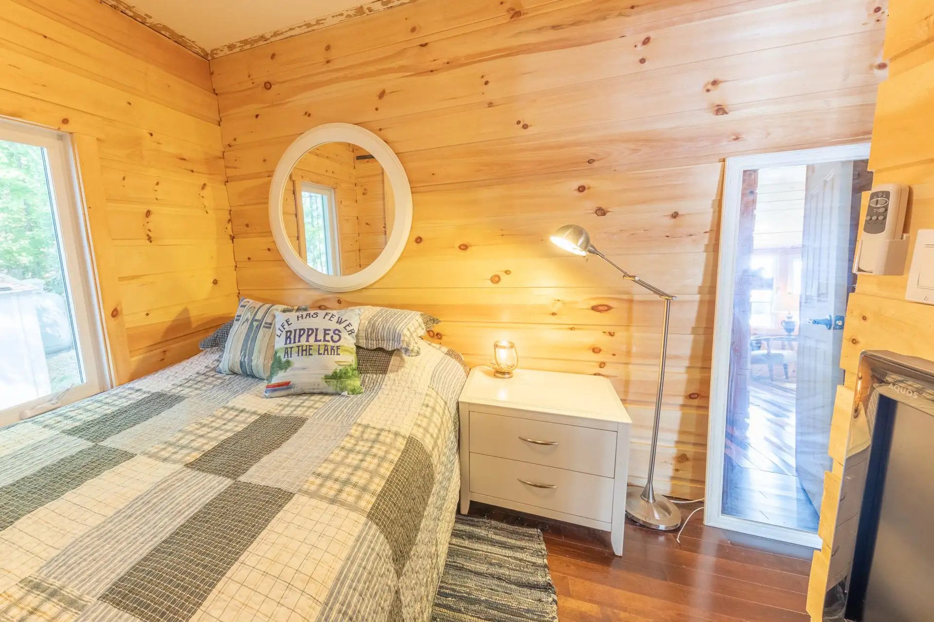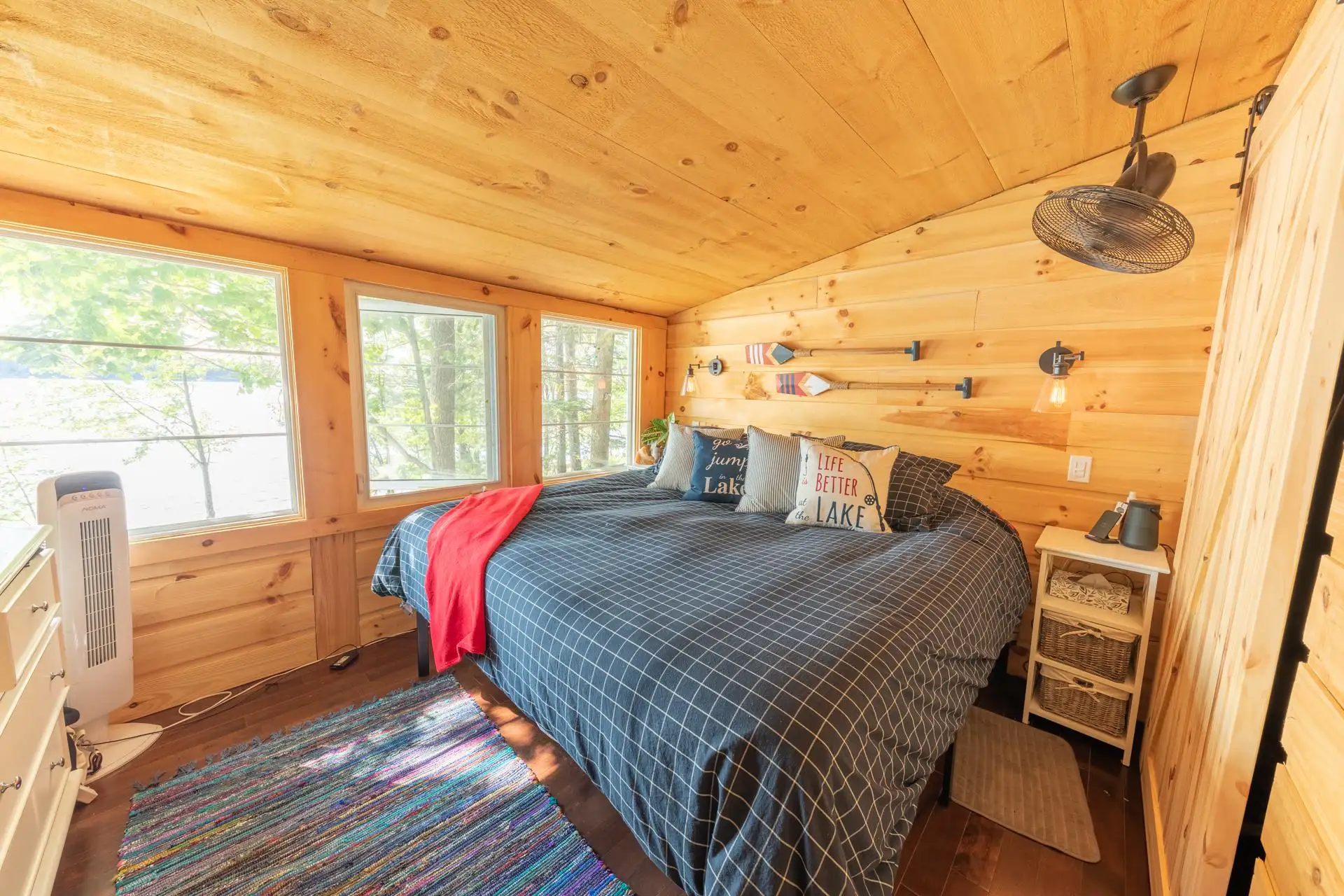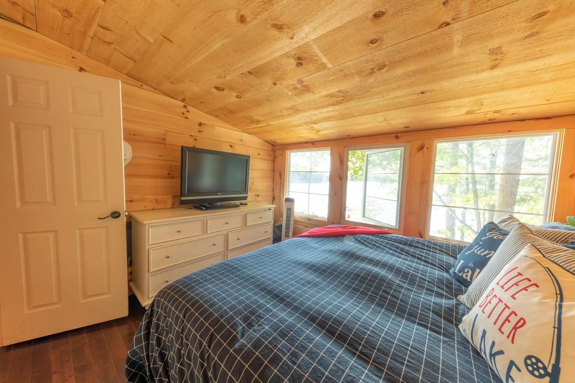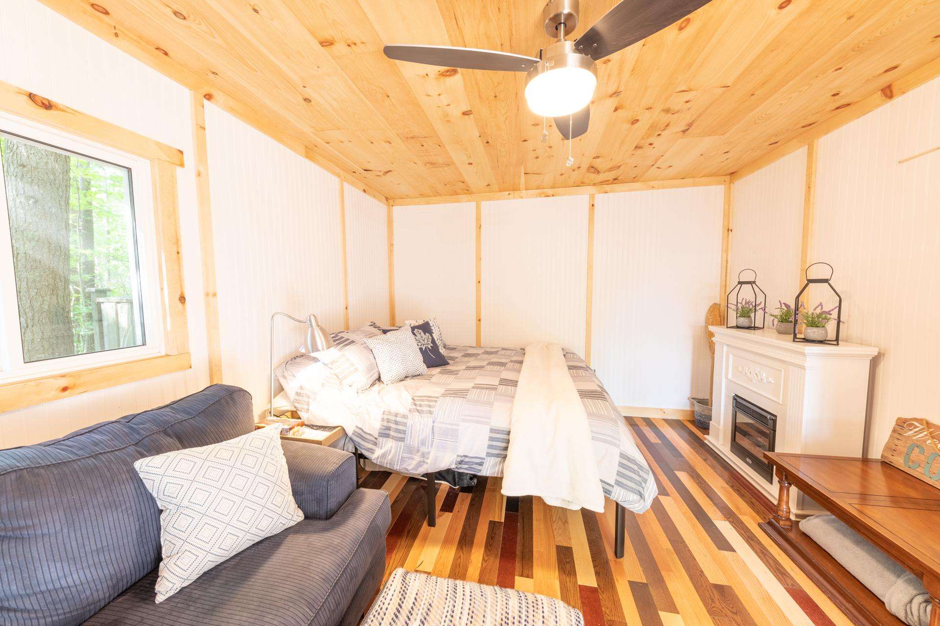 The bright, newly renovated, 2 room bunkie is the complete package! With a inviting propane fireplace situated at the foot of the king bed, a 2 seater sofa and 3 piece bathroom, this bunkie provides all the necessary features for a cozy night on Long Lake.