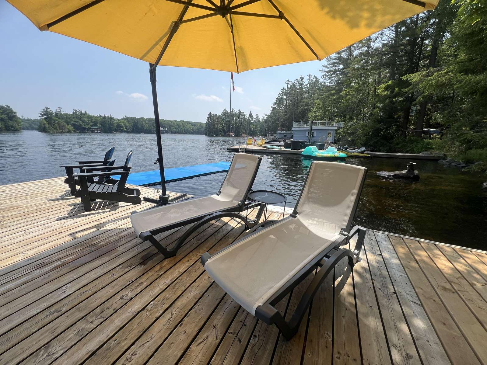 DOCK N DIVE This distinctive Lake Muskoka cottage offers refined accommodation and exceptional waterfront amenities. The interior comprises a three-bedroom, two-bathroom main residence, supplemented by a convenient attached bunkie. Upstairs, two bedrooms provide access to a walkout balcony. Guests will appreciate the dedicated outdoor spaces, including a screened-in porch overlooking the water and a spacious rear deck with seating and a BBQ station. The property features 60 feet of level frontage, ensuring an effortless walkout to the dock. This prime location facilitates full enjoyment of the lake, inviting occupants to maximize their experience through swimming, boating, or utilizing the abundance of provided water toys.