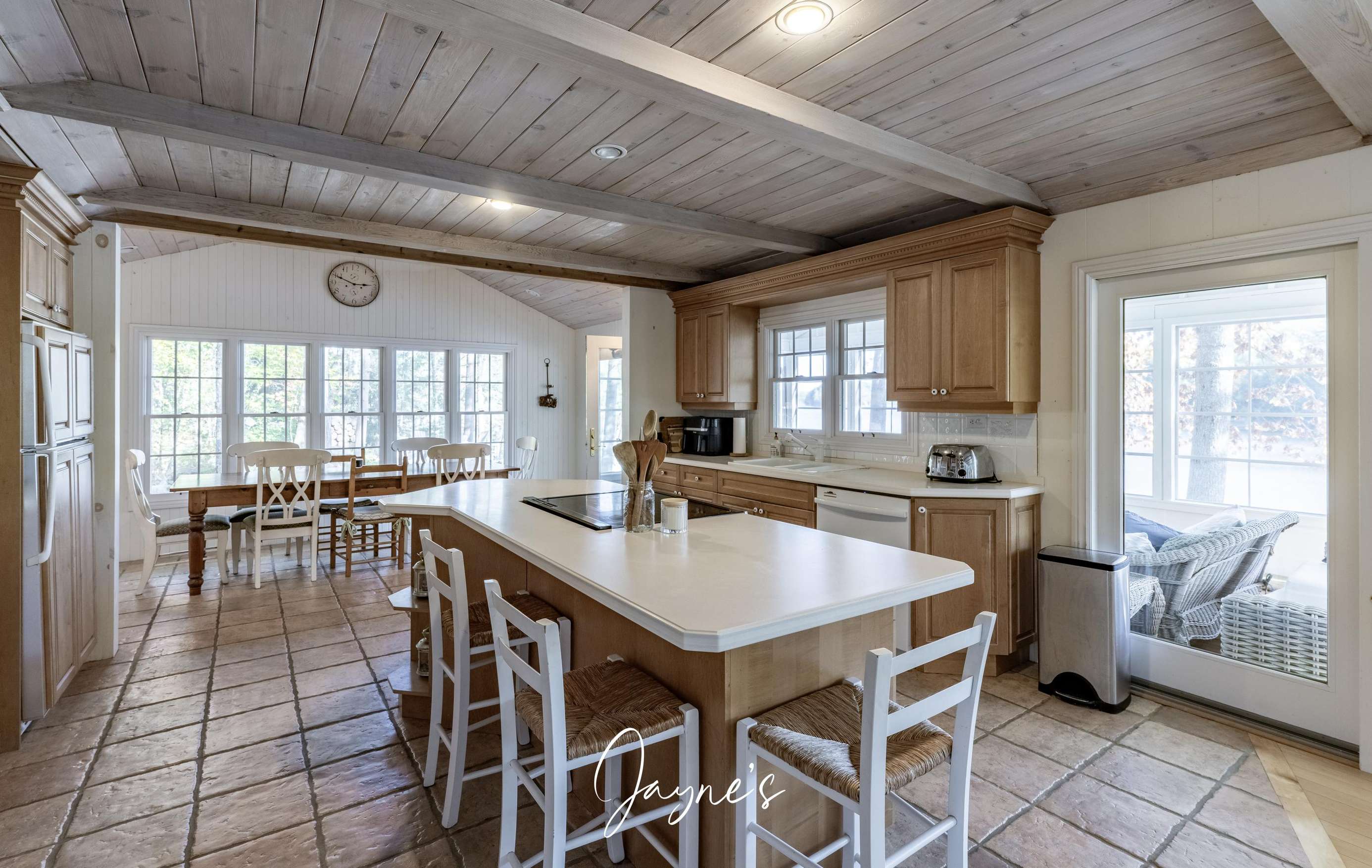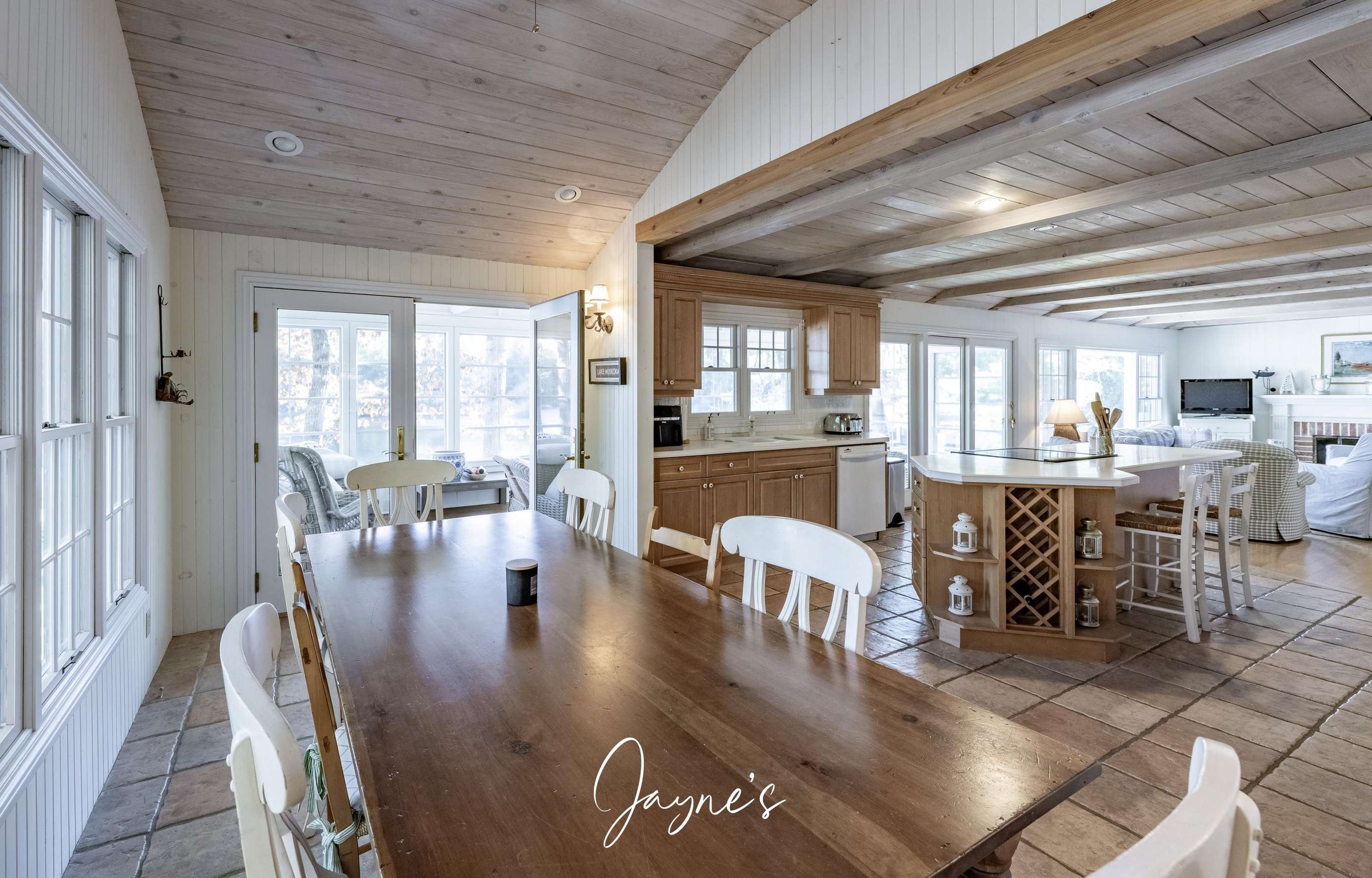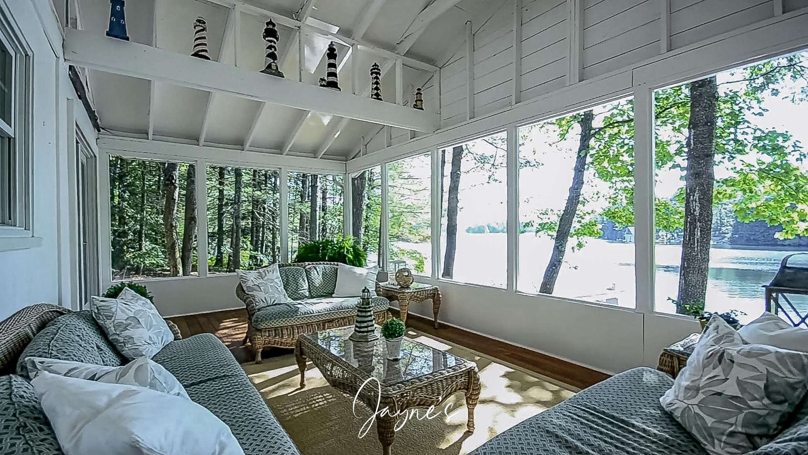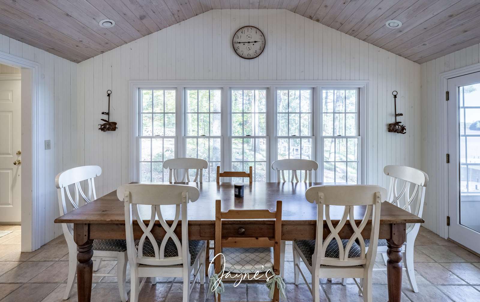 With two fireplaces, whitewashed wood-paneled walls, a 300 sq. ft. screened-in Muskoka Room and elegant wood beam ceilings, East Bay Charm feels quintessentially Muskokan. Featuring a bright, open concept eat-in kitchen with plenty of counter space, a centre island and 3 bar stools, along with a spacious dining area and table that seats 8. Also located on the main floor is the living room, which provides another great space for families and large groups to congregate. This room comes equipped with a wood-burning fireplace, comfortable seating, and large windows overlooking the lake. Alternatively, the oversized Muskoka Room is perfect for those hot summer nights. 300 sq. ft. in size, this screened-in room is impeccably furnished and offers unbeatable views of Lake Muskoka. There are four bedrooms located on the main floor of the cottage: 1 Double bedroom, 1 King bedroom with ensuite, and 2 Queen bedrooms. Two bathrooms are located on this floor, including a 3-piece Master ensuite, and a shared 3-piece bathroom.