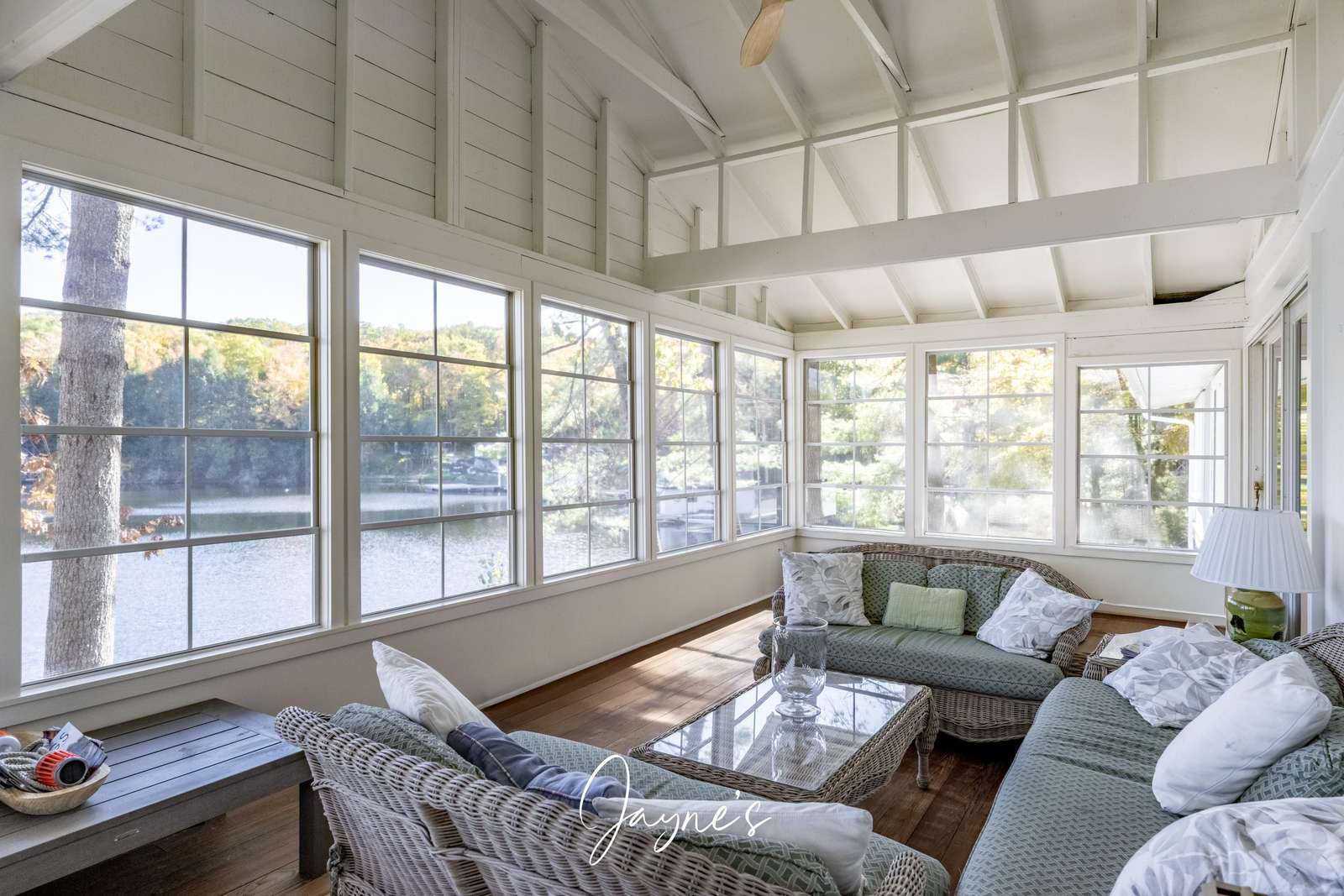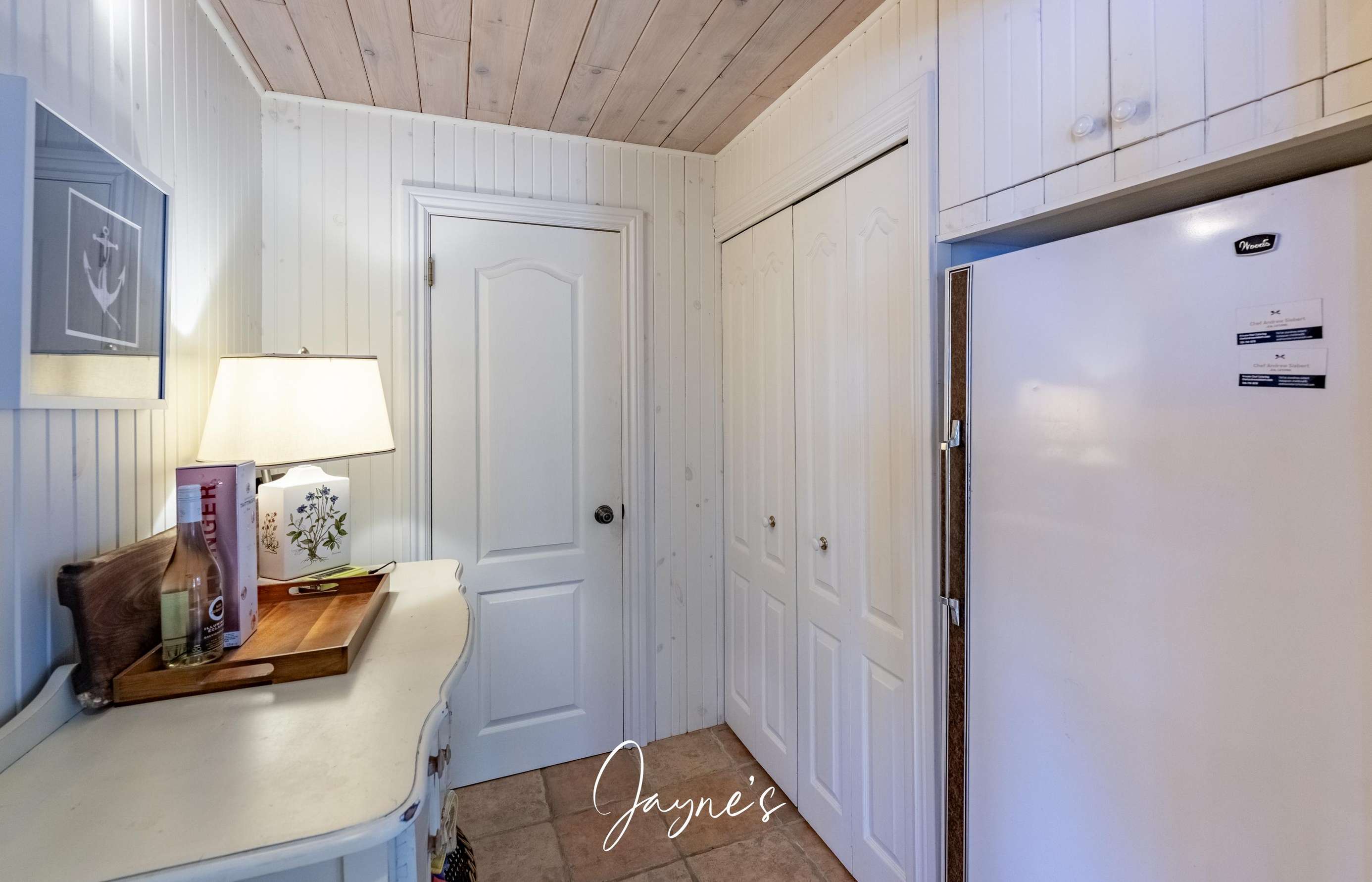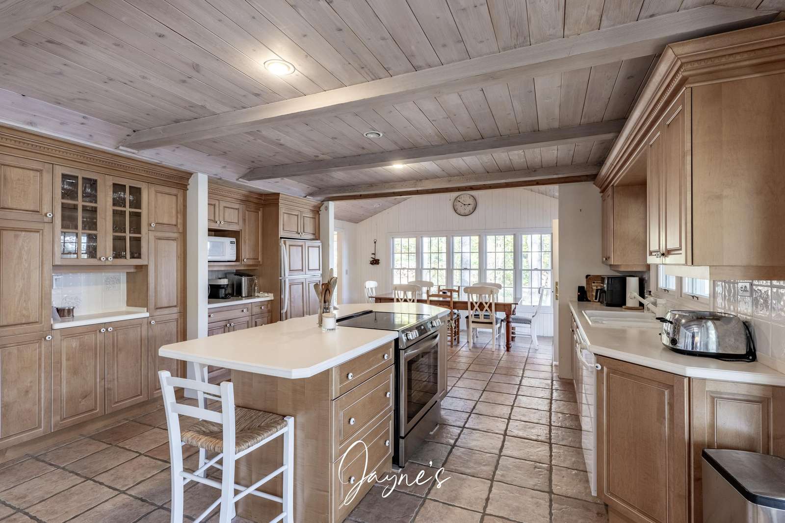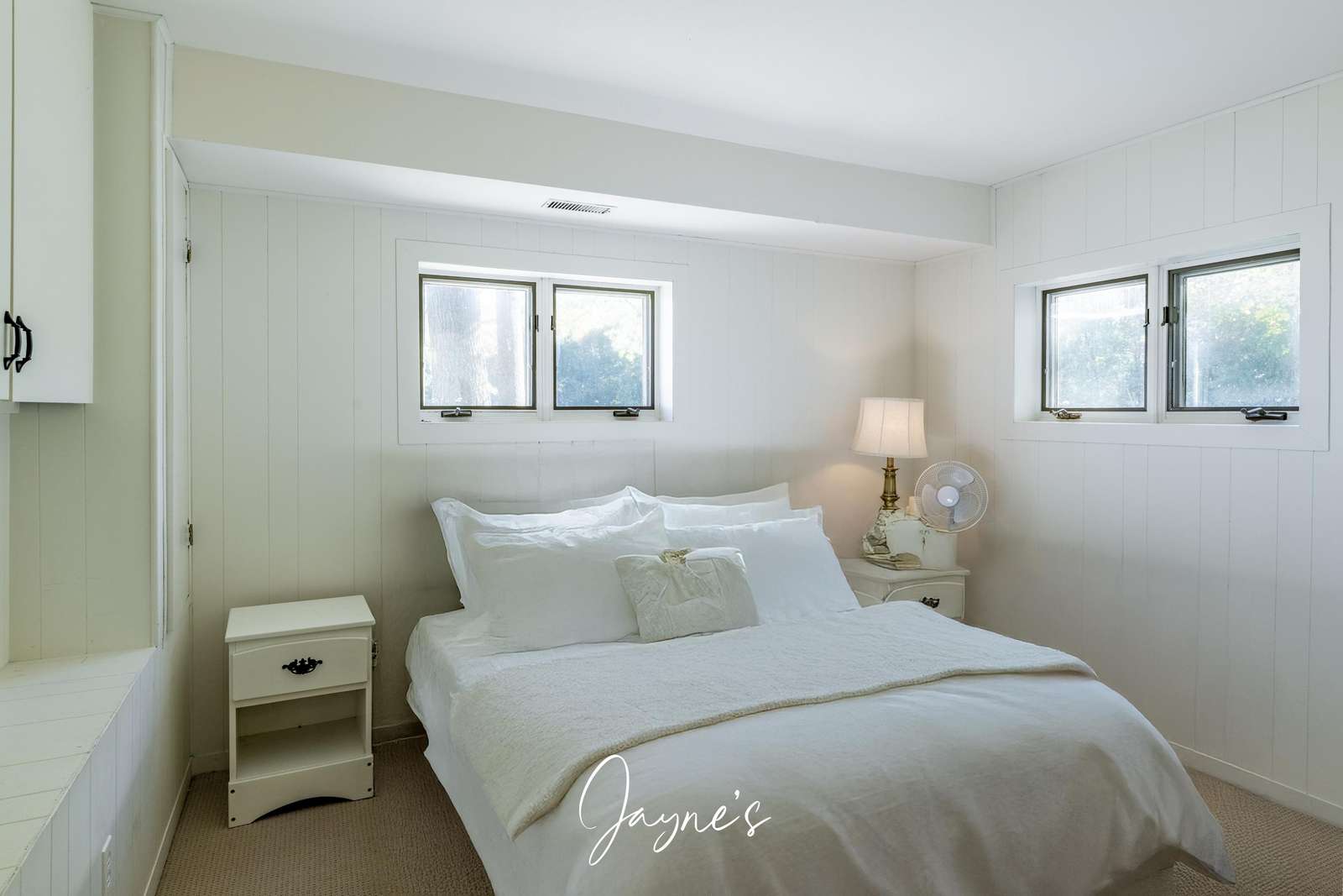With two fireplaces, whitewashed wood-paneled walls, a 300 sq. ft. screened-in Muskoka Room and elegant wood beam ceilings, East Bay Charm feels quintessentially Muskokan. Featuring a bright, open concept eat-in kitchen with plenty of counter space, a centre island and 3 bar stools, along with a spacious dining area and table that seats 8. Also located on the main floor is the living room, which provides another great space for families and large groups to congregate. This room comes equipped with a wood-burning fireplace, comfortable seating, and large windows overlooking the lake. Alternatively, the oversized Muskoka Room is perfect for those hot summer nights. 300 sq. ft. in size, this screened-in room is impeccably furnished and offers unbeatable views of Lake Muskoka. There are four bedrooms located on the main floor of the cottage: 1 Double bedroom, 1 King bedroom with ensuite, and 2 Queen bedrooms. Two bathrooms are located on this floor, including a 3-piece Master ensuite, and a shared 3-piece bathroom.