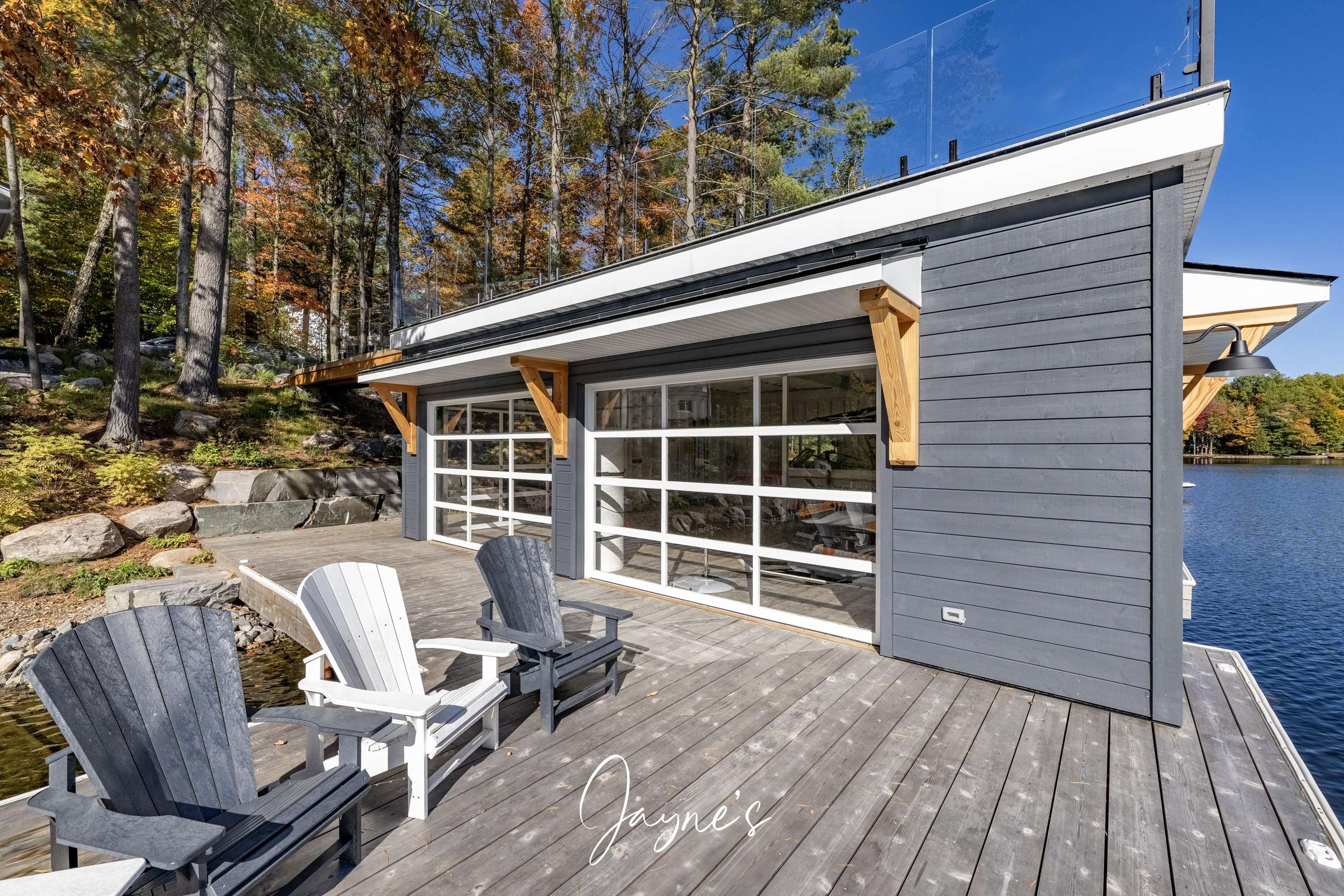 East Bay Charm enjoys 245 feet of prime Lake Muskoka shoreline, all-day sun and breathtaking sunrises, a sandy beach and level land - perfect for families of all ages! Property also comes equipped with a 2-slip boathouse and a sun-drenched, 1300 sq. ft. boathouse deck with lounge furniture! Kayak and Paddle Boat included in rental! Shallow sandy waterfront.Β It has been rumored that the prior owners of the cottage had 16 dump trunks worth of sand dumped at the water's edge in the 1980s!Β Water is shallow for about 10 feet, until it becomes waist-height.Β