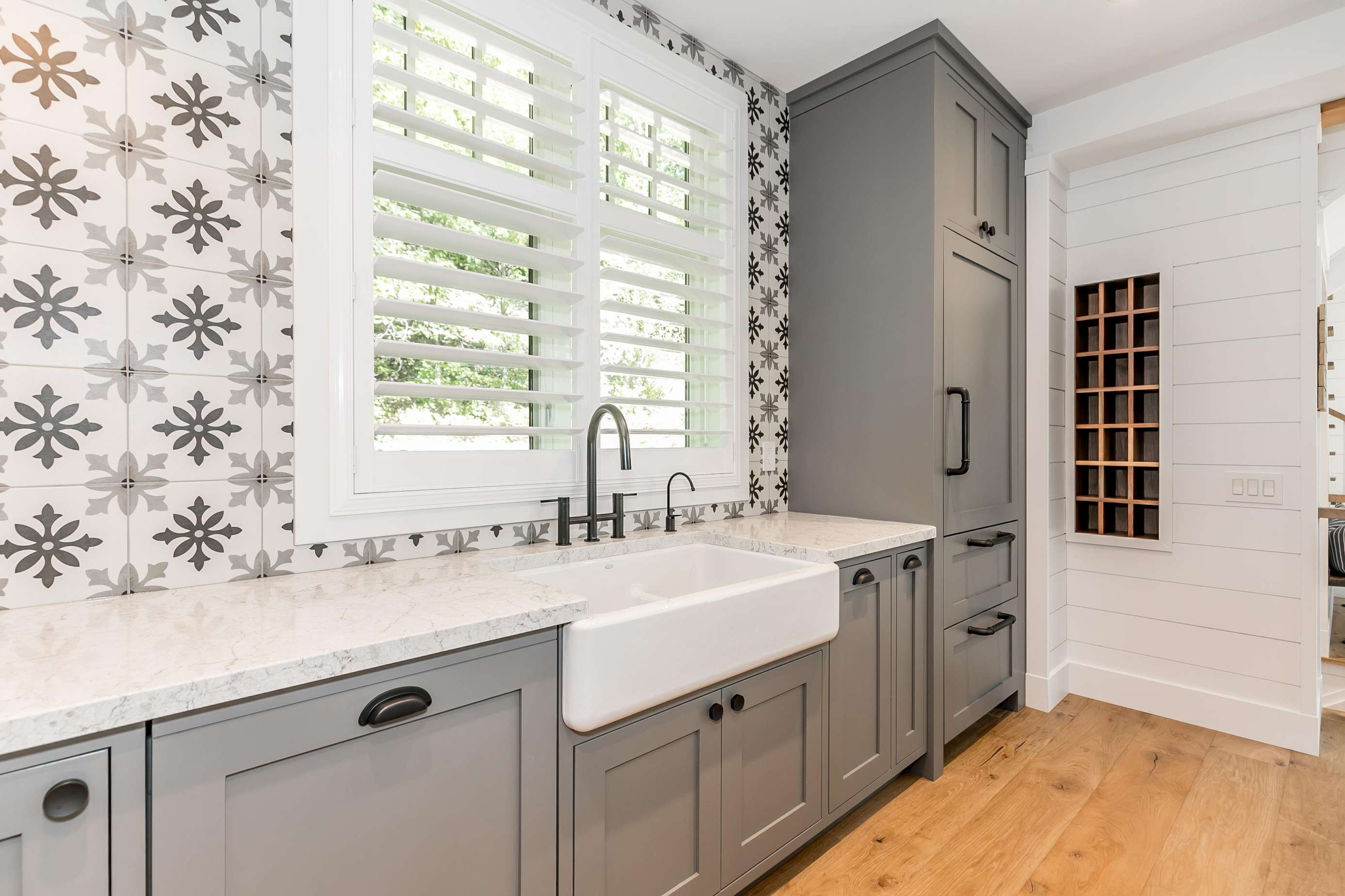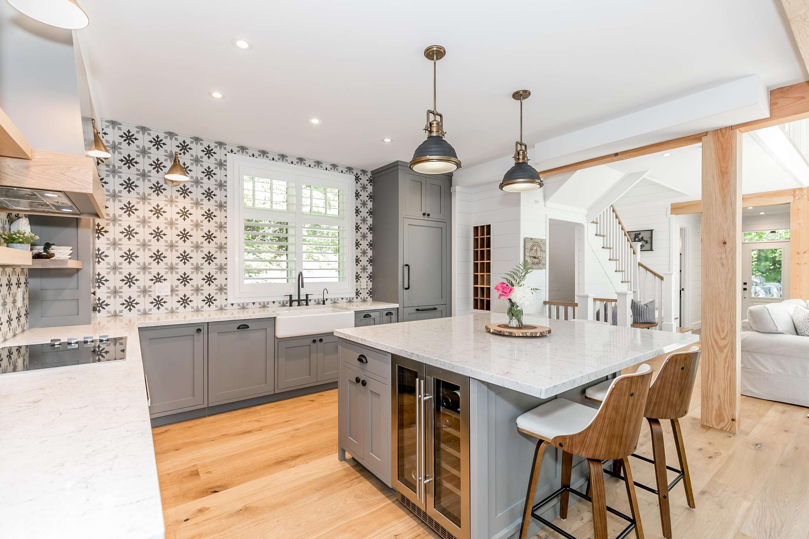 The luxurious kitchens features high-end Meile appliances, a Liebherr fridge with an ice maker, an island with seating for 4 and a mini drink cooler.