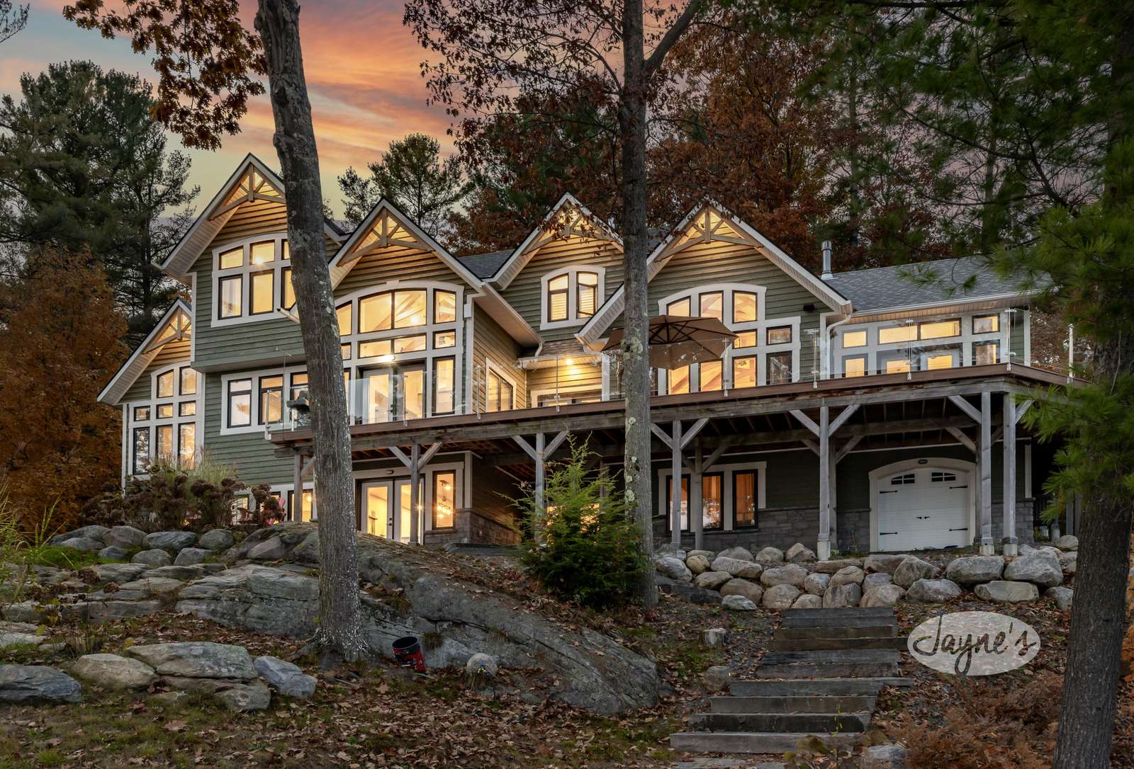 EL DORADO - Perched atop a beautiful Muskoka landscape, amongst the trees, El Dorado offers panoramic views of the surrounding bay. As you approach the cottage, you will pass by a brand new private sports court that offers up pickle ball and basketball