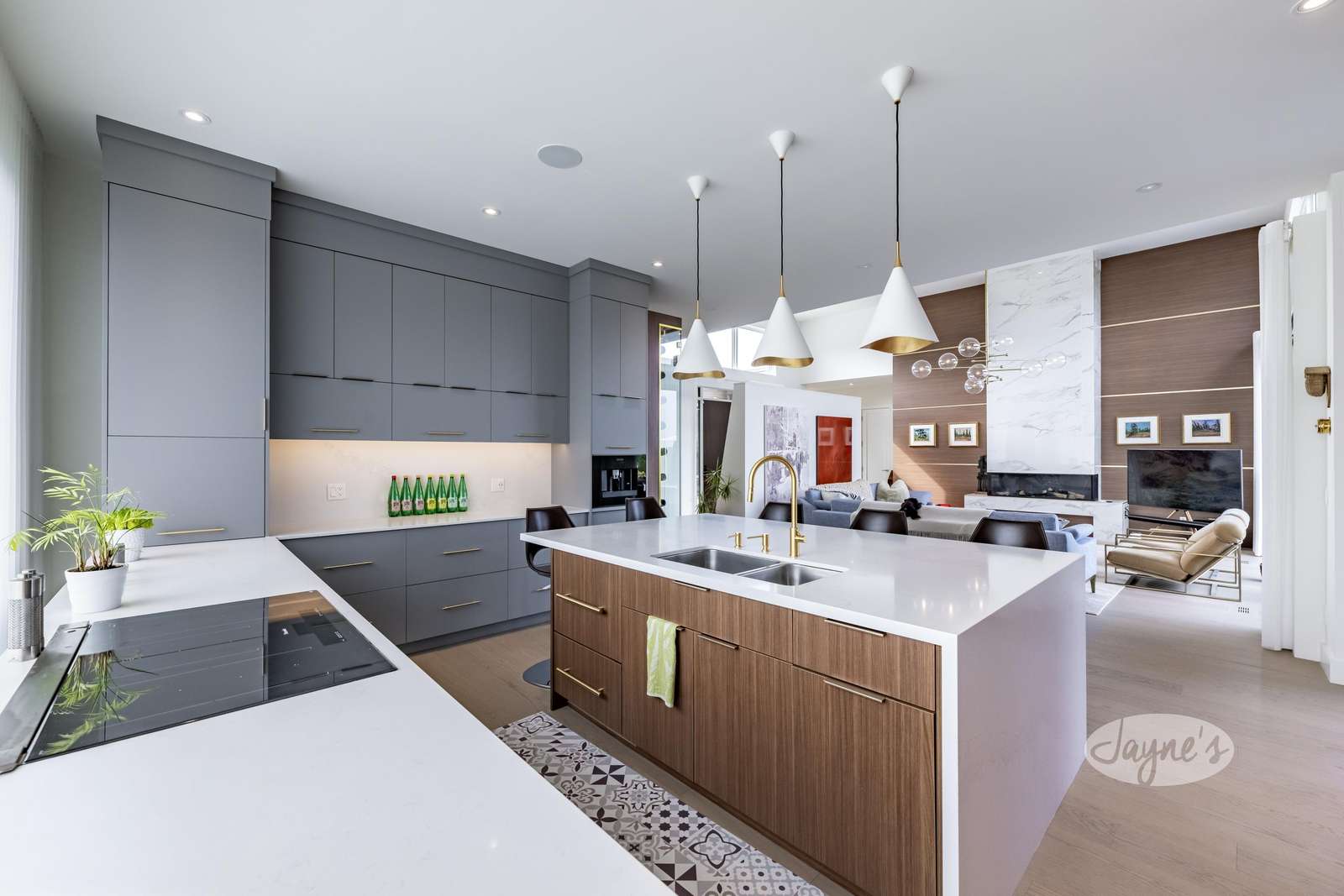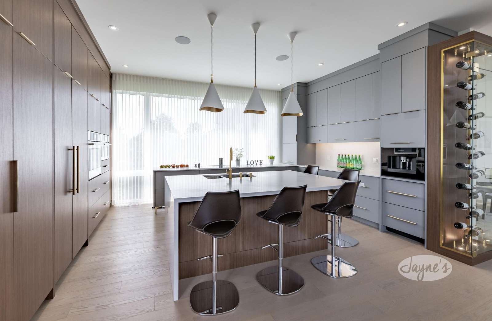 High end built in appliances, quartz countertops, very large island with seating for 5.