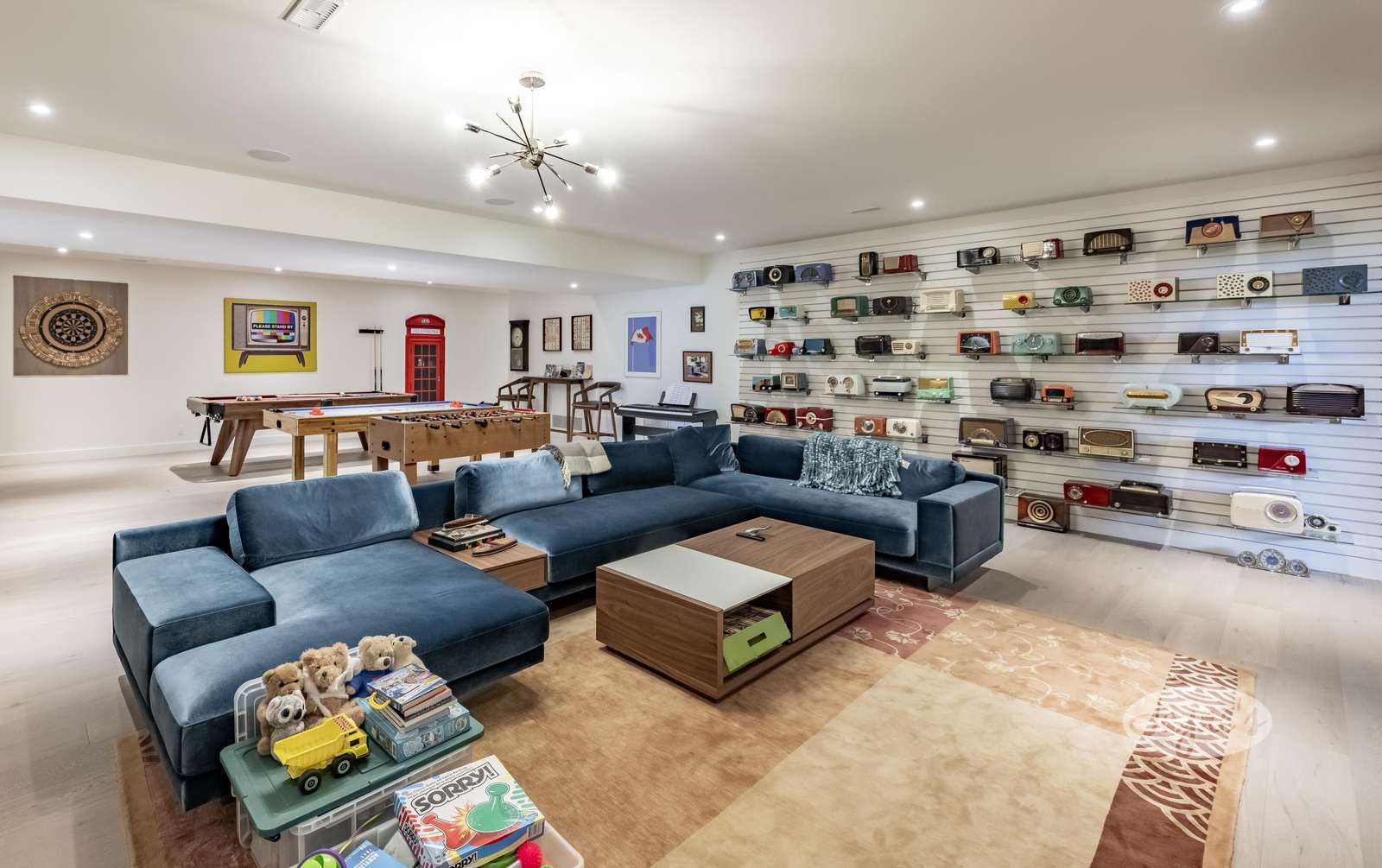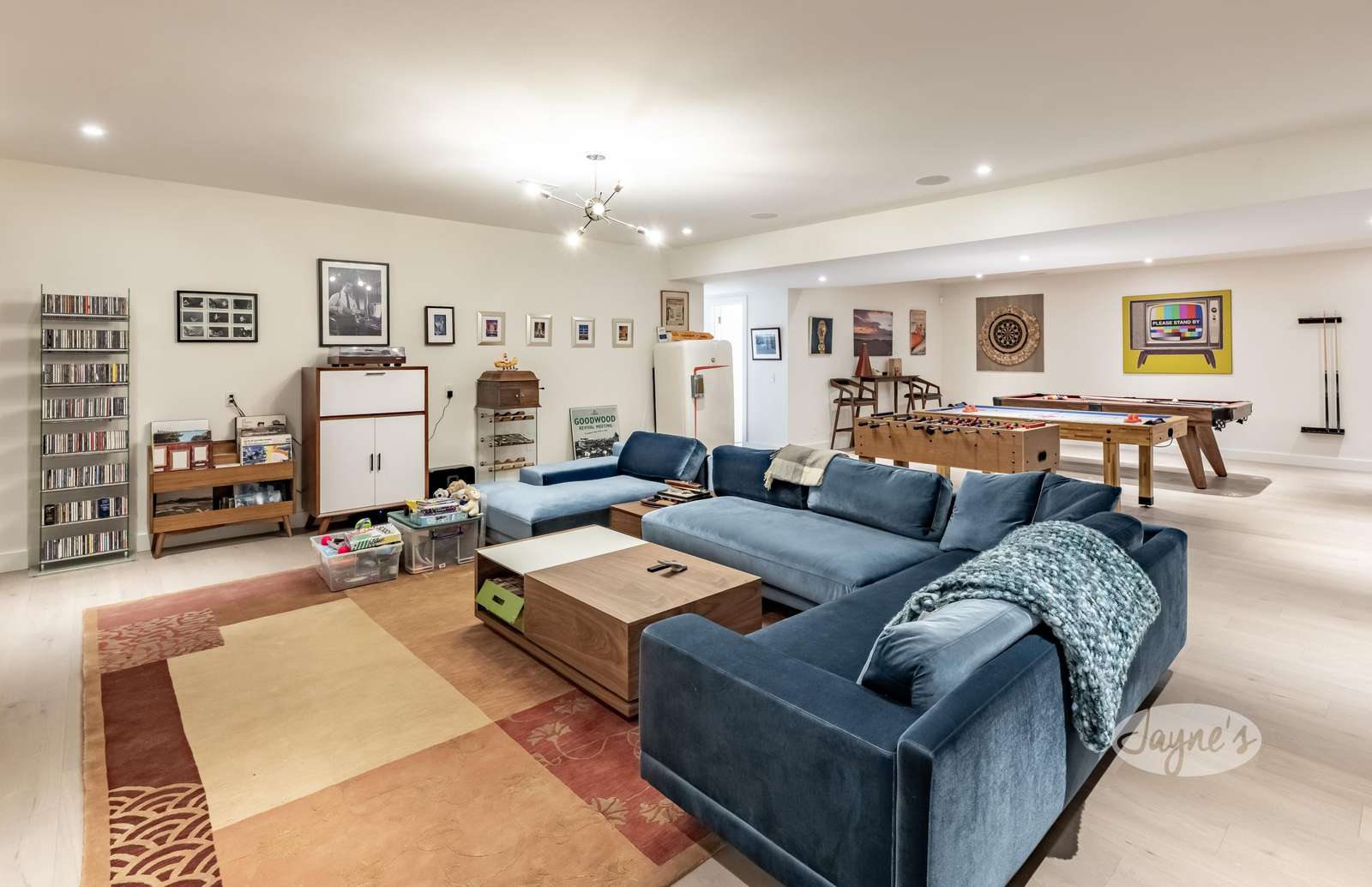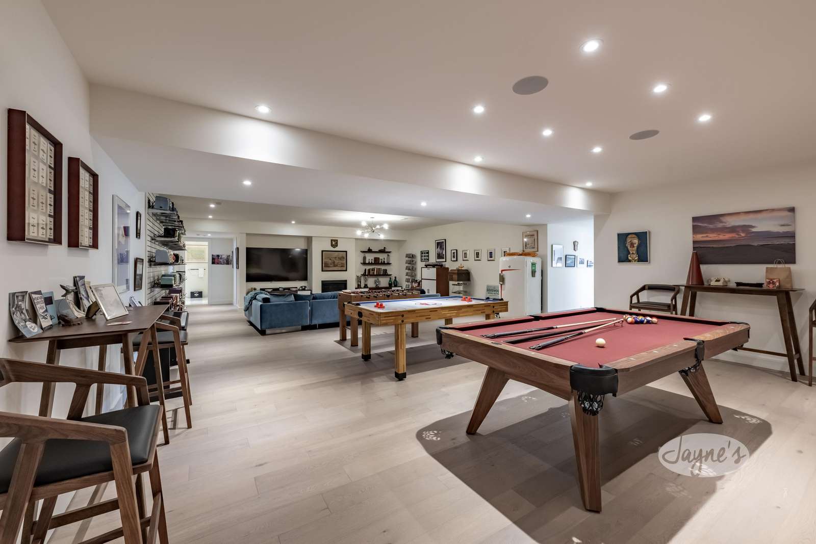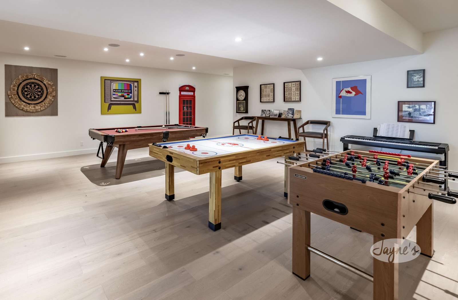 Large Games room with pool table, fooseball table, and hockey table