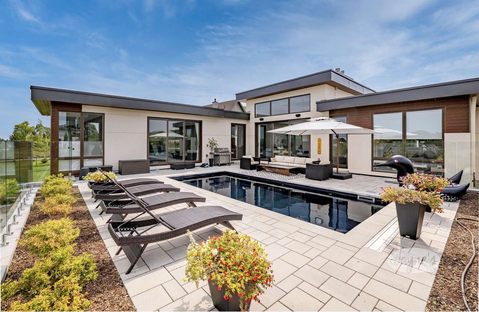 Beautifully landscaped property on a very quiet street. Lovely backyard oasis with deck, pool and plenty of seating.