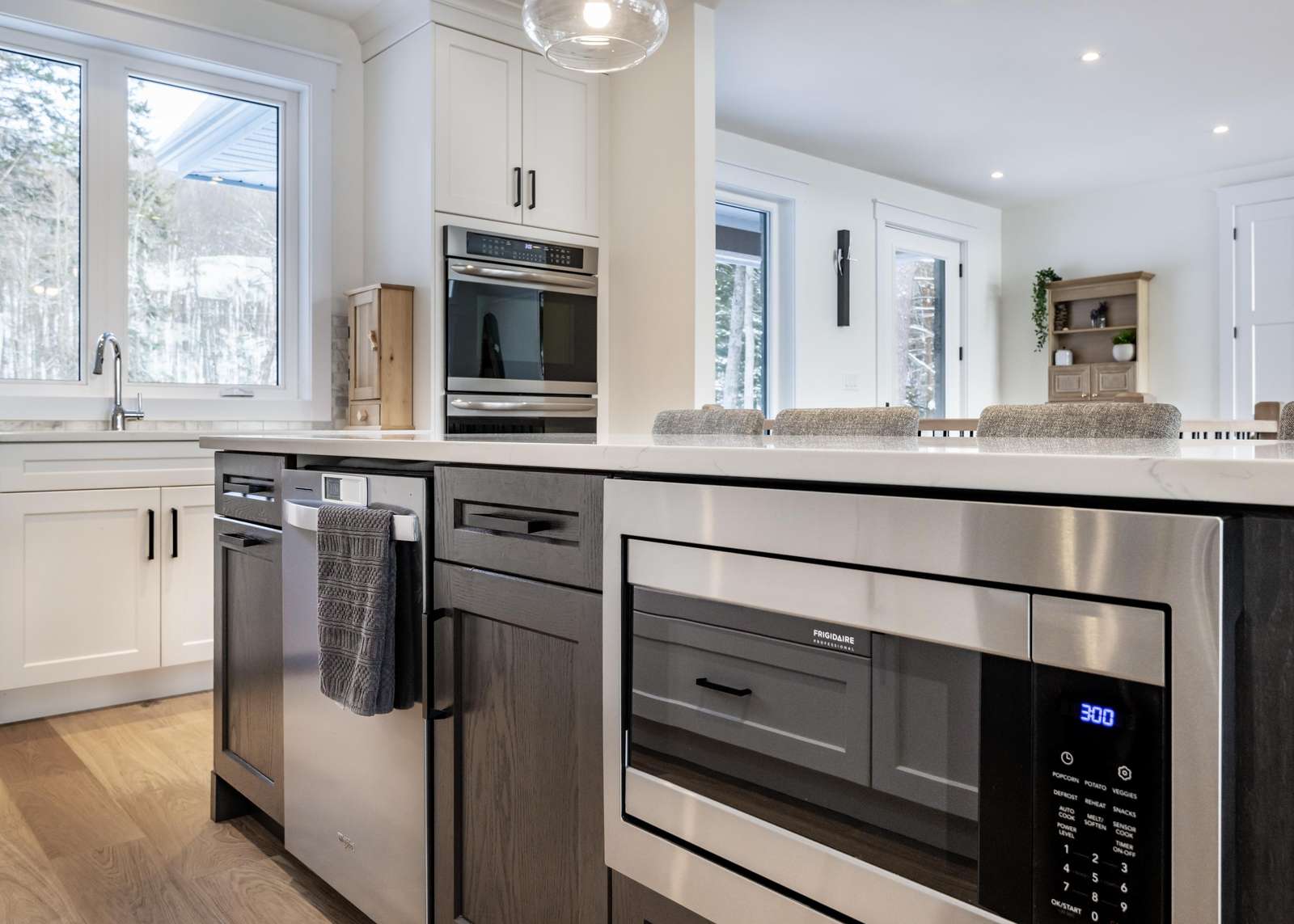 Modern open concept inside, enjoy the gourmet kitchen, fully equipped with double ovens, in-island microwave, 2 dishwashers and large fridge with ice maker.