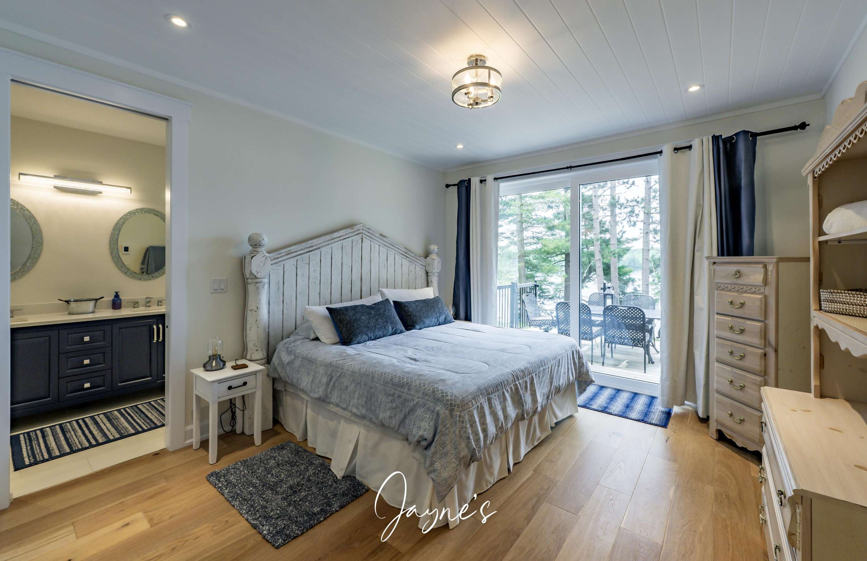 Bedroom 1 – King (Primary) with large closet, ensuite and walkout to deck