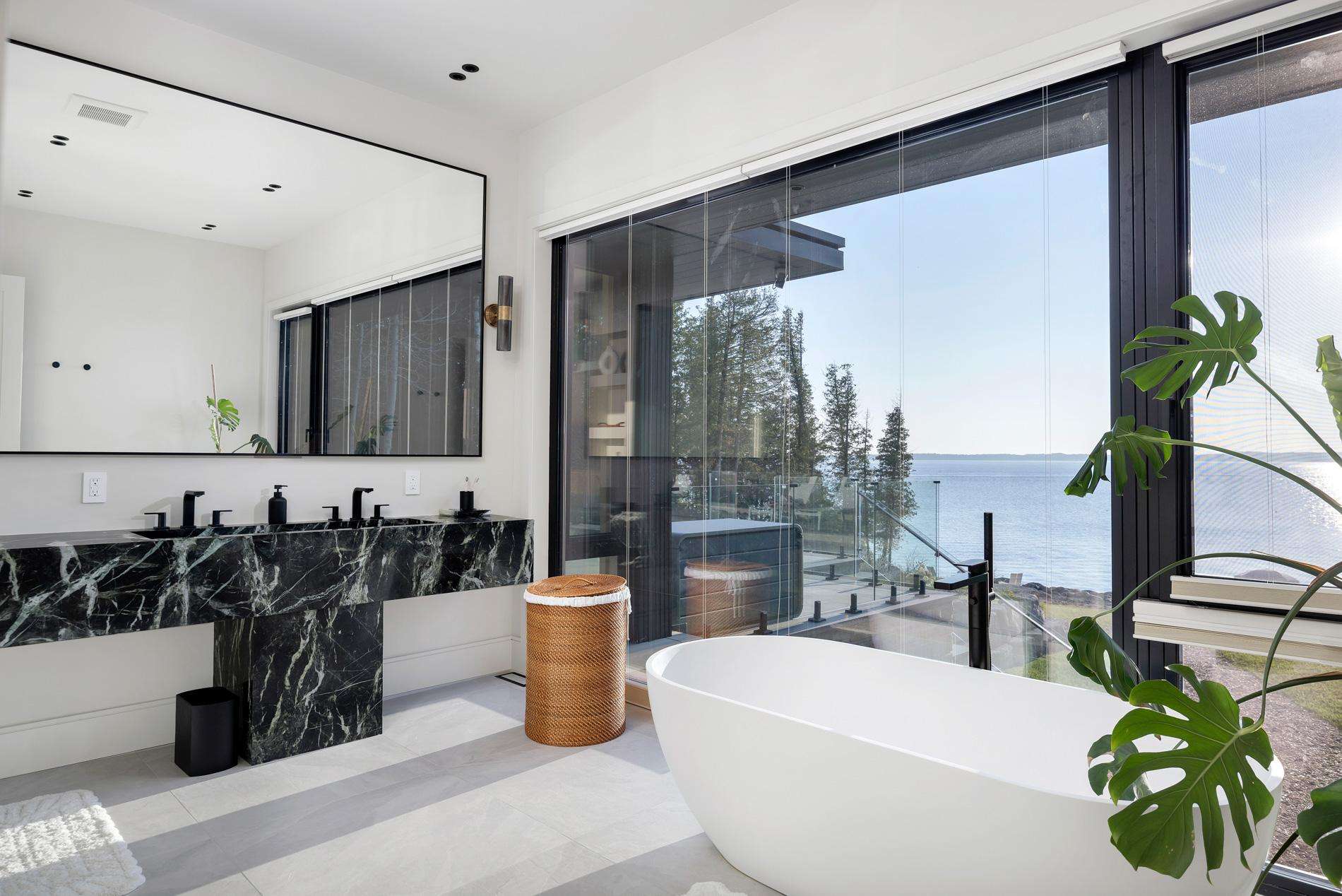 Experience refined lakeside living at this stunning 5-bedroom, 5-bathroom luxury cottage on the crystal shores of Georgian Bay. Thoughtfully designed for comfort and style, this modern retreat blends natural beauty with elegant sophistication.