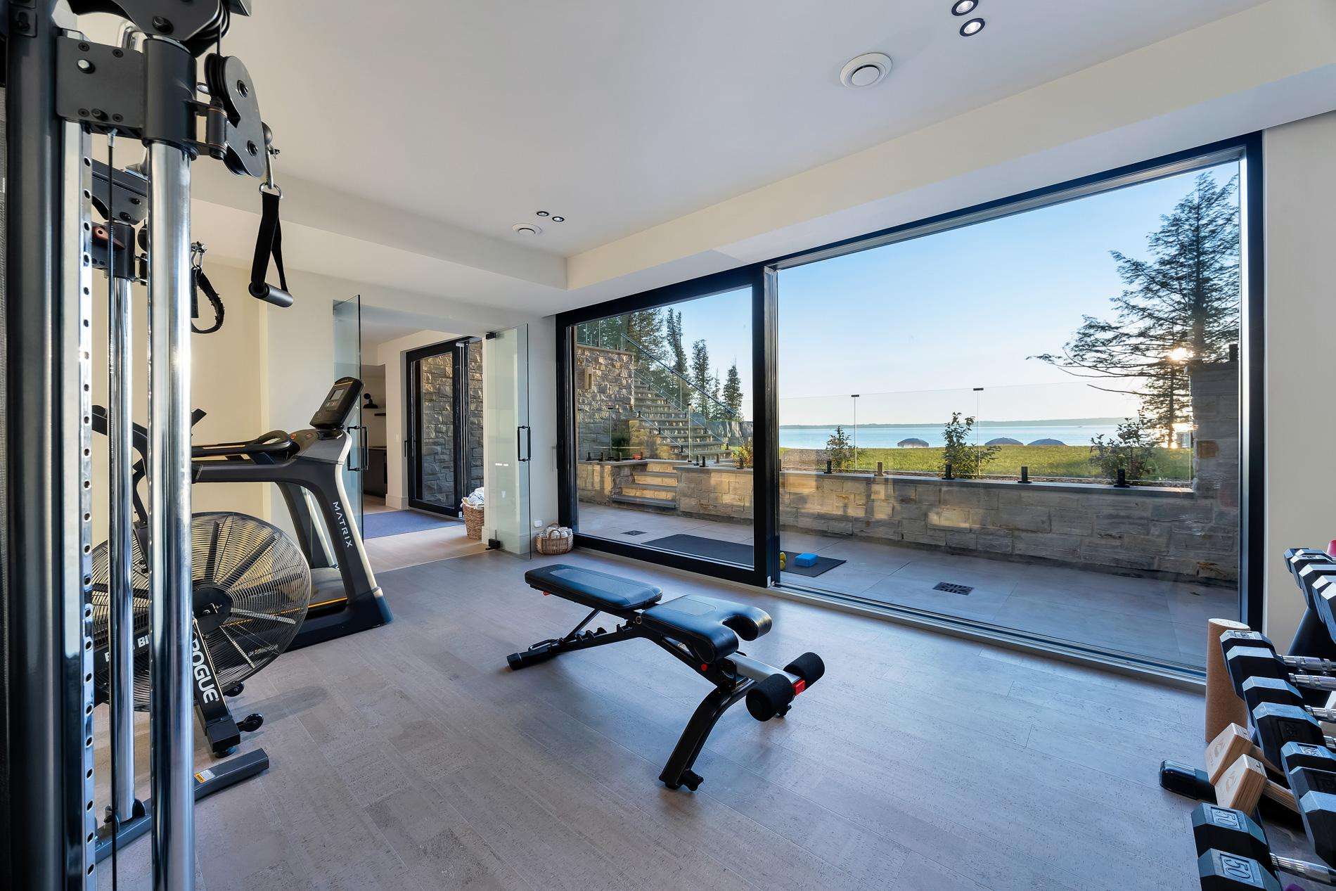 - 3 machines, free weights, bench, walkout to front lawn and beach.