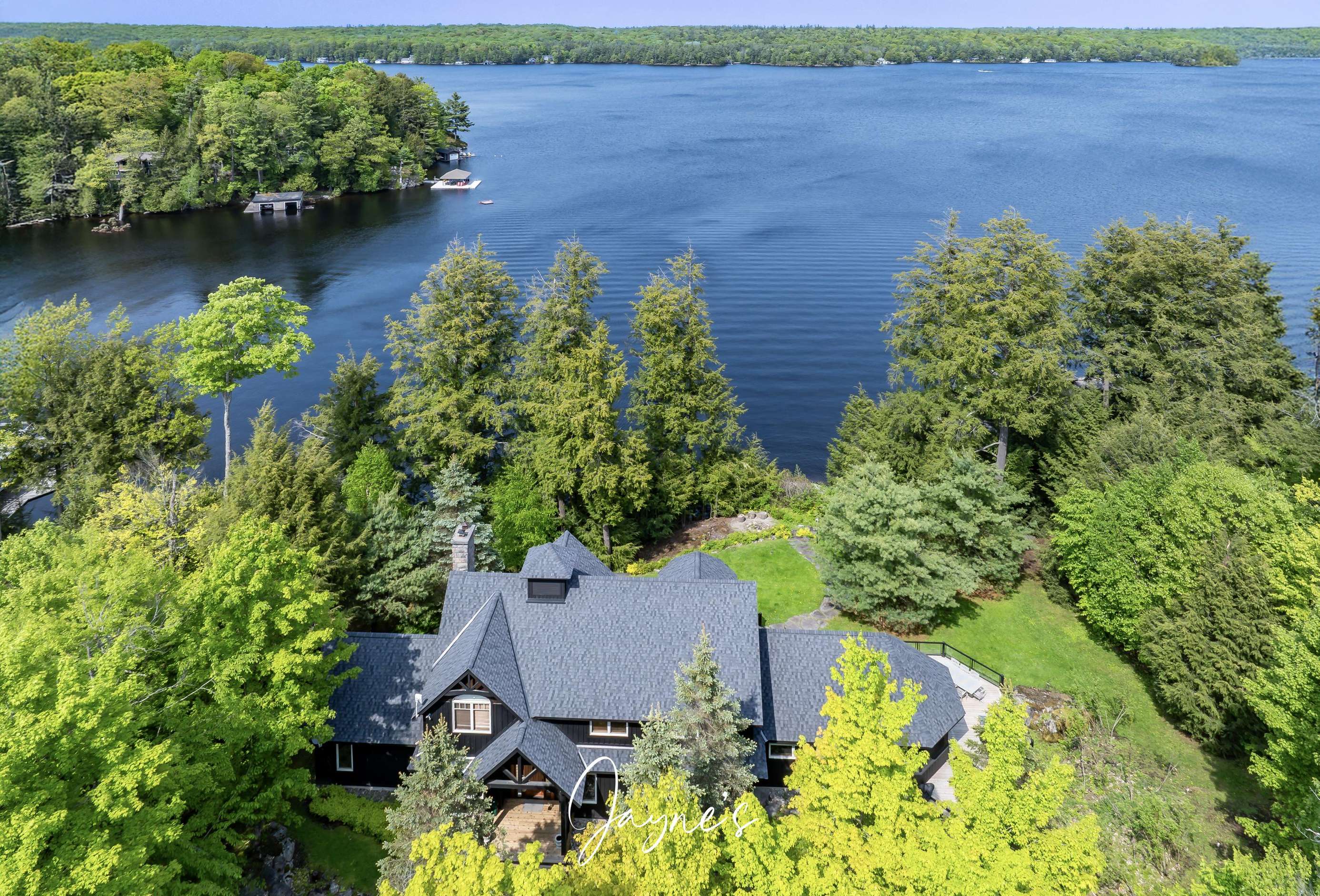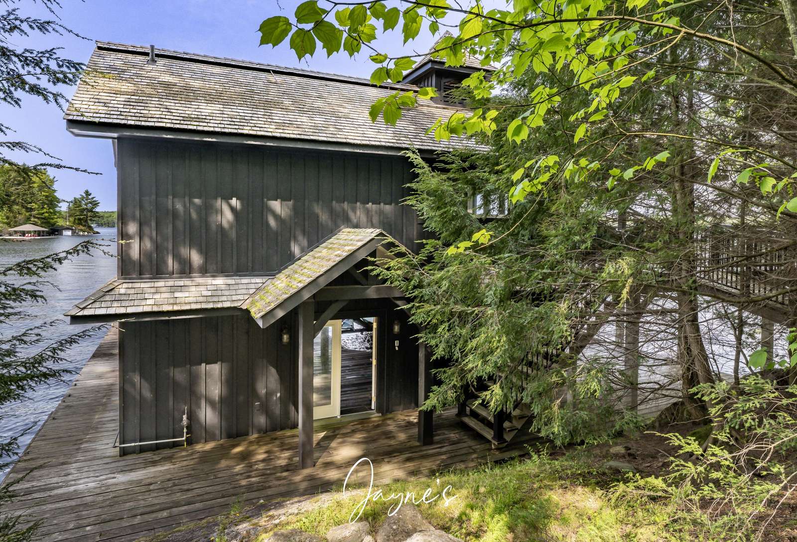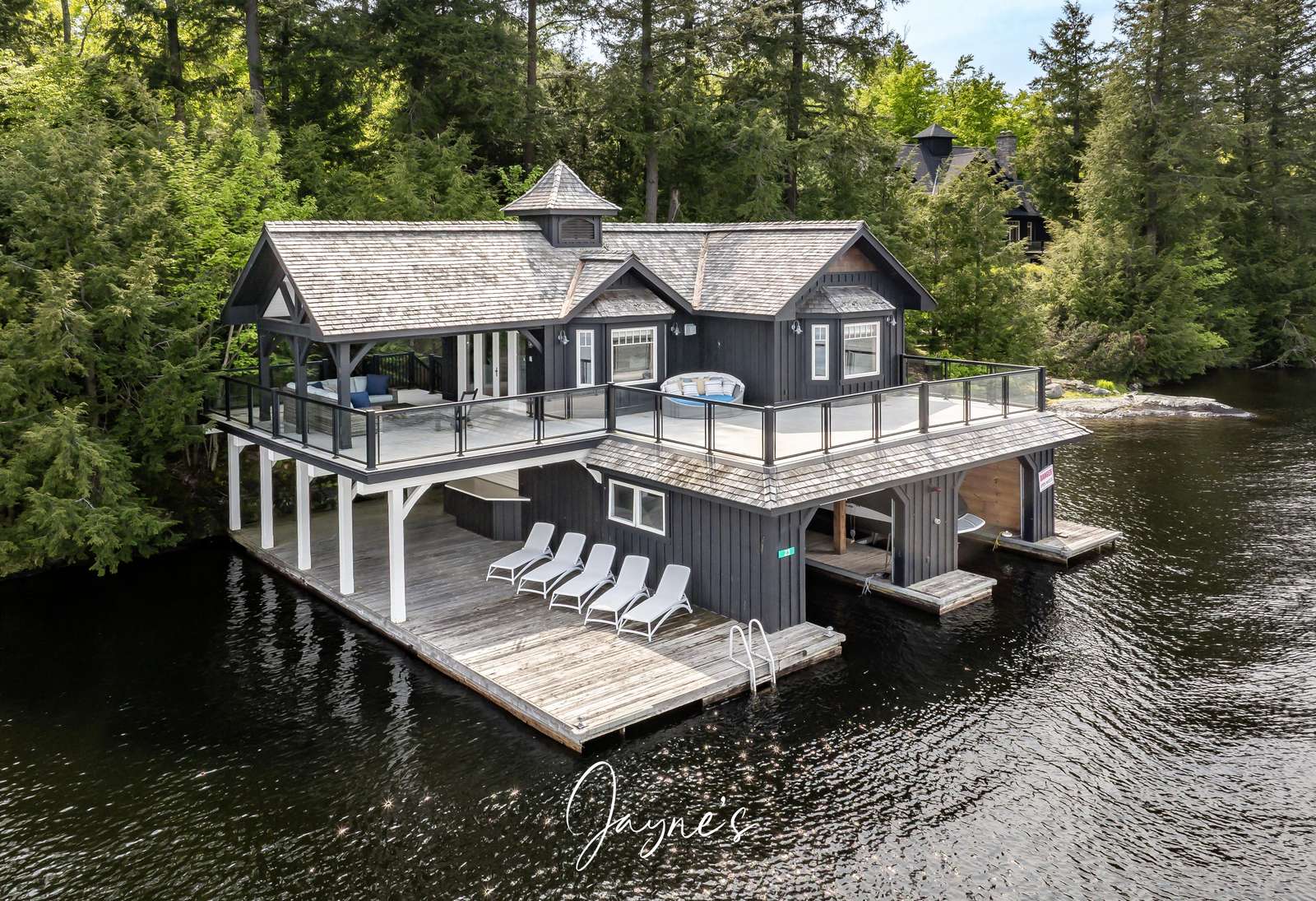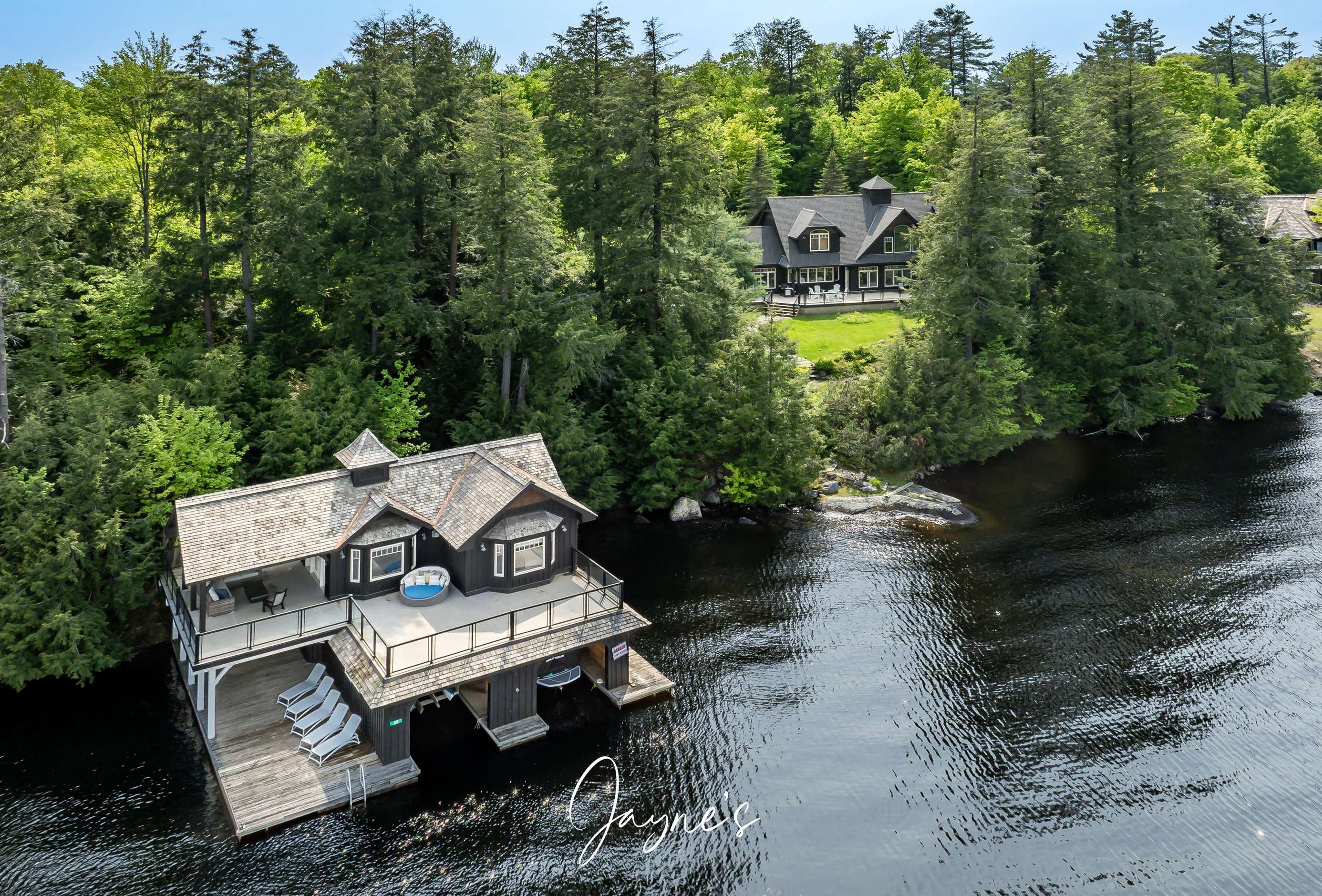 Elegant Cottage + Boathouse combo on Lake Muskoka! Adorned with Towering Hemlocks and easily traversable grounds for lazy summer days by the shore.