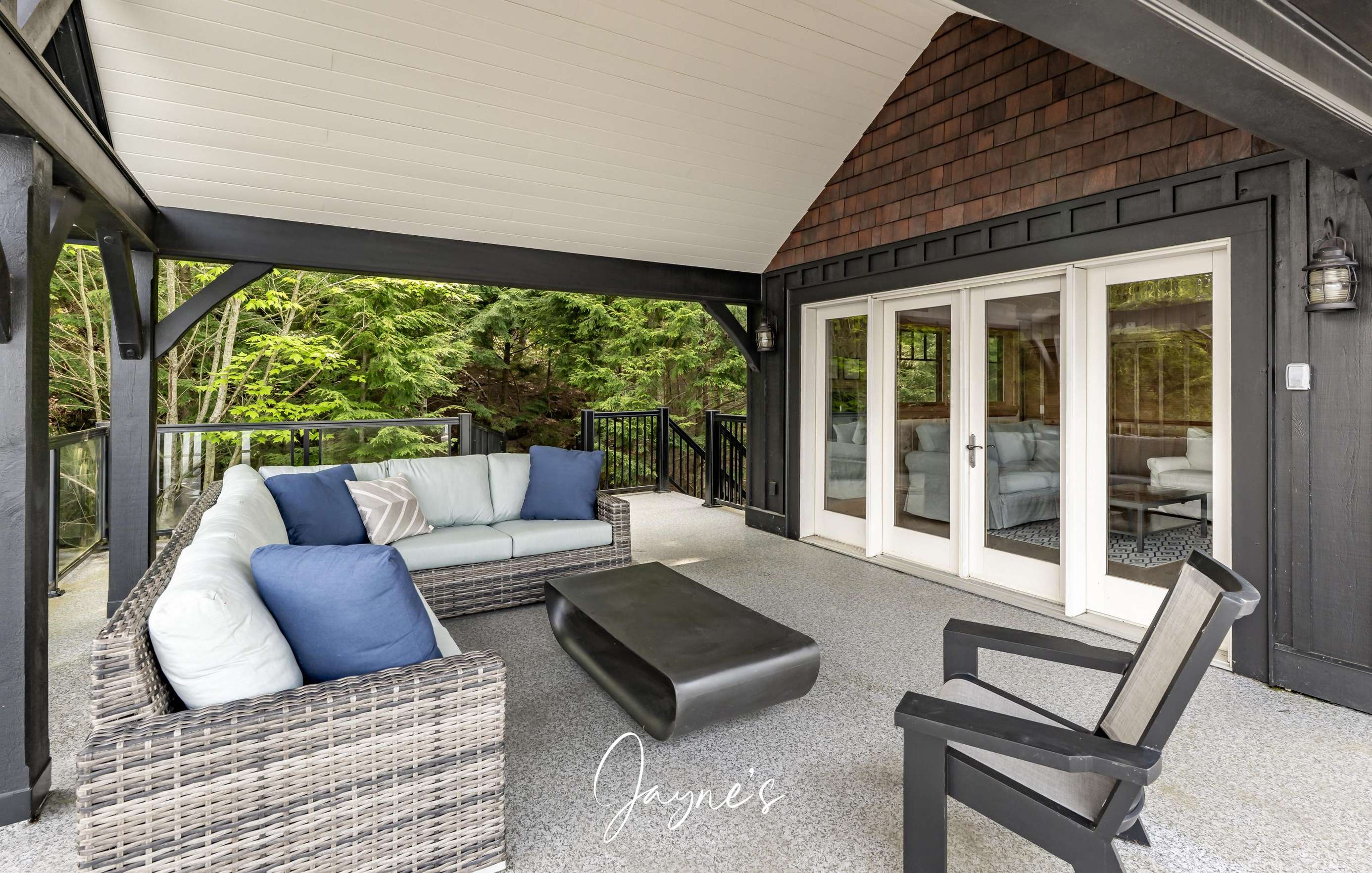 Beautiful covered area with sofa and 2 chairs
