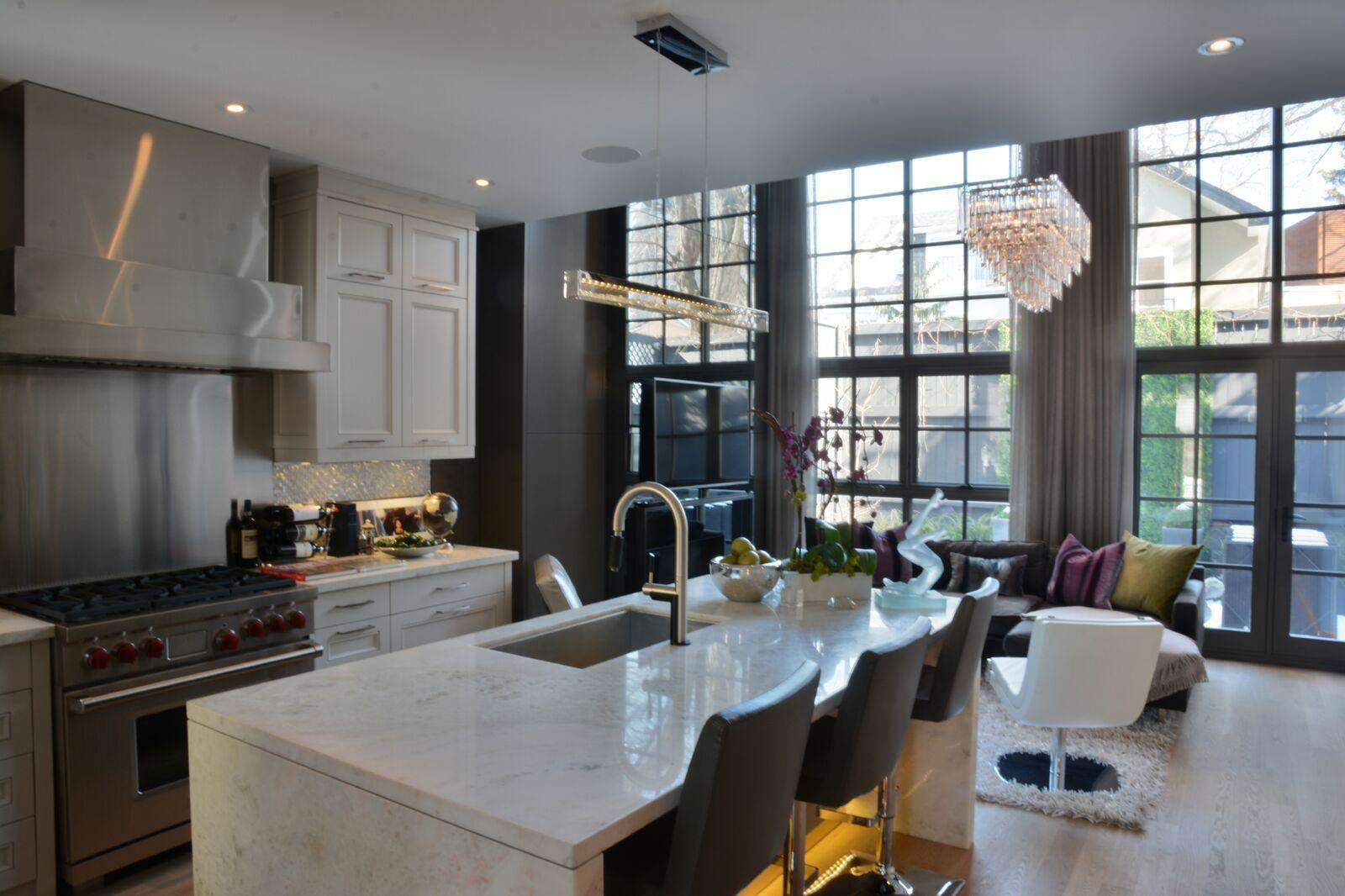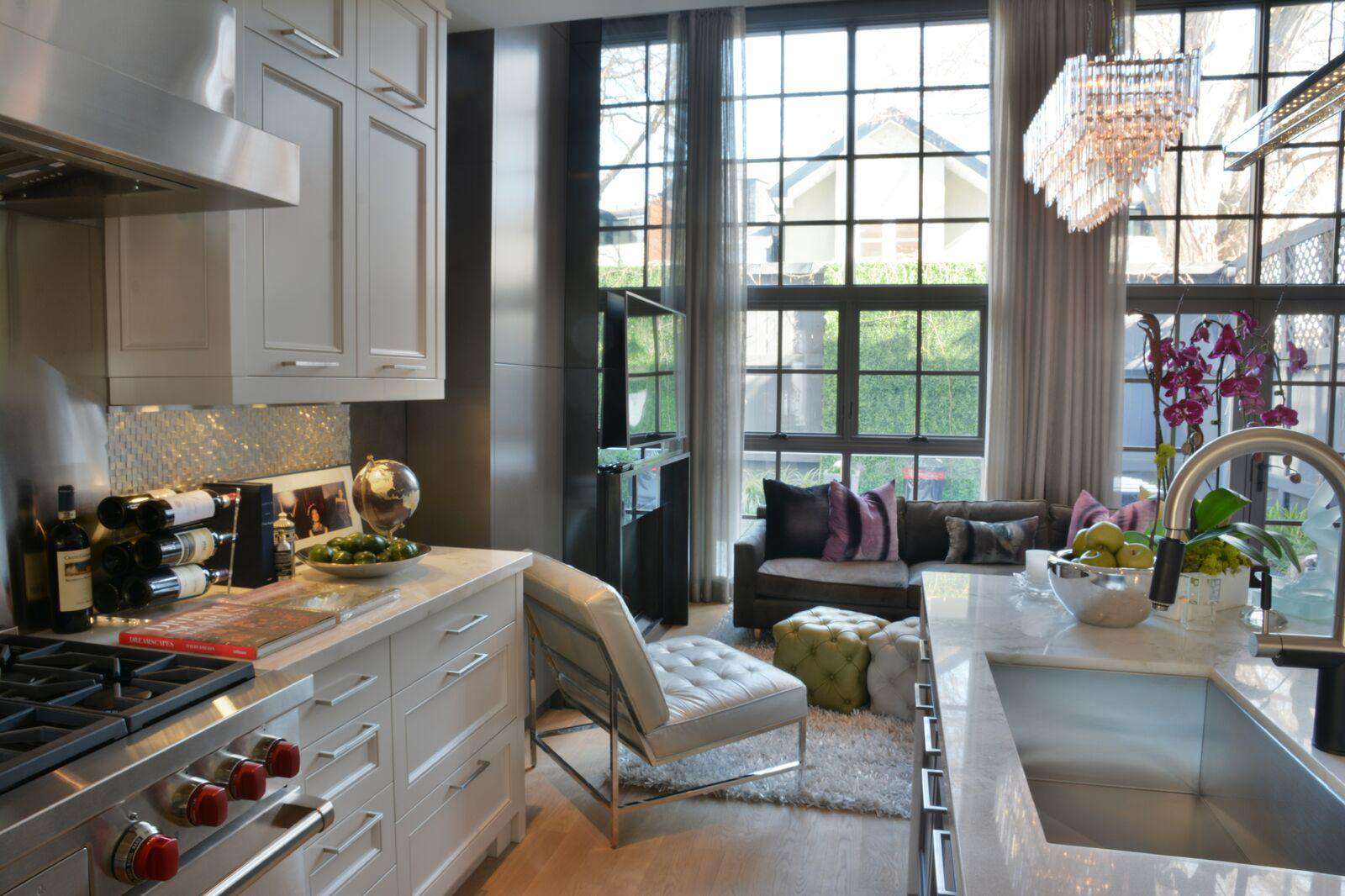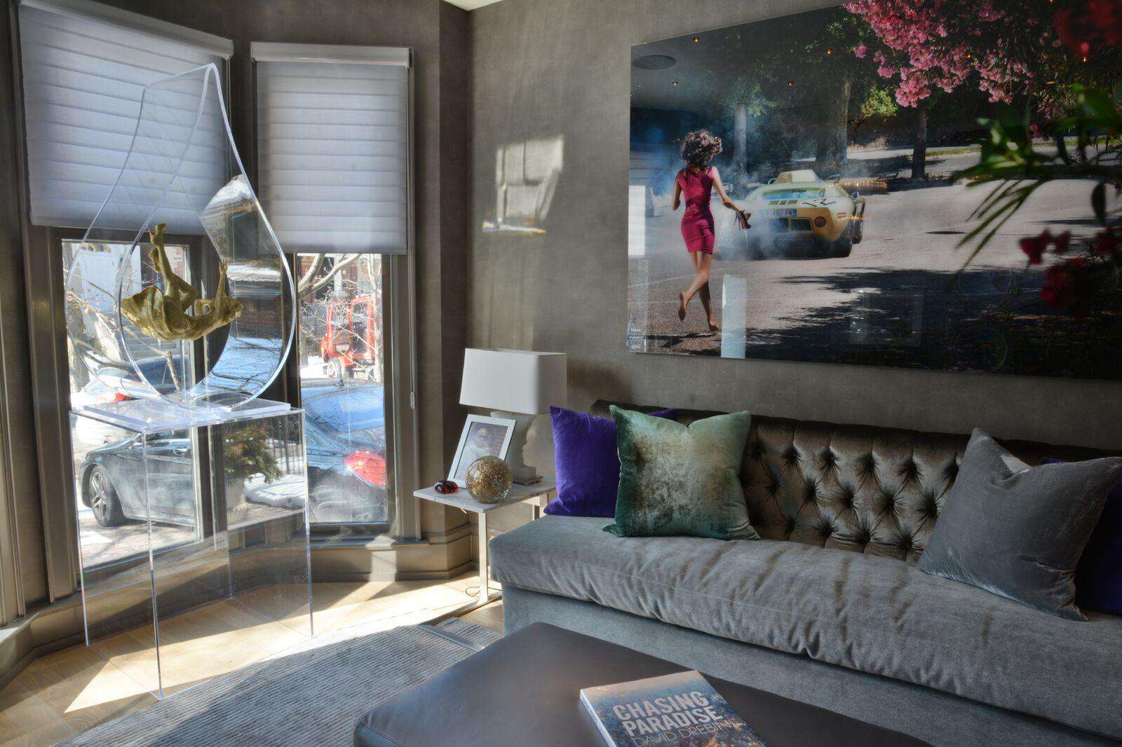 A separate living space immediately to the left of the entrance serves as one of the many lounge areas in the home as this one looks out to Yorkville's pricey Hazelton Avenue townhomes. It features comfortable seating, a coffee table, and walls lined with some of his own breathtaking artwork.