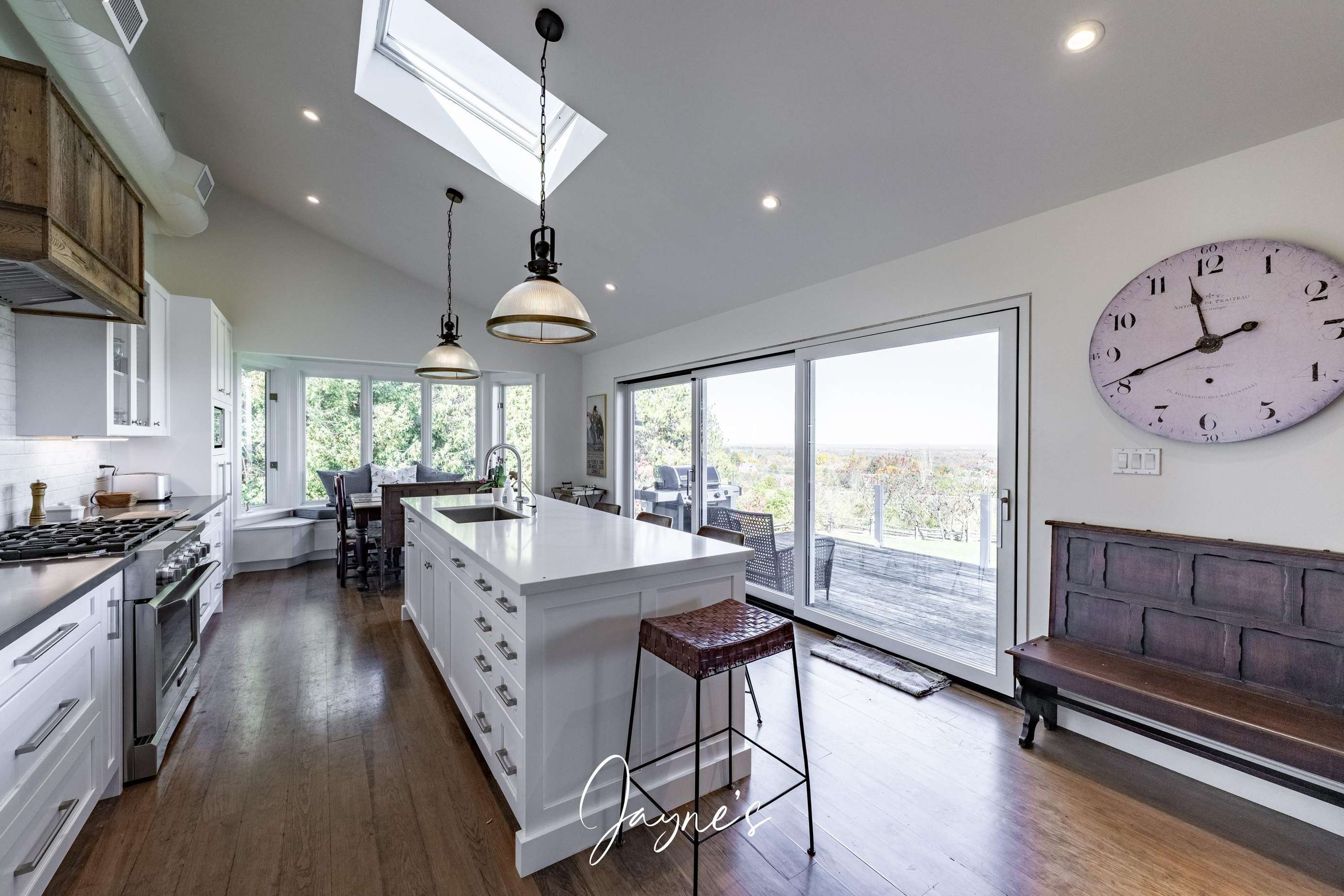 Minutes from Osler Bluff and Devil's Glen, this 4 bedroom, 3 bathroom home sits atop 5 acres of rolling countryside. Spectacular views of sprawling fields, forests and southern Georgian Bay.