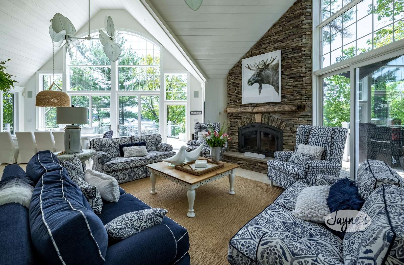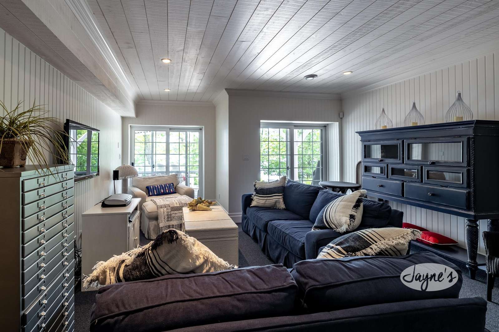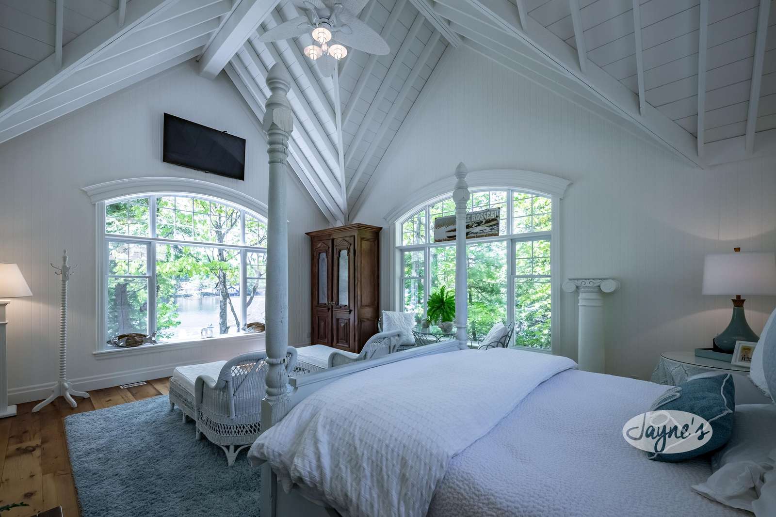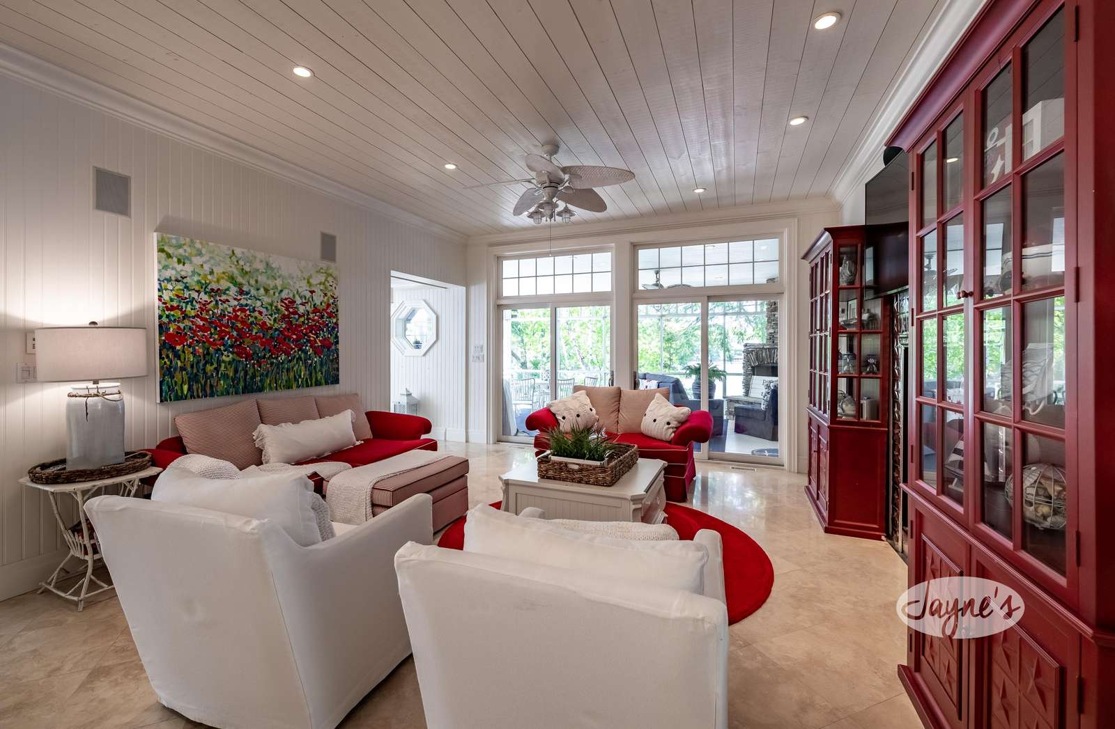 Stunning 6 bedroom 8 bath cottage. Western exposure in the heart of Port Carling. Incredible sunrise and sunset views on the point overlooking Lake Rosseau. Walkout to the boathouse, play on the putting green or enjoy the stone firepit over the lake.
