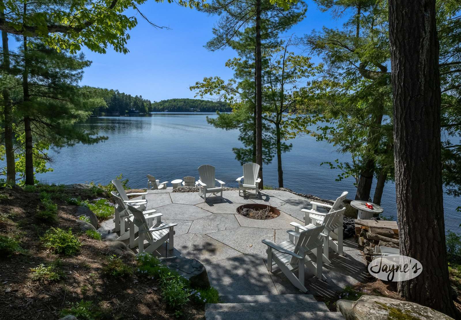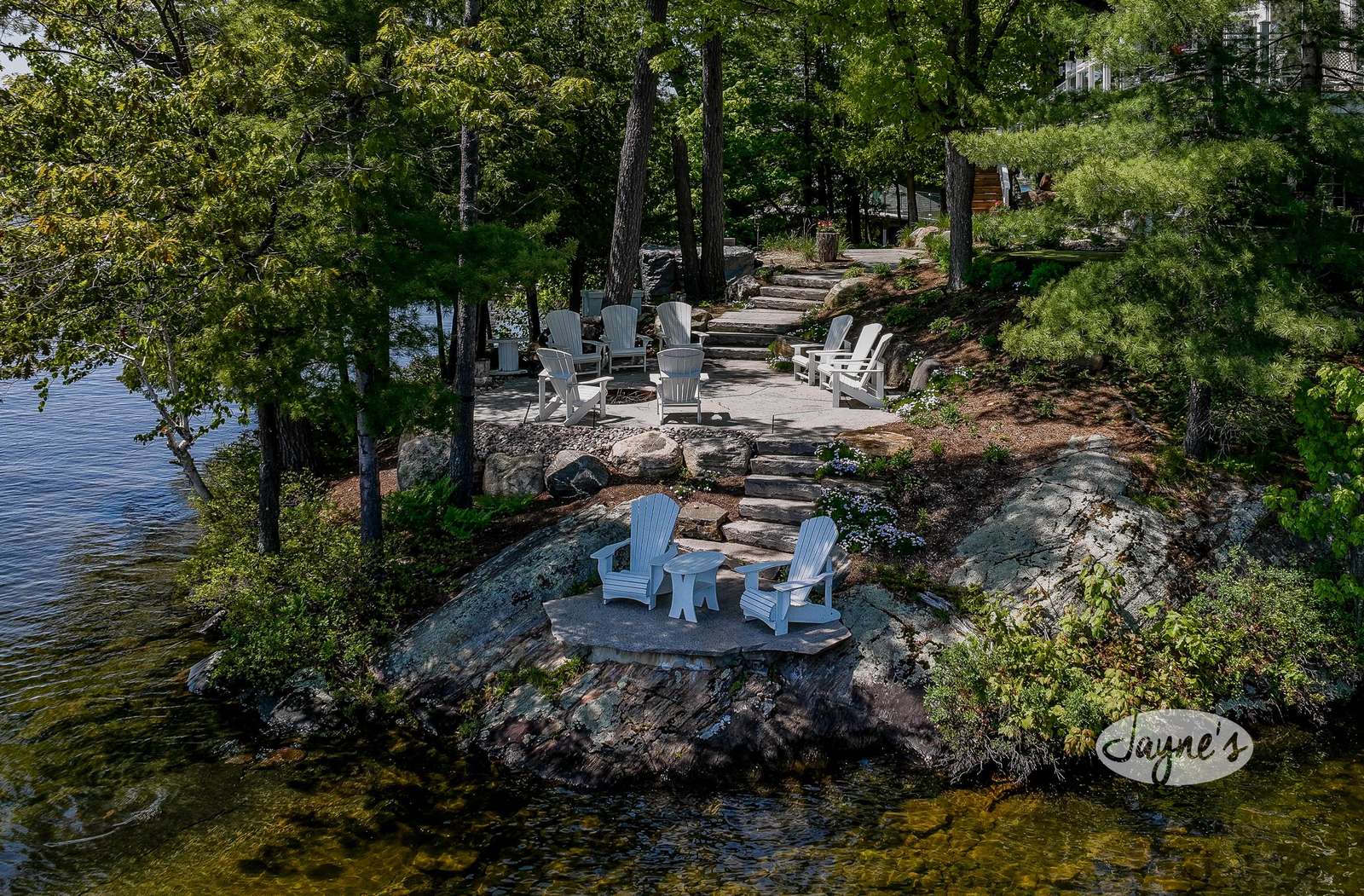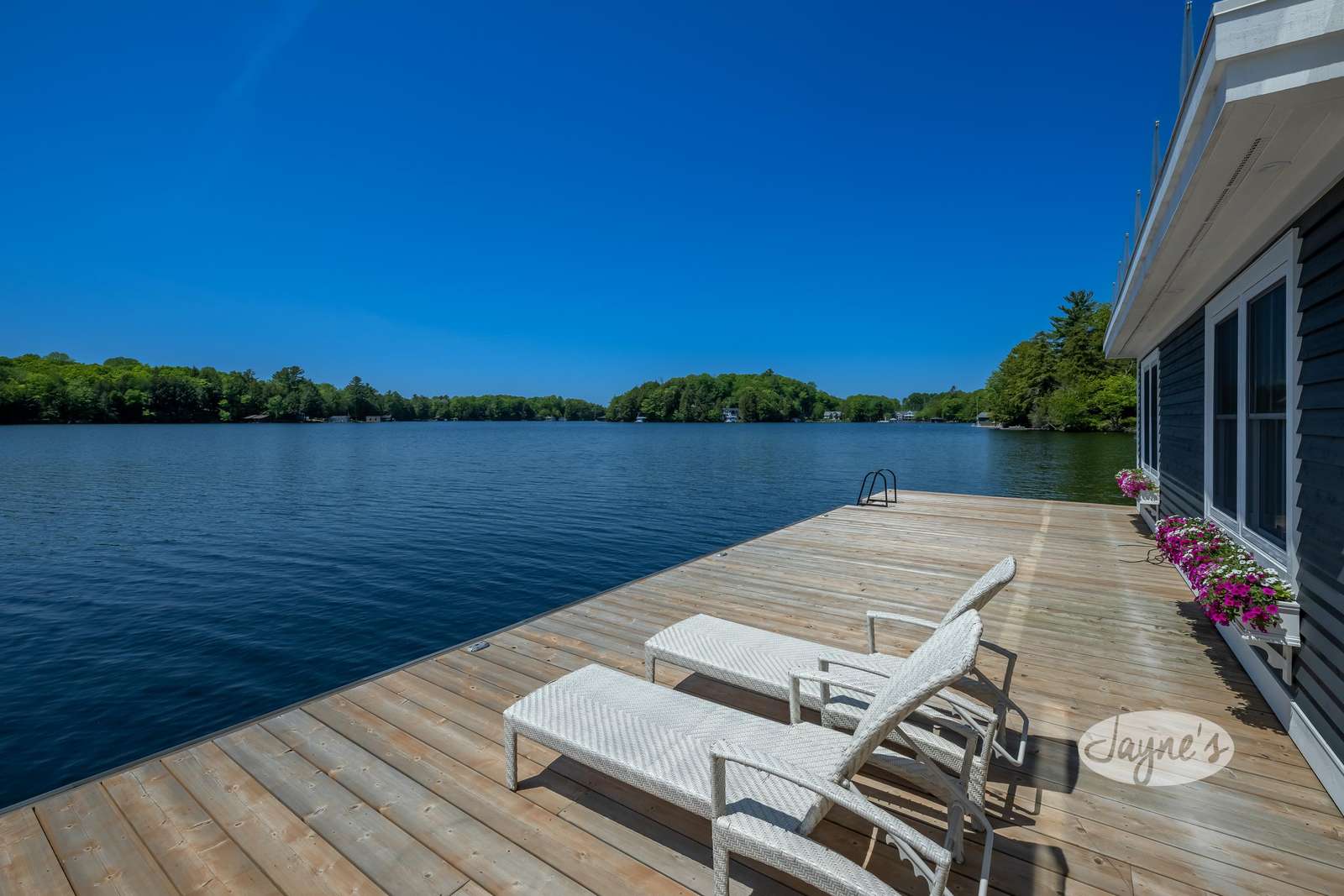 IT'S GOOD TO BE KING - Especially when the sun rises on the deck for your morning coffee, and sets over the boathouse after your evening swim. Immaculate landscaped property. Main cottage boasts a gorgeous deck with an outdoor kitchen and dining area. By the water there is a stone firepit with Muskoka chairs. Stairs or a walkout to the beautiful boathouse built in 2022. Boathouse has a large upper deck with an unobstructed view of the lake, outdoor heating, plenty of seating and bar table. Gated property with an asphalt driveway and parking for 6.
