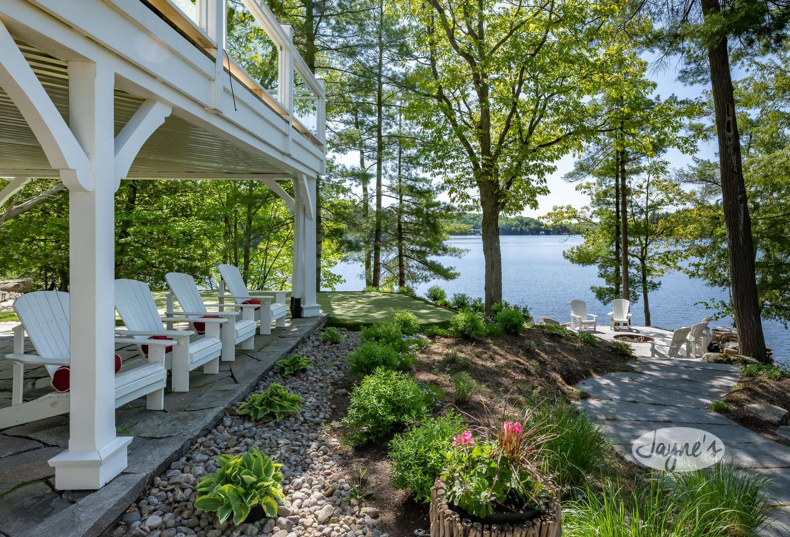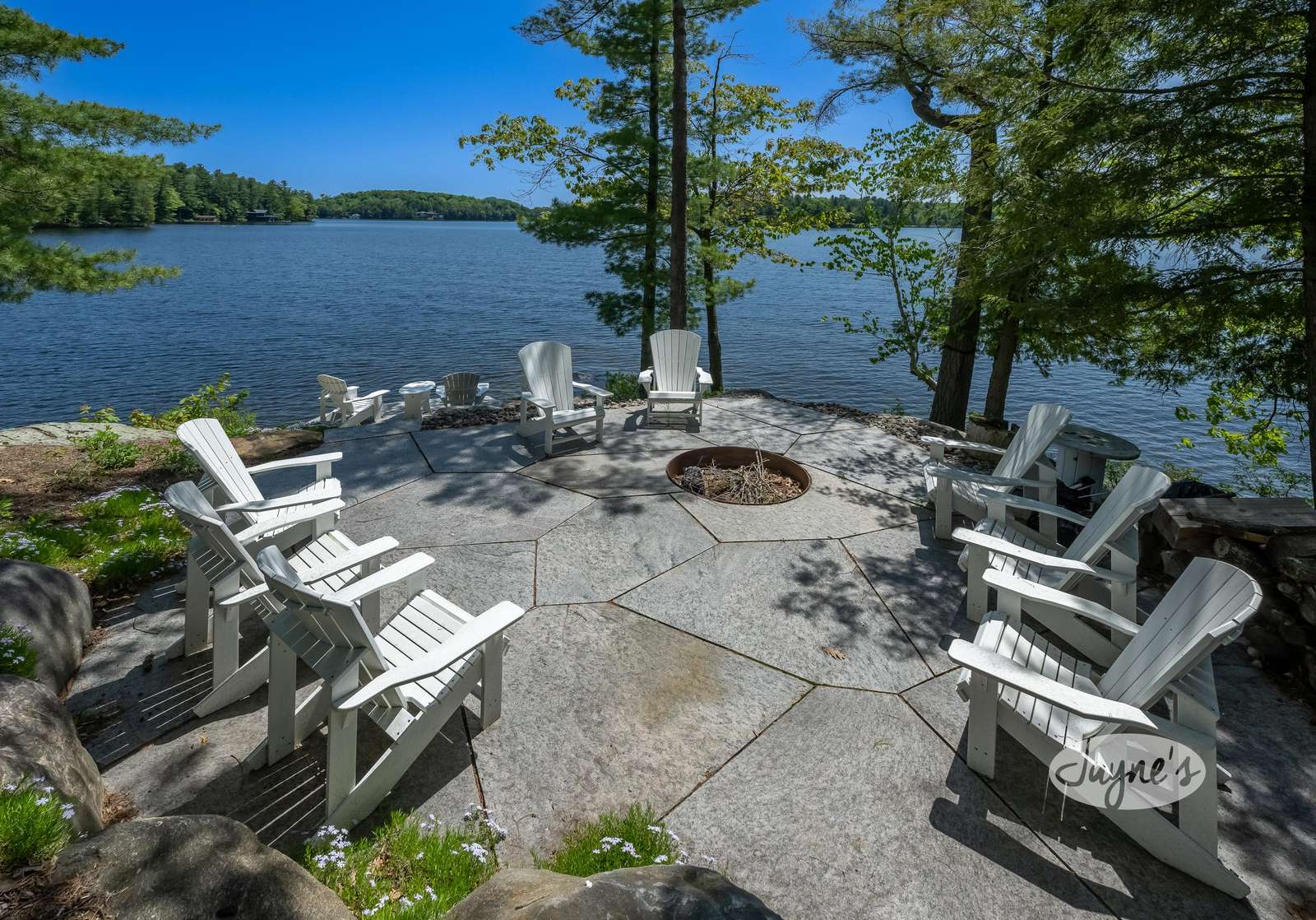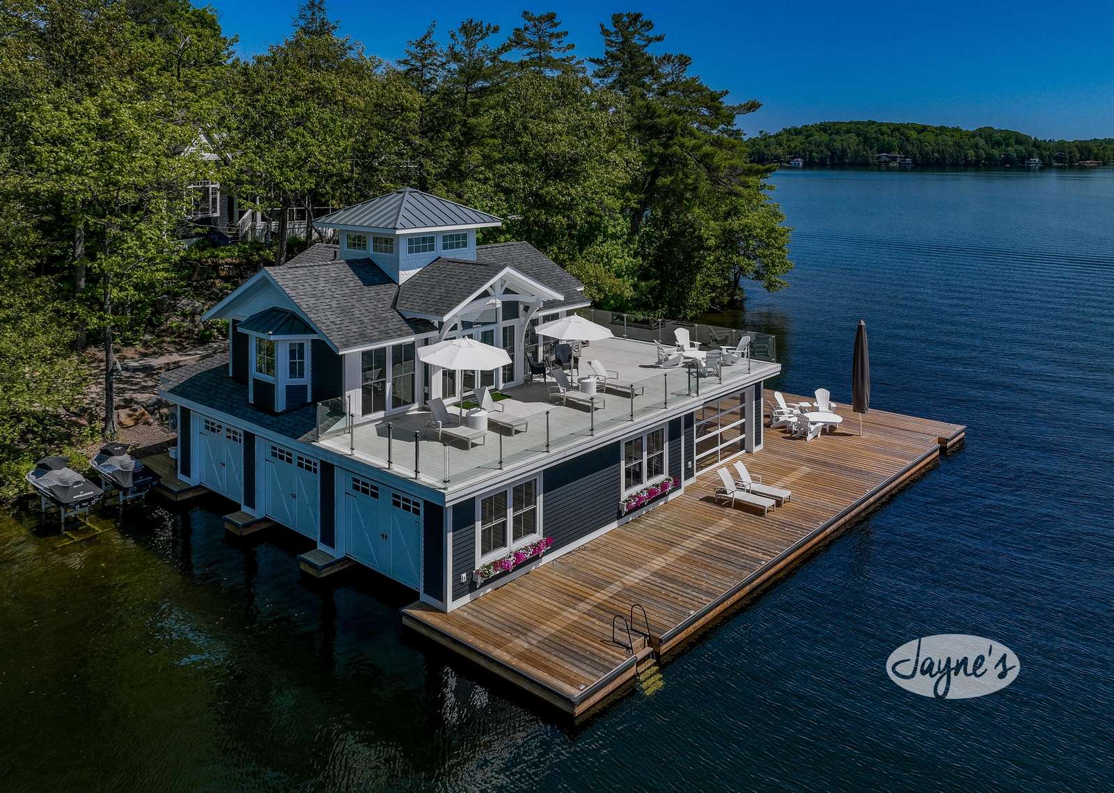 IT'S GOOD TO BE KING - Especially when the sun rises on the deck for your morning coffee, and sets over the boathouse after your evening swim. Immaculate landscaped property. Main cottage boasts a gorgeous deck with an outdoor kitchen and dining area. By the water there is a stone firepit with Muskoka chairs. Stairs or a walkout to the beautiful boathouse built in 2022. Boathouse has a large upper deck with an unobstructed view of the lake, outdoor heating, plenty of seating and bar table. Gated property with an asphalt driveway and parking for 6.