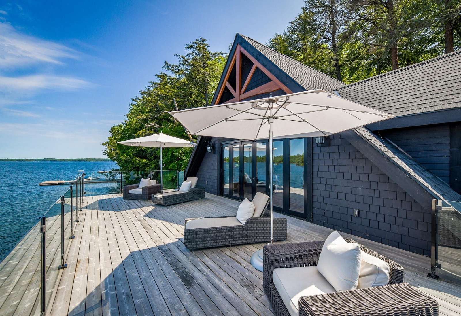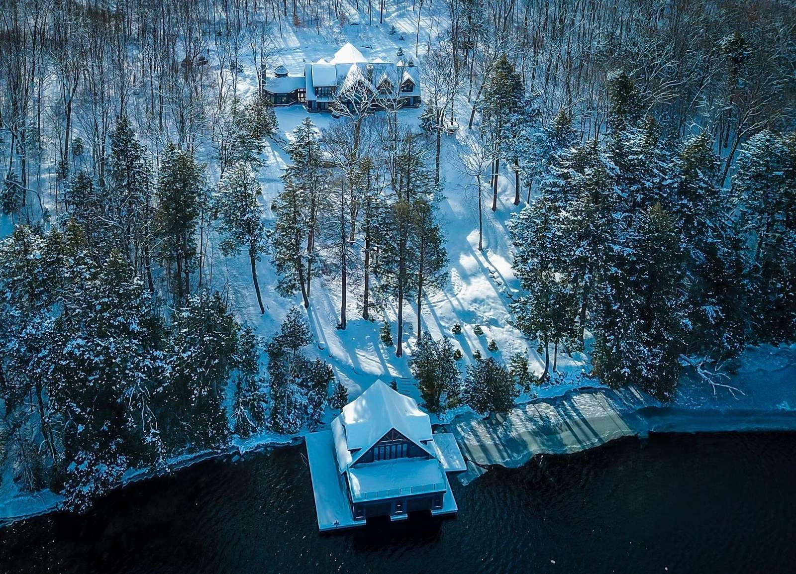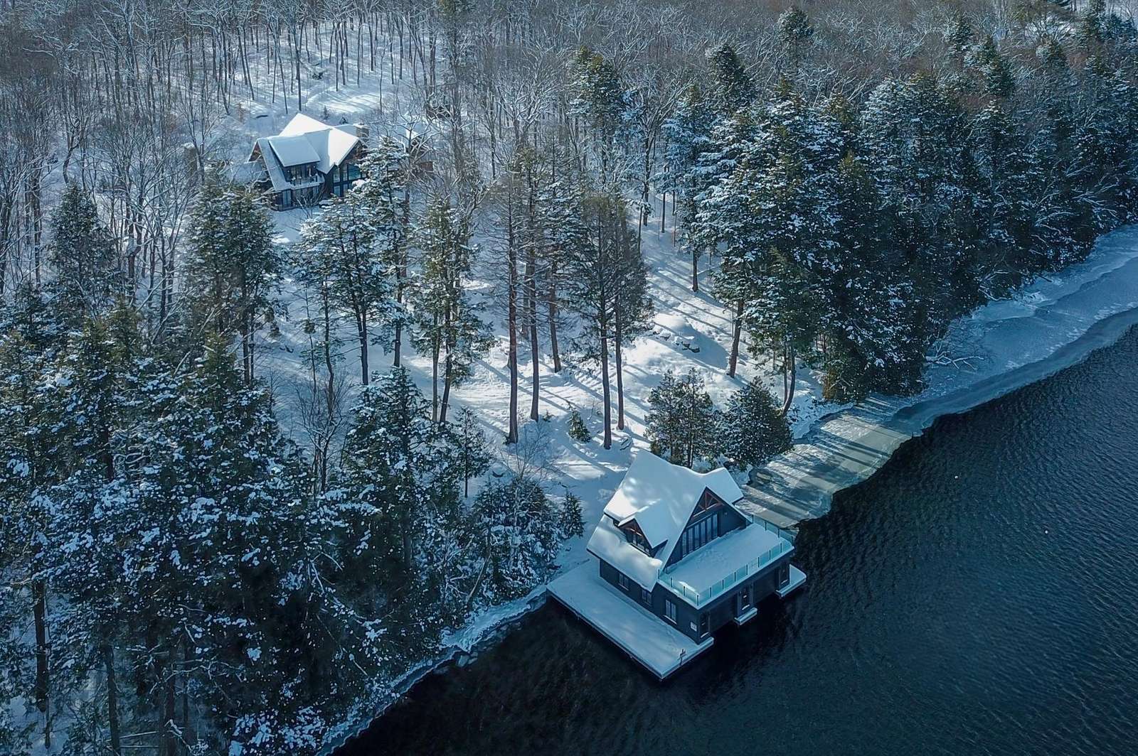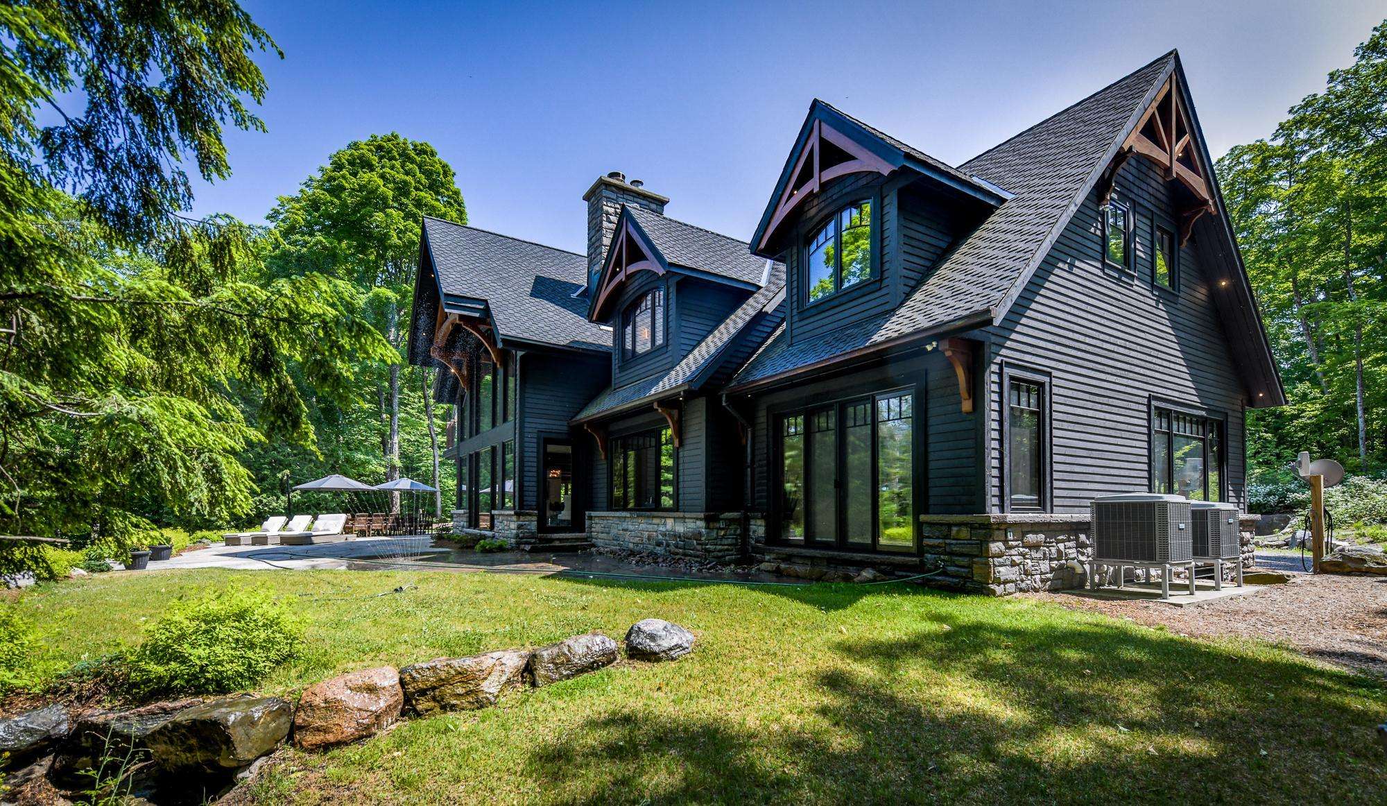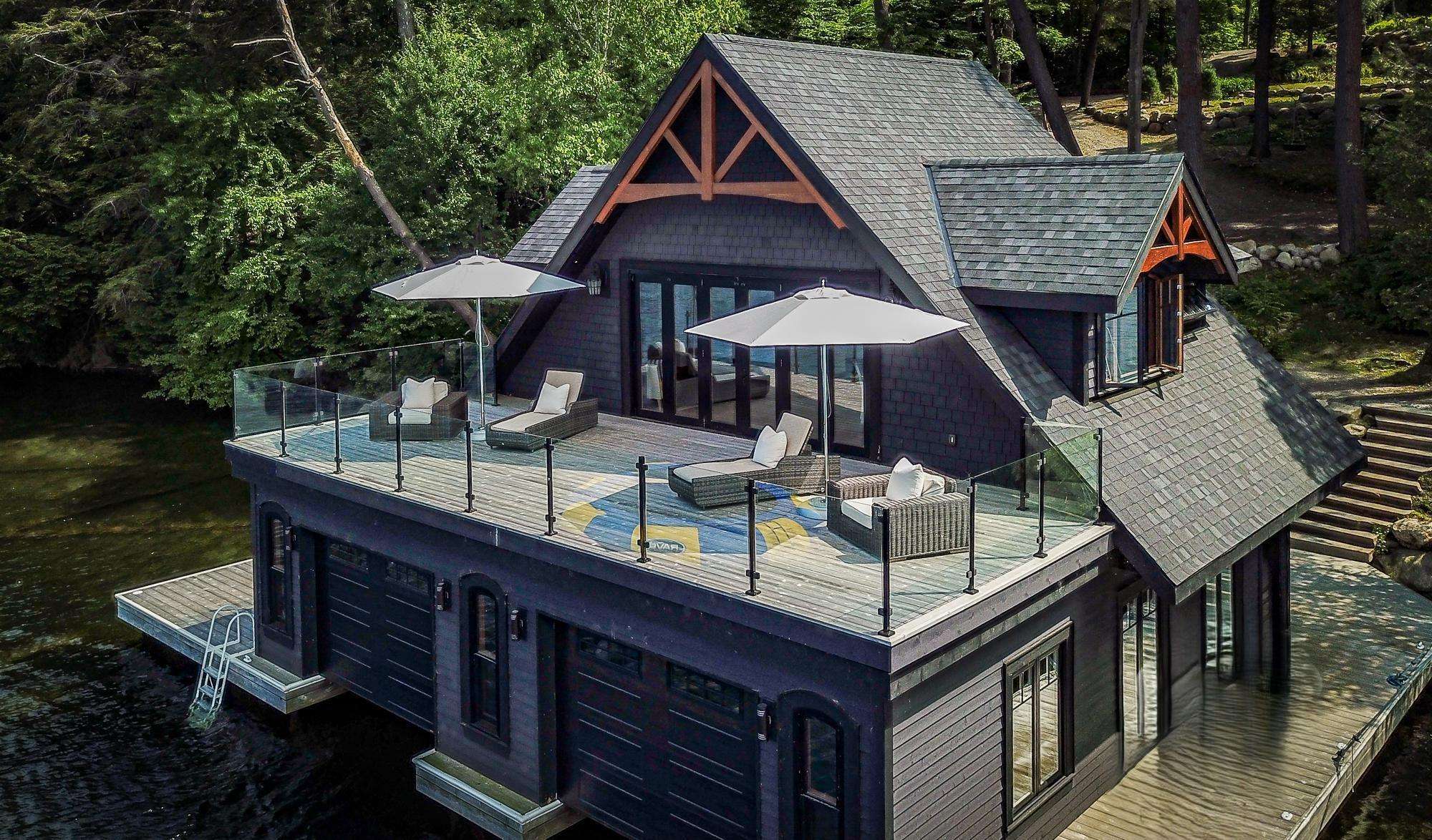 Nestled in the woods along the shores of Lake Joe, this spectacular new build has everything you could ever want in a luxury cottage getaway! It boasts 7 bedrooms, 8 bathrooms, a private office, gym, hot tub, sauna & boathouse with an interior slip!