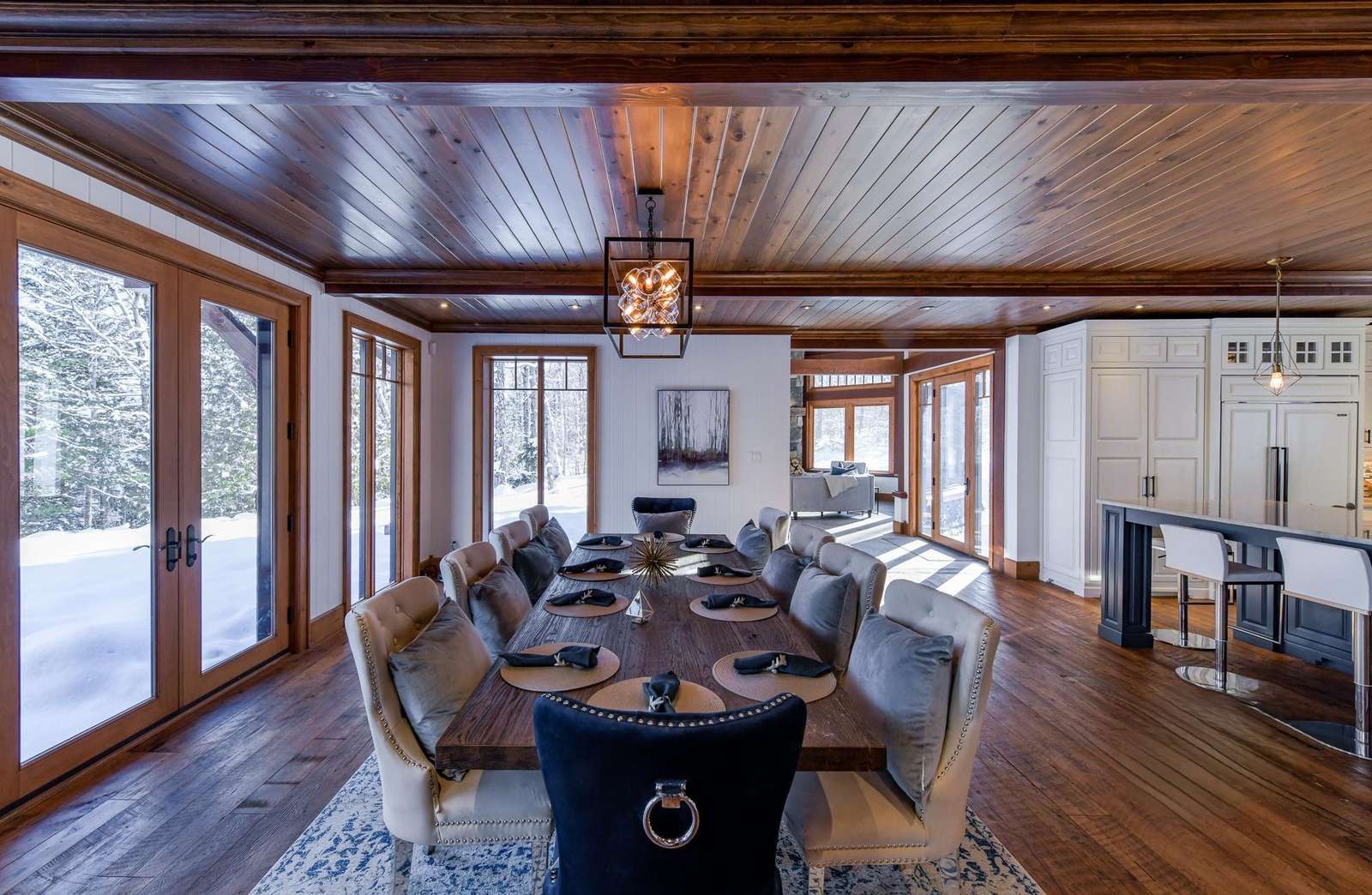 Open-concept dining room with seating for 10 and a walkout to the backyard.