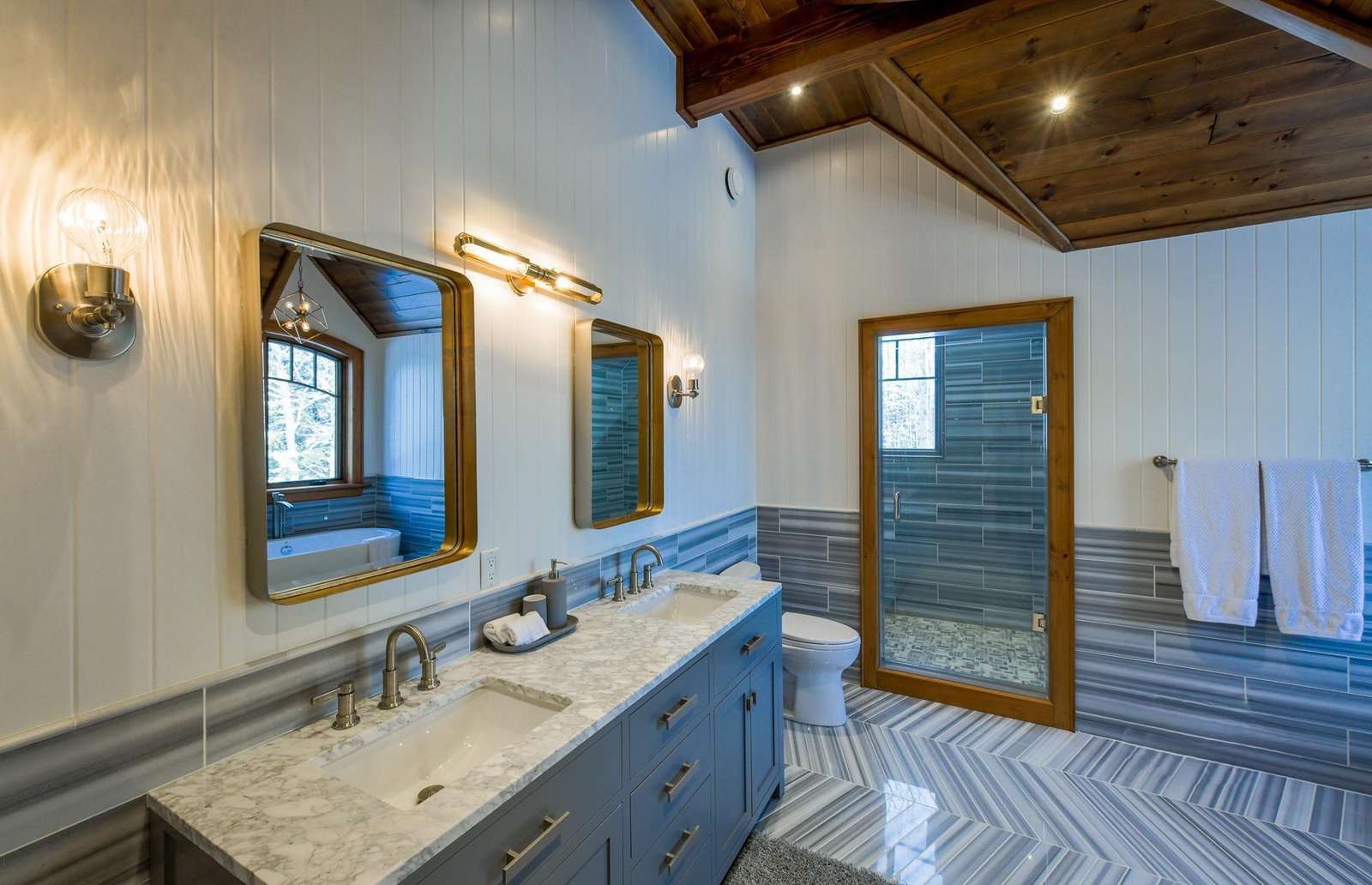 Bathroom 2 - 5-piece ensuite with double vanity, stand-alone steam shower, tub and water closet